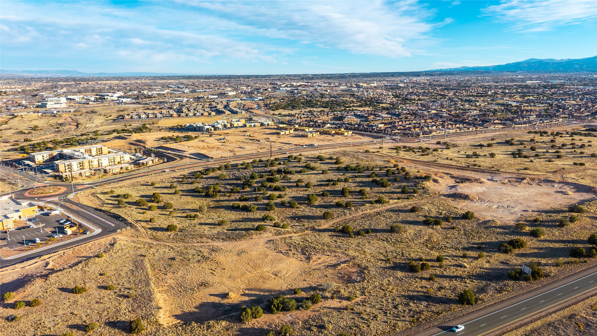 Commercial development parcel available for sale in Las Soleras, a master-planned mixed-use community located in one of Santa Fe's fastest growing commercial corridors. The sites are positioned near Beckner Road, Cerrillos Road, and State Road 599, with convenient access to Interstate 25, providing excellent connectivity throughout Santa Fe and northern New Mexico. The properties are located near major regional anchors including Christus St. Vincent Regional Medical Center, the VA Medical Center, Super Walmart, and Santa Fe Place Mall, placing them within Santa Fe's primary retail, healthcare, and service district. Parcel is zoned C-2 Commercial, allowing a wide range of uses including retail, office, medical, financial, multifamily residential, educational, recreational, and religious facilities, among others. The sites feature gently rolling terrain suitable for a variety of development concepts. City water, sewer, and electricity are available along Beckner Road, making these parcels ready for near-term development. Parcels 20, 21, 25, and 26 are offered together in bulk price, and each parcel is also available for purchase individually. Las Soleras offers developers the opportunity to build in a growing area of Santa Fe supported by strong healthcare, retail, and residential demand with excellent regional access.