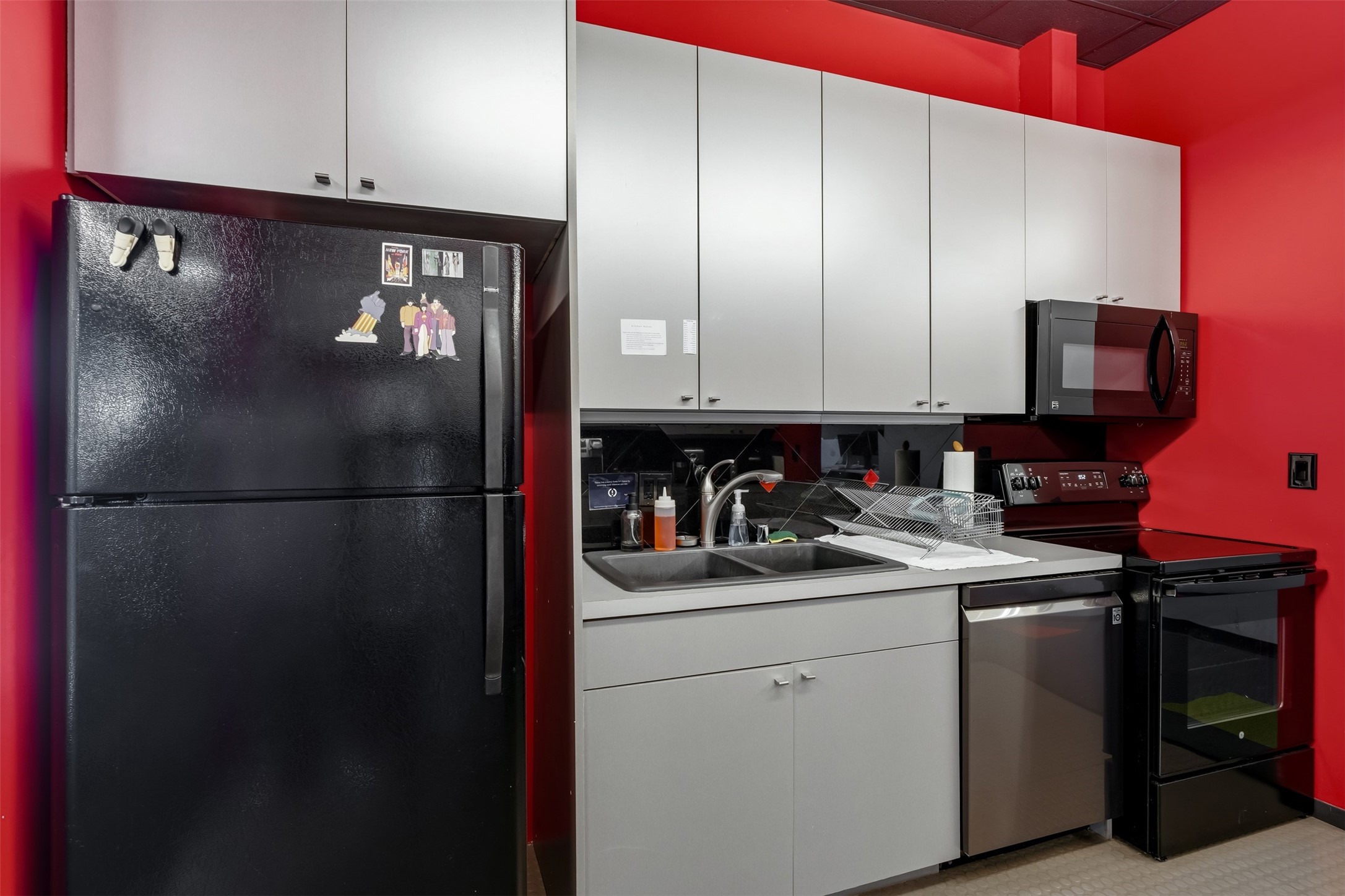 Standalone office building for sale for the first time! This single level office suite features a striking and modern interior designed to make a strong first impression. The space opens into a stylish reception area with polished concrete floors, exposed structural ceilings, and contemporary lighting that creates a bright and creative atmosphere. A curved reception desk anchors the entry, while large openings lead to collaborative meeting spaces, kitchen, conference room and private offices. The layout offers a functional blend of reception, private offices, and open workspace areas, complemented by vibrant design accents and ample natural light. With ADA-accessible entry and convenient ground-floor access, the suite provides excellent usability for clients and staff alike. Ideal for creative, tech, marketing, or professional office users seeking a distinctive and highly accessible workplace. Plenty of parking and an easily accessible in the Rodeo Park Commercial Condominium Business Park! Currently Owner Occupied. Condo dues are $2,048.18/ Quarter and cover exterior maint., master insurance, refuse, parking lot. Owner responsible for their own roof, stucco and HVAC maint. Parking lot was resurfaced in 2025.