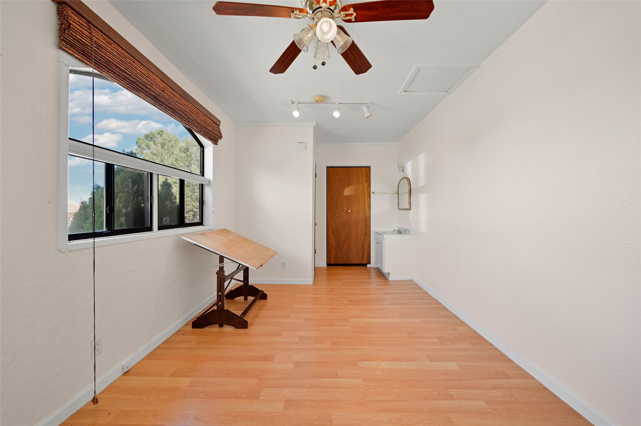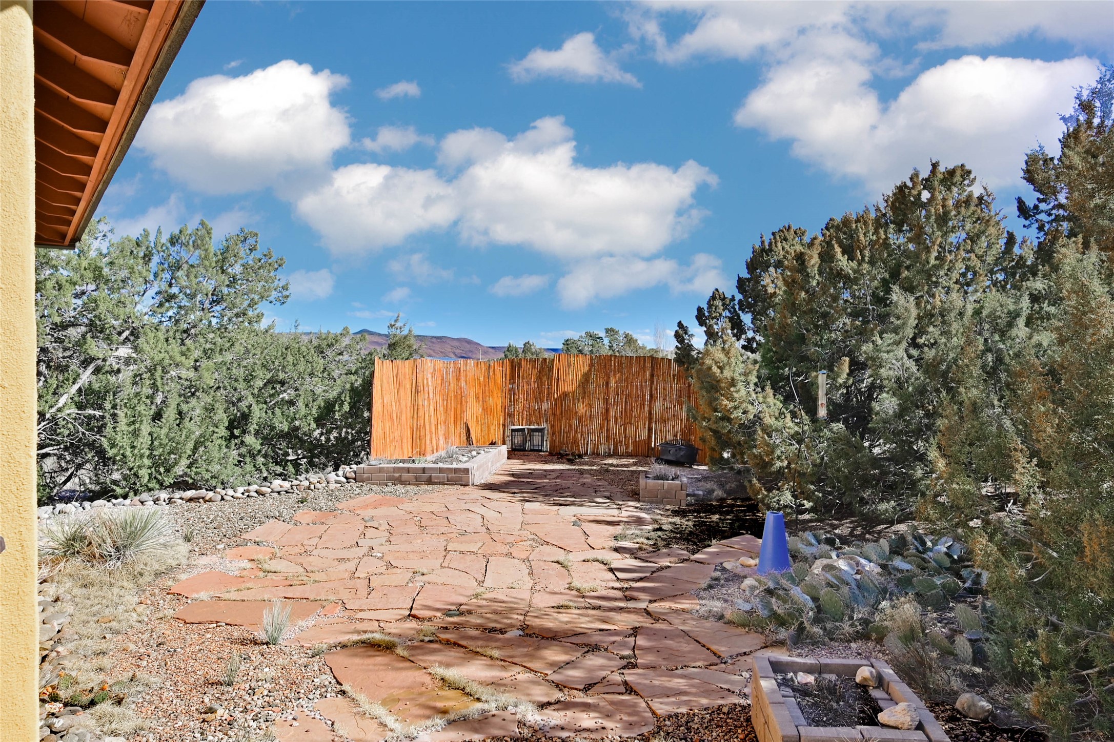 Discover a private sanctuary tucked away in a lush grove of Pinon and Juniper. This Cochiti Lake retreat features a seamless open floor plan highlighted by solid oak flooring and an abundance of natural light.Interior Highlights: A solid hardwood entry opens to a well-maintained interior with ceiling fans in every room for ultimate comfort.Flexible Space: The third bedroom currently serves as a vibrant studio with its own bathroom--perfect for your home office or creative pursuits.Outdoor Living: Relax on the landscaped back patio set amont Pinon trees, offering quiet moments and glimpses of Tetilla Peak.The Lifestyle: Includes a carport, storage shed, and easy access to both the golf course and the lake. Call for your showing today!