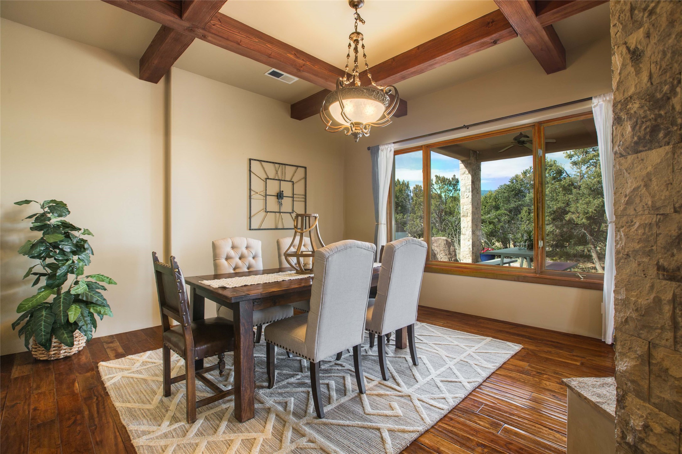 OPEN HOUSE 3-15 from 2-4pm. The outside and the inside meet in this superb warm Contemporary design. Wood, stone and glass elements and views from every room. Custom Harwell home; nestled in Paa-Ko with breathtaking Sandia and Placer Mountain views. Soaring ceilings with elegant wood beams, striking travertine accent walls, a multi-sided gas fireplace, and hand-scraped cherry hardwood floors. The gourmet kitchen boasts custom knotty alder cabinetry, and Wolf & Subzero pro-style appliances. Elegant dining room flanked by a fireplace one one side and large windows on the other is an inviting space and is separated from the kitchen by a convenient wet bar. Plush primary suite, in its own wing for ultimate privacy, offers a coffee bar, gas fireplace, sitting rm,spa-like bath, and private balcony. A gorgeous library features custom wood floor-to-ceiling shelving makes an excellent office. Two additional bedrooms on the opposite side of the home with a large full bath between. Enchanting outdoor spaces include a covered patio, courtyard, nature trail, and water features. Oversized 3-car garage. Owned Solar. The Paa-Ko community features a renowned golf course and a golf club with beautifully situated restaurant overlooking the course with the pond and mountains in the background. Additionally, there is a community pool, tennis courts and clubhouse. All of these amenities are within walking distance of the home. Living in this home is truly living New Mexico.