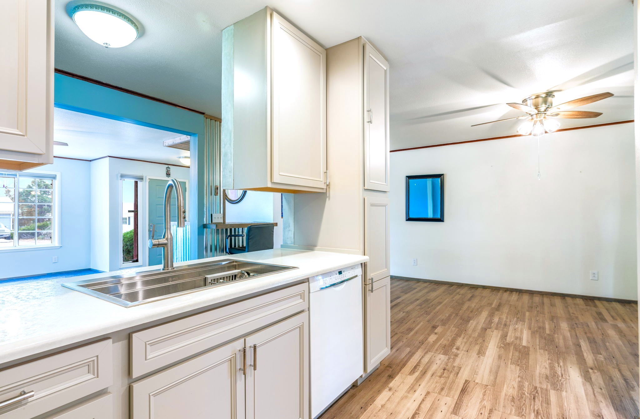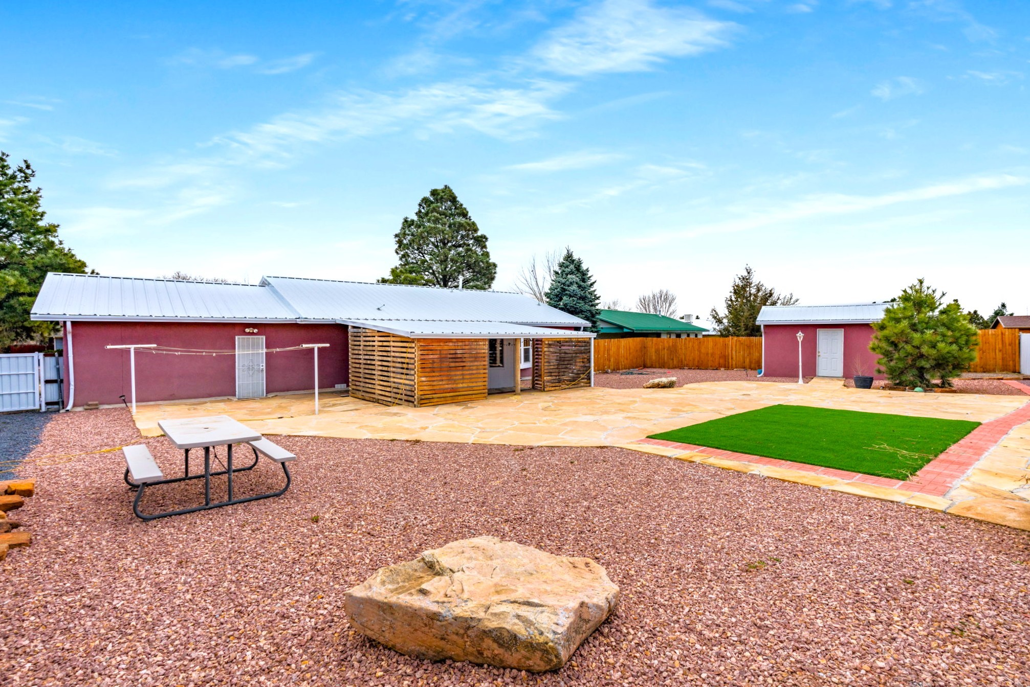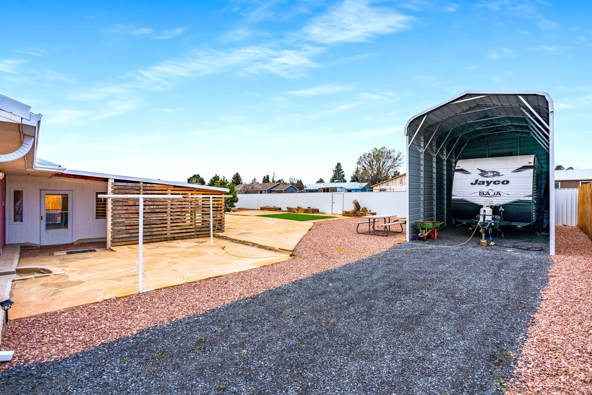 Beautifully updated 3 bed, 2 bath home with approx. 2,500 sq ft! Features include new wood flooring, new carpet, new stucco, and a new roof. Enjoy year-round comfort with a new refrigerated heating & A/C unit and new water heater.Upgraded kitchen with new cabinets, breakfast nook, and full appliance package including dishwasher, refrigerator, microwave, stove, and double oven. Bathrooms refreshed with new toilets and vanity; includes 3/4 bath.Additional highlights: washer & dryer, blackout drapes, security cameras, and ample storage. Exterior offers gravel landscaping, flagstone accents, and RV carport.Move-in ready with numerous updates throughout!
