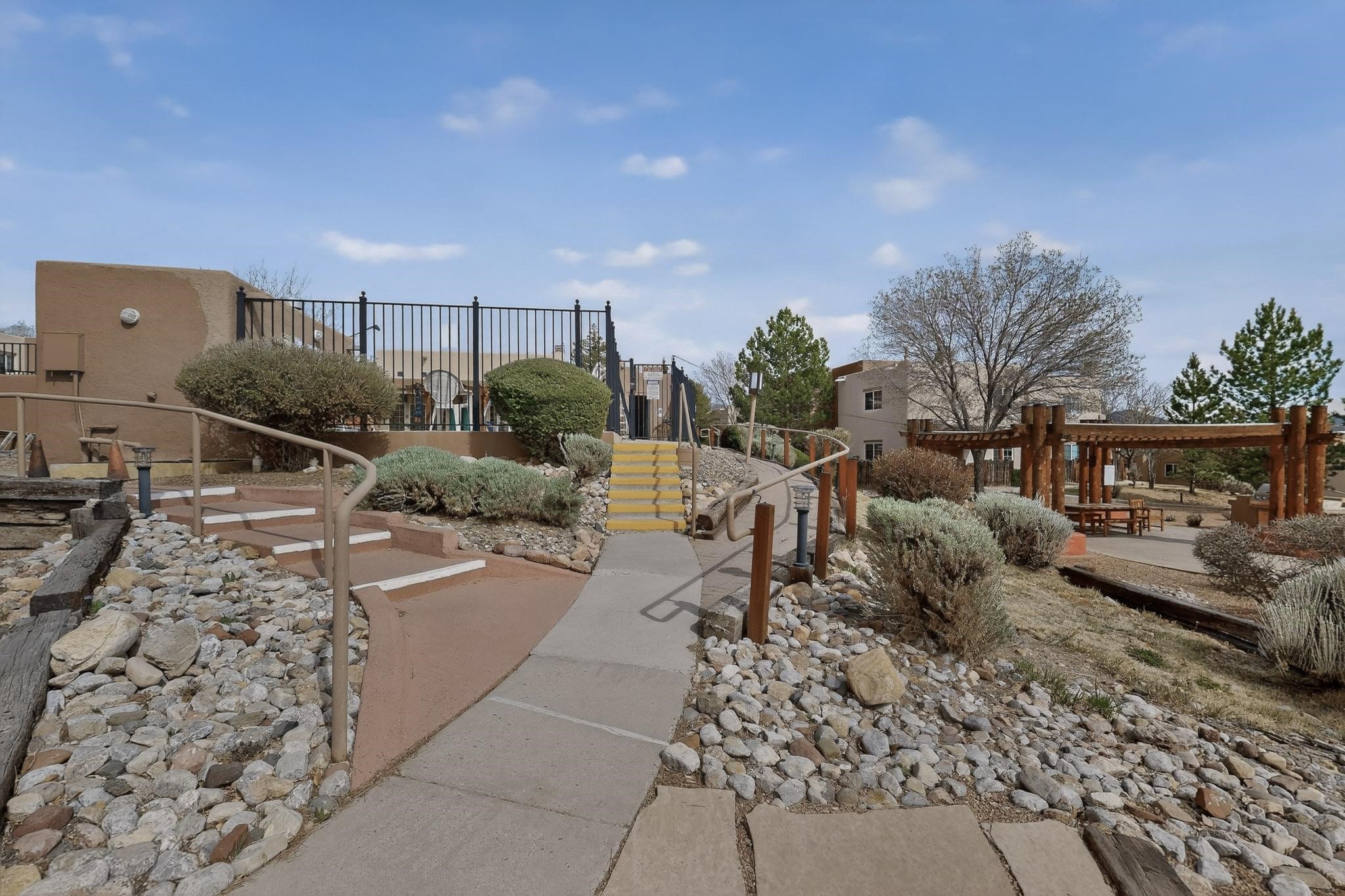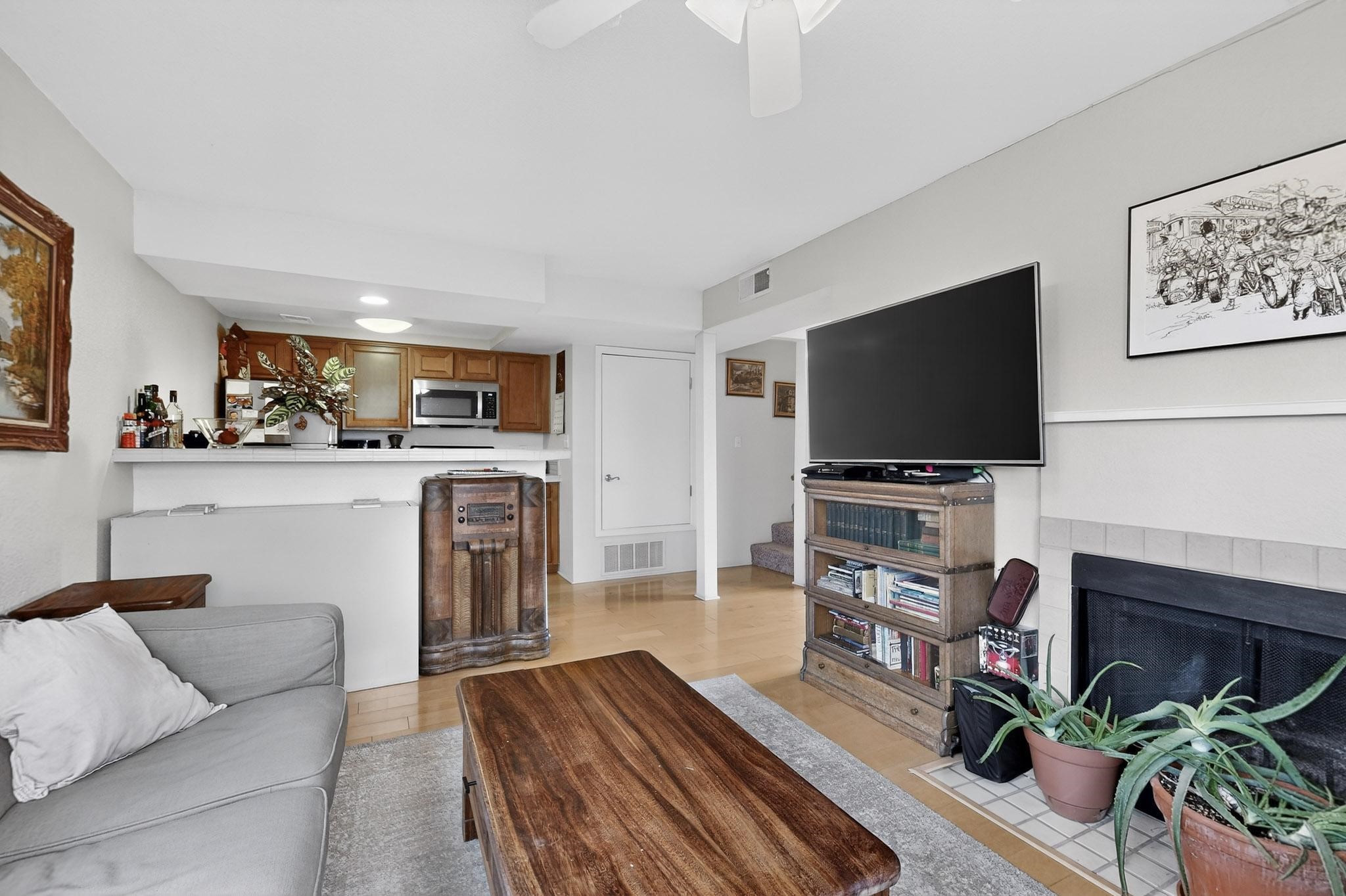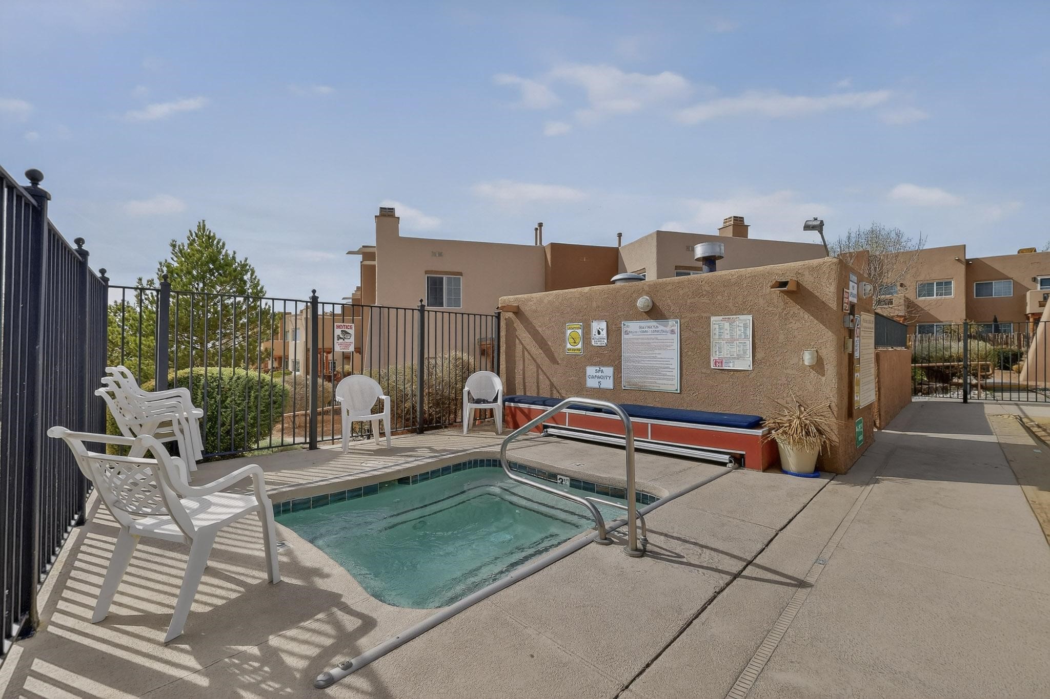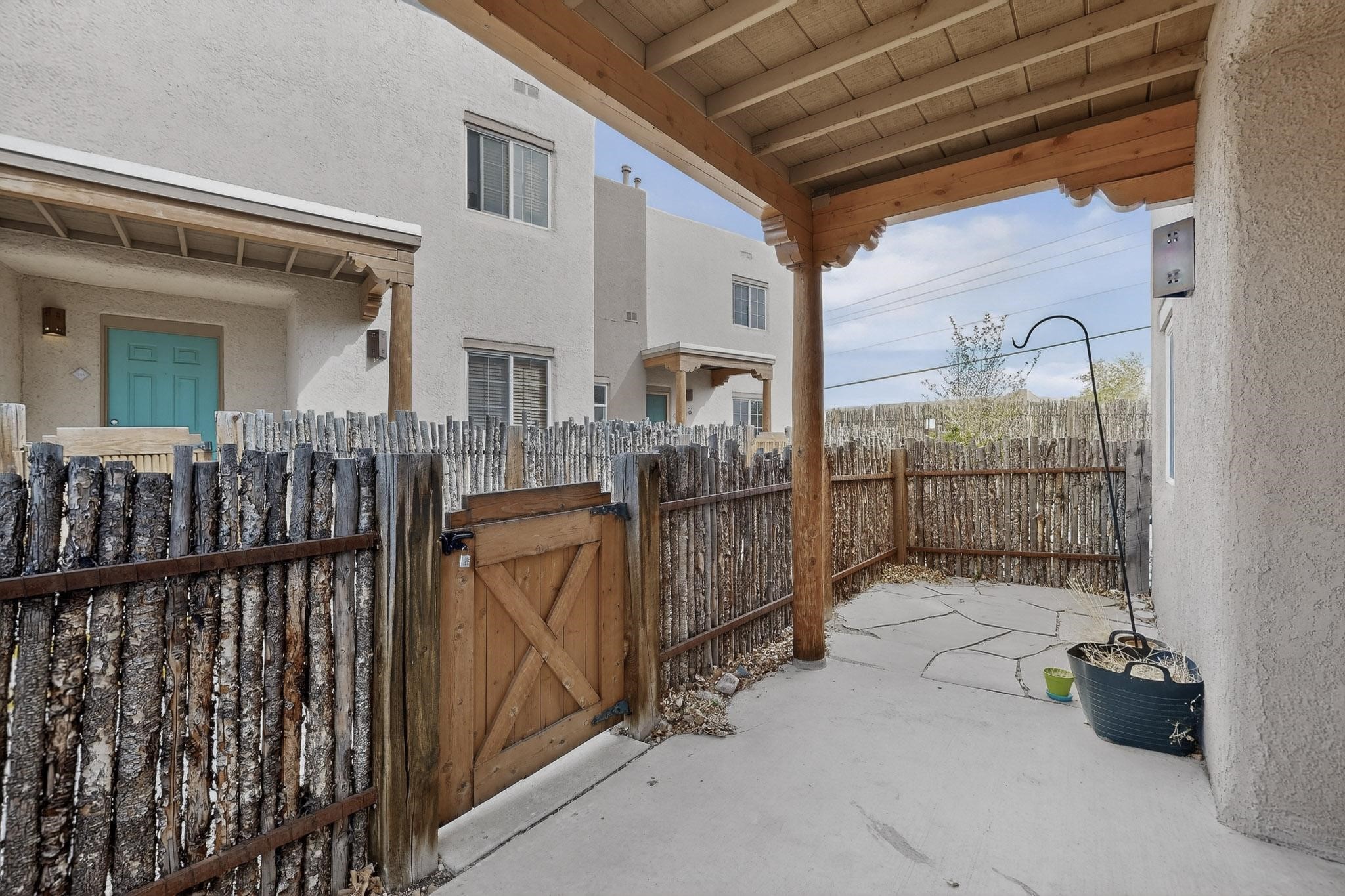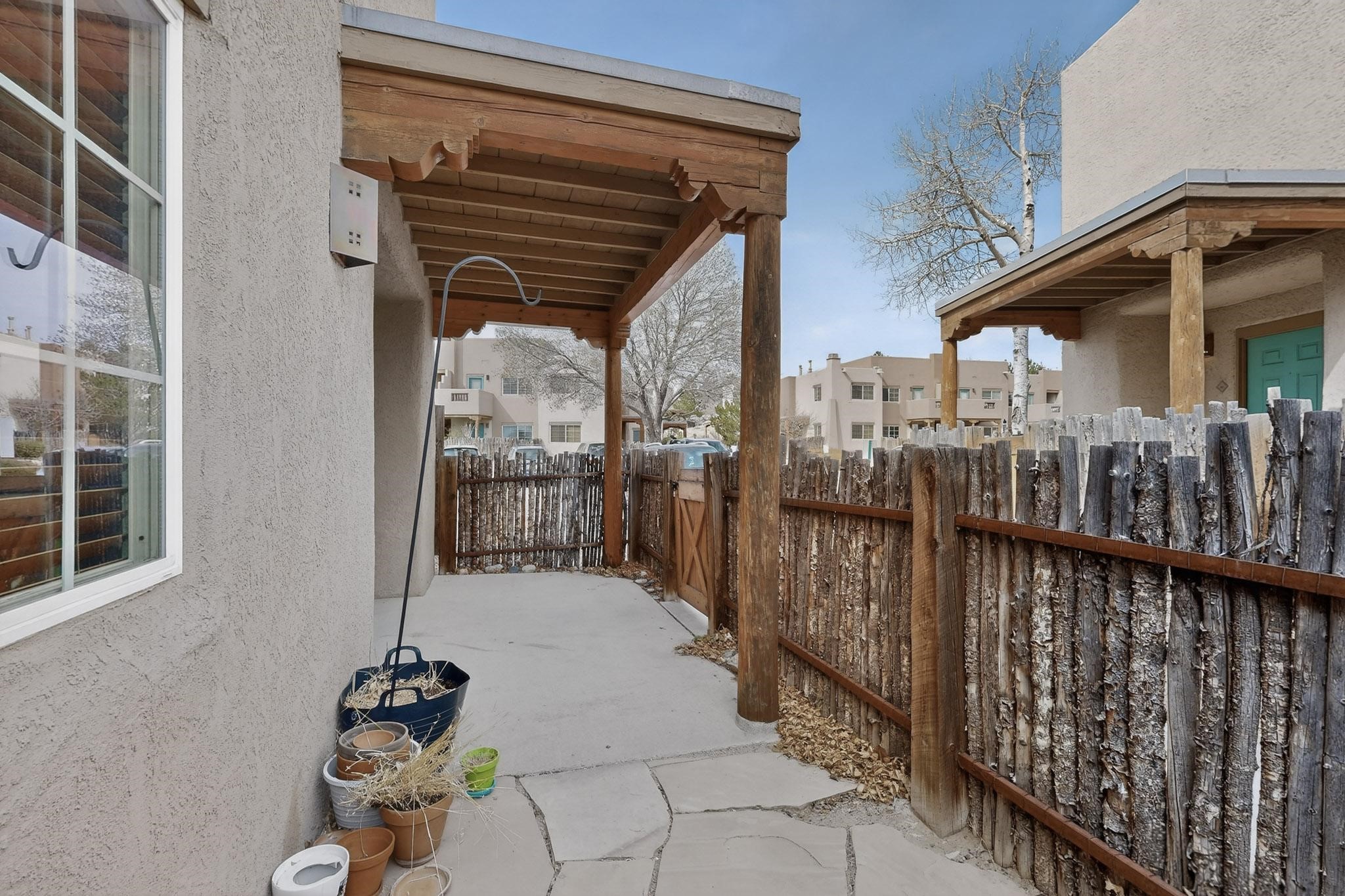 Charming end unit in a gated Santa Fe community offering a well-designed floor plan and an appealing price point near downtown. The main level is dedicated to the living, dining, and kitchen areas, creating an easy flow for daily living and entertaining, while both bedrooms and full bathrooms are located upstairs. Features include 2 bedrooms, 2 full bathrooms, a washer and dryer, stainless steel appliances, and a gas fireplace. Community amenities include a dog park, swimming pool, hot tub, fitness center, and common BBQ areas.