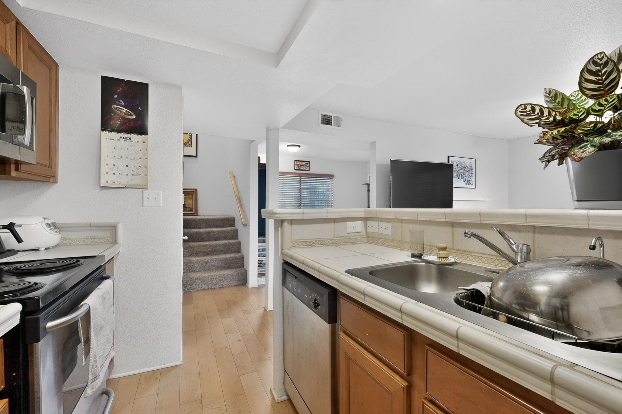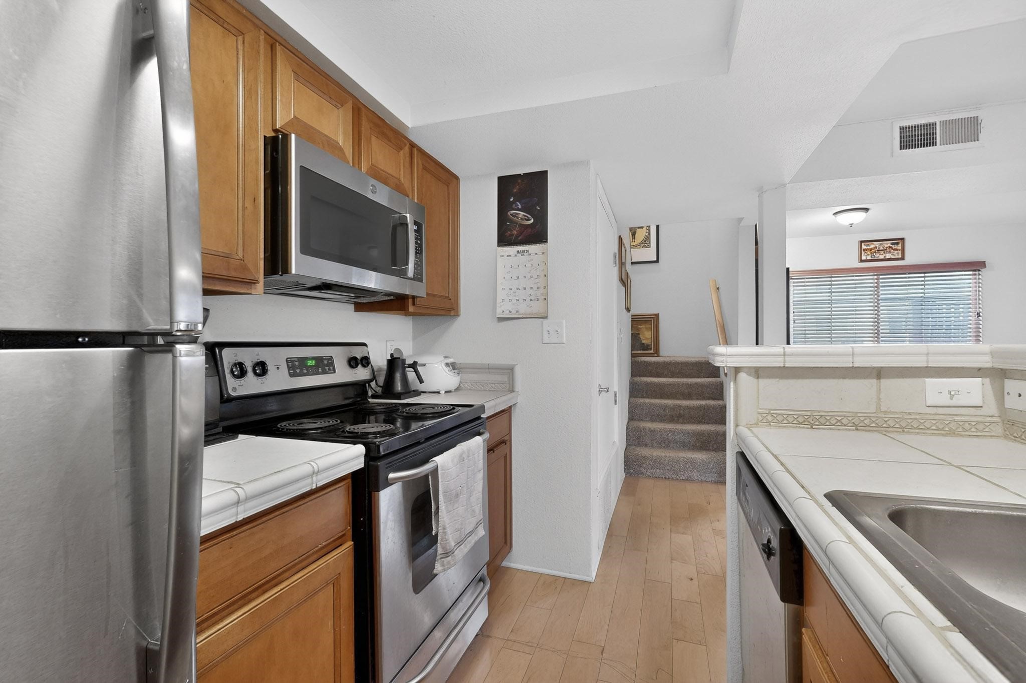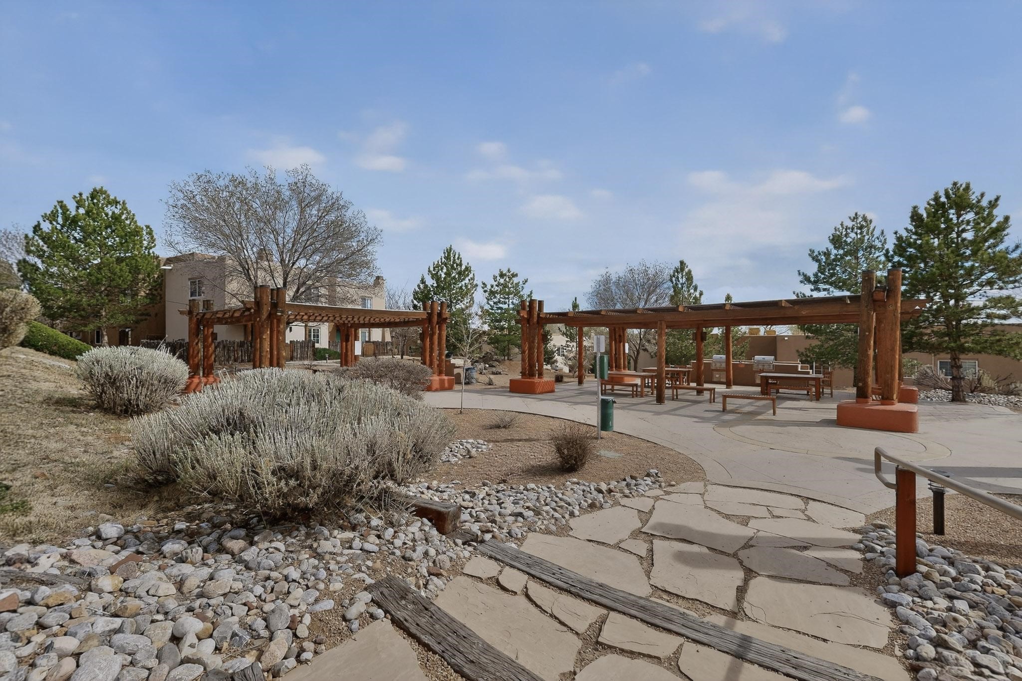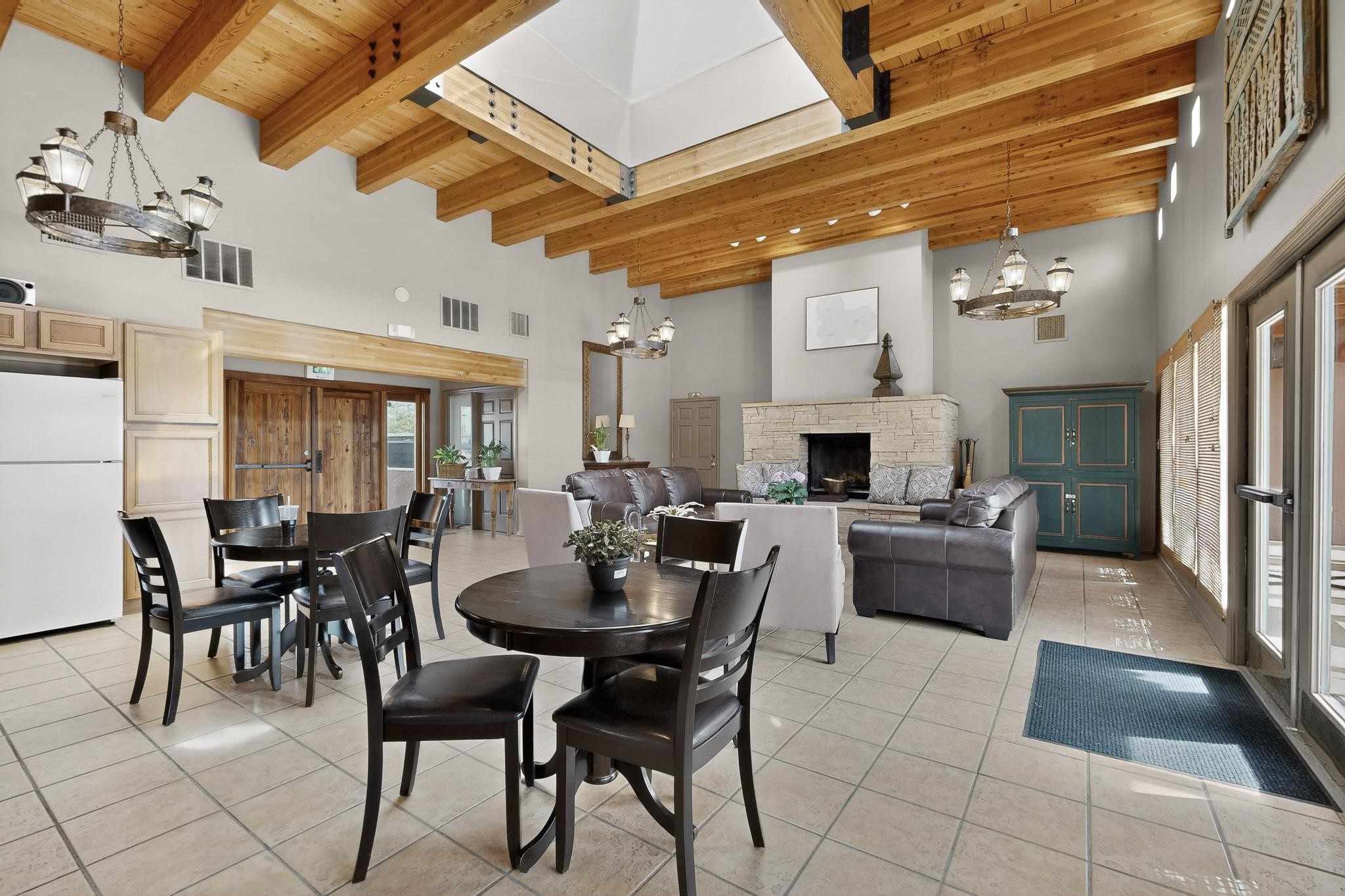 Charming end unit in a gated Santa Fe community offering a well-designed floor plan and an appealing price point near downtown. The main level is dedicated to the living, dining, and kitchen areas, creating an easy flow for daily living and entertaining, while both bedrooms and full bathrooms are located upstairs. Features include 2 bedrooms, 2 full bathrooms, a washer and dryer, stainless steel appliances, and a gas fireplace. Community amenities include a dog park, swimming pool, hot tub, fitness center, and common BBQ areas.