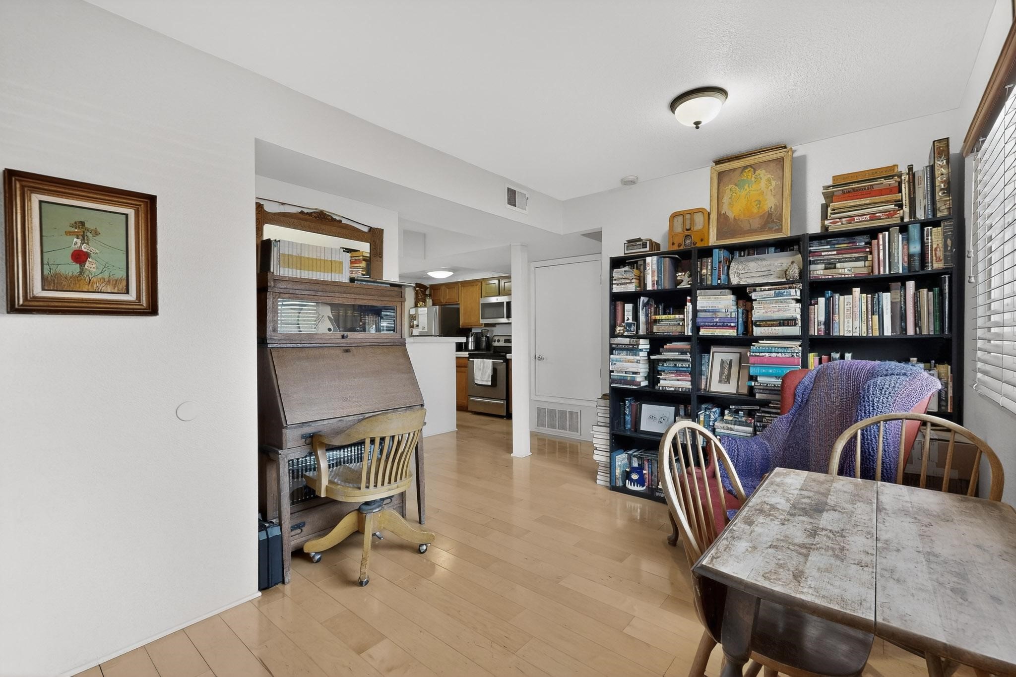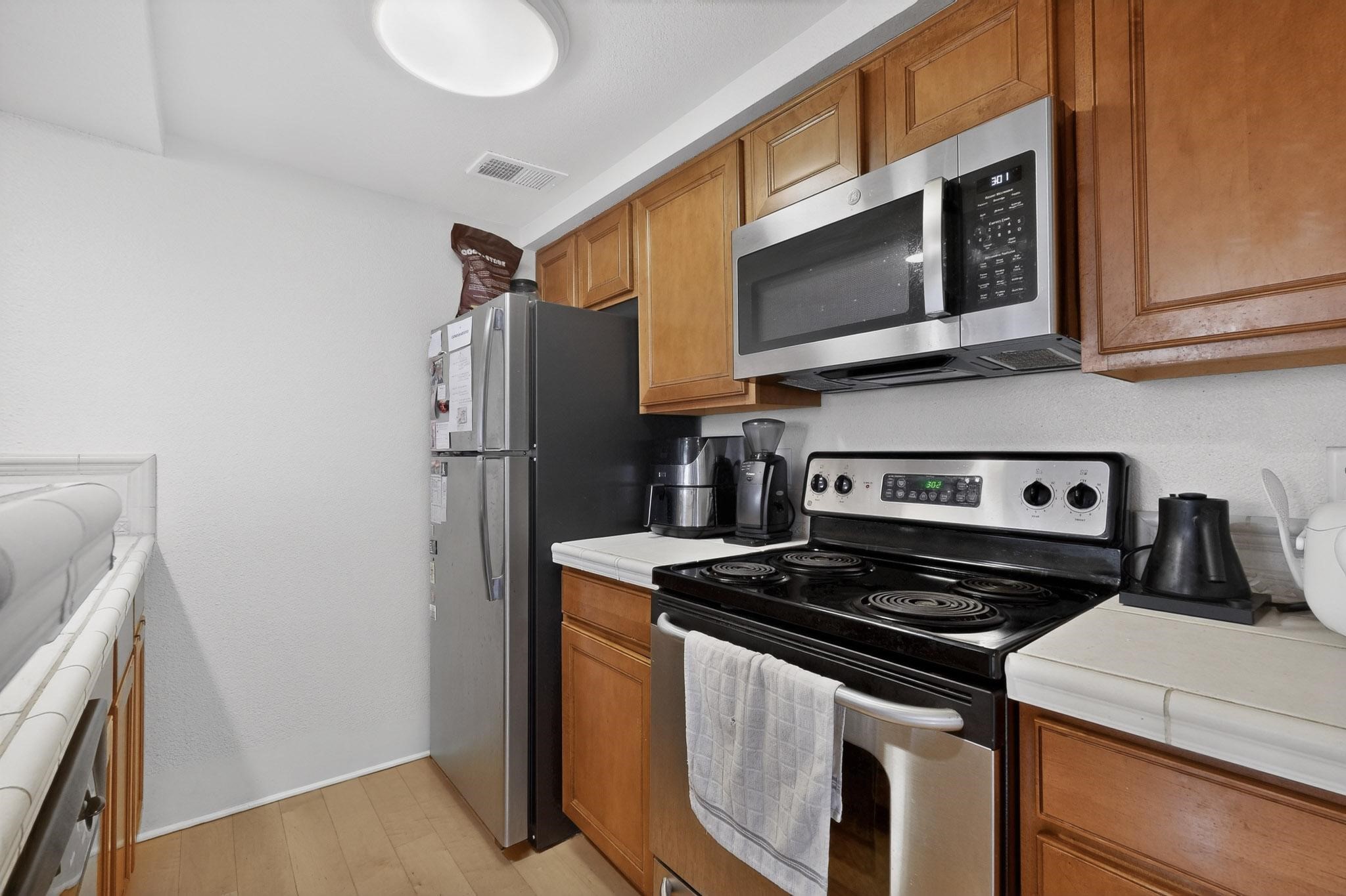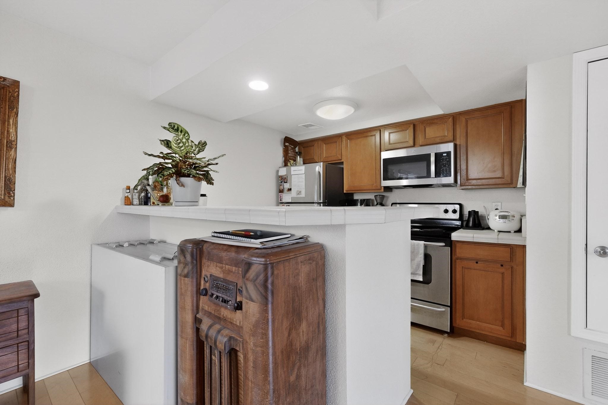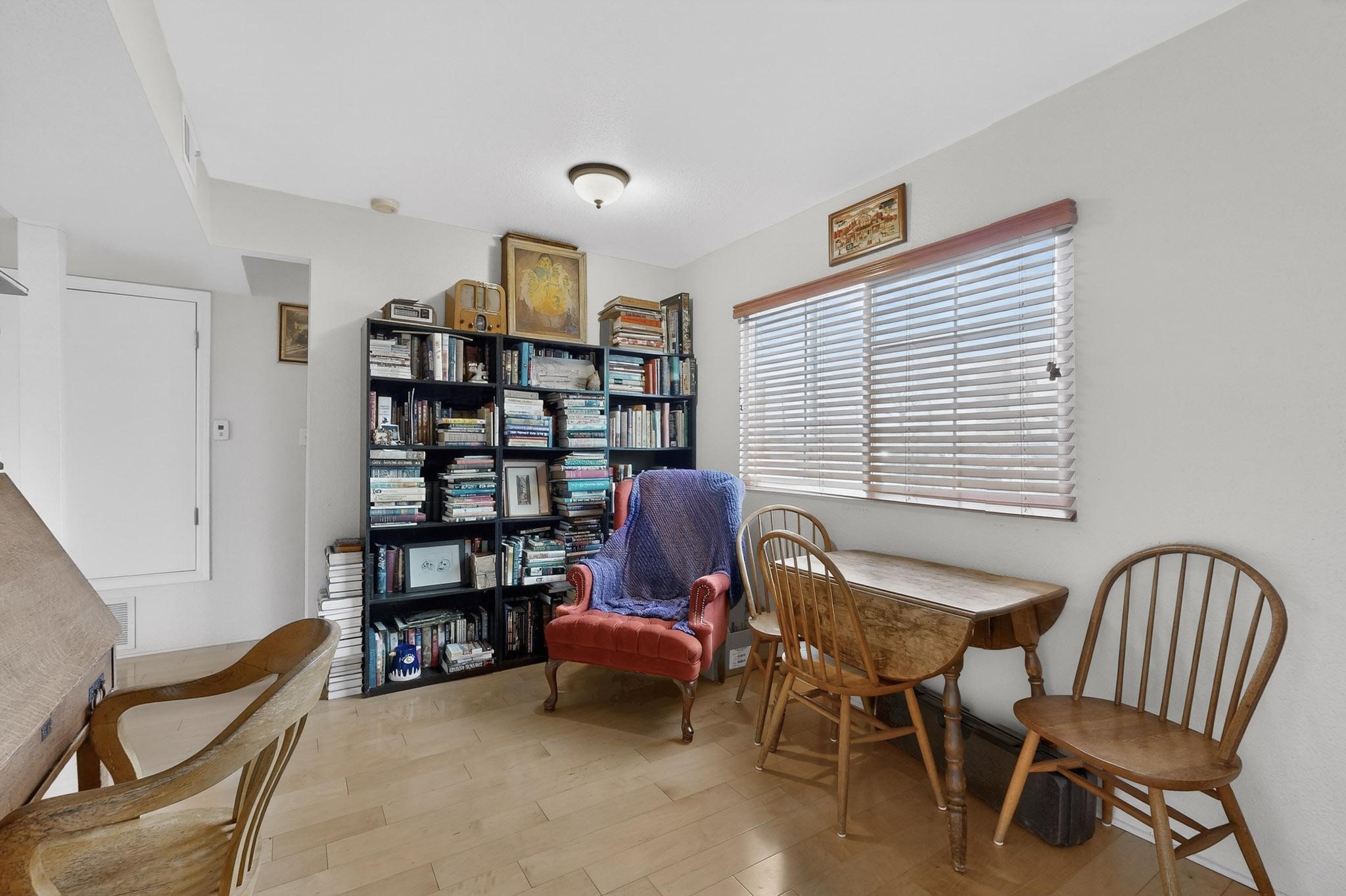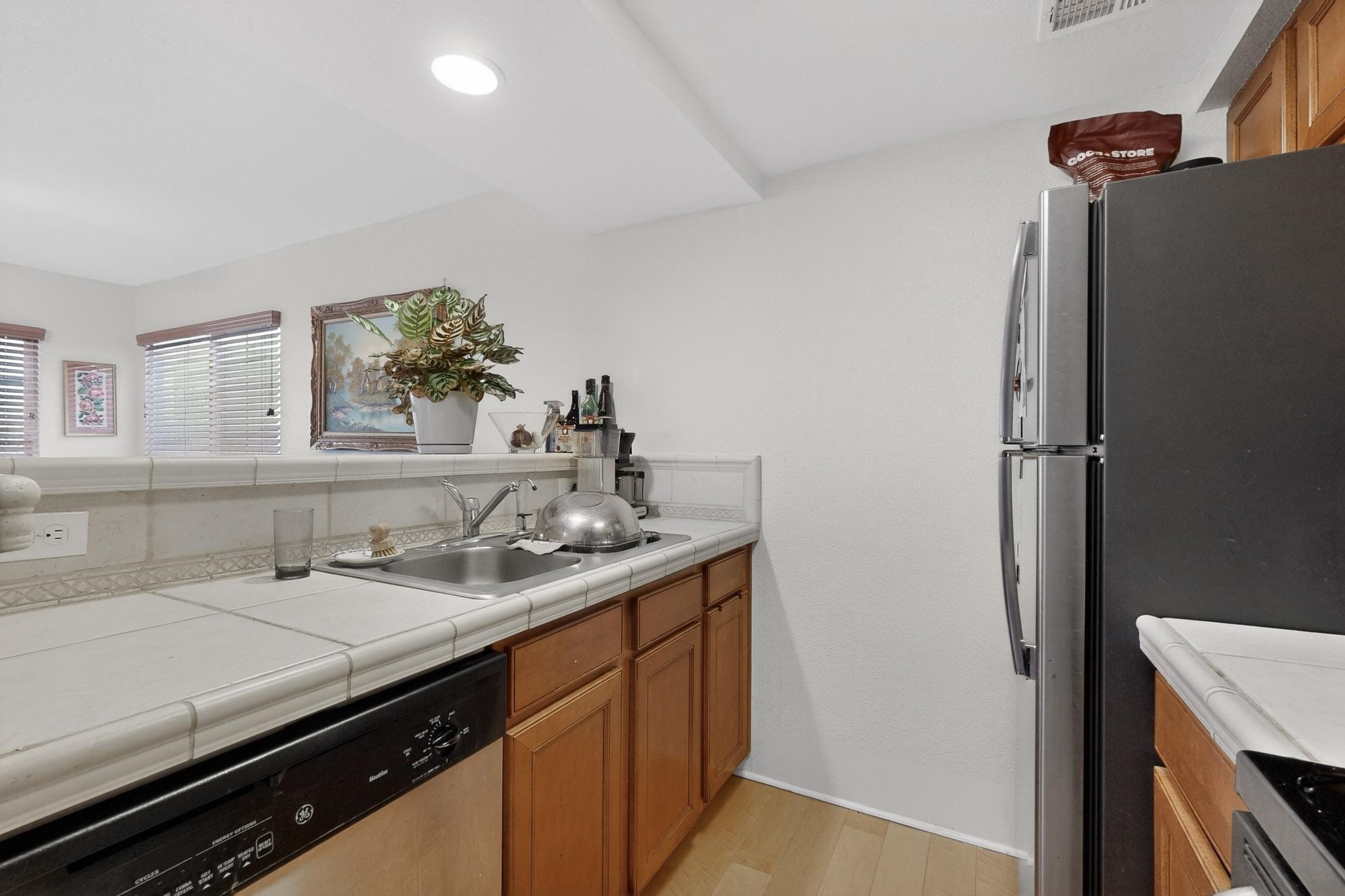 Charming end unit in a gated Santa Fe community offering a well-designed floor plan and an appealing price point near downtown. The main level is dedicated to the living, dining, and kitchen areas, creating an easy flow for daily living and entertaining, while both bedrooms and full bathrooms are located upstairs. Features include 2 bedrooms, 2 full bathrooms, a washer and dryer, stainless steel appliances, and a gas fireplace. Community amenities include a dog park, swimming pool, hot tub, fitness center, and common BBQ areas.