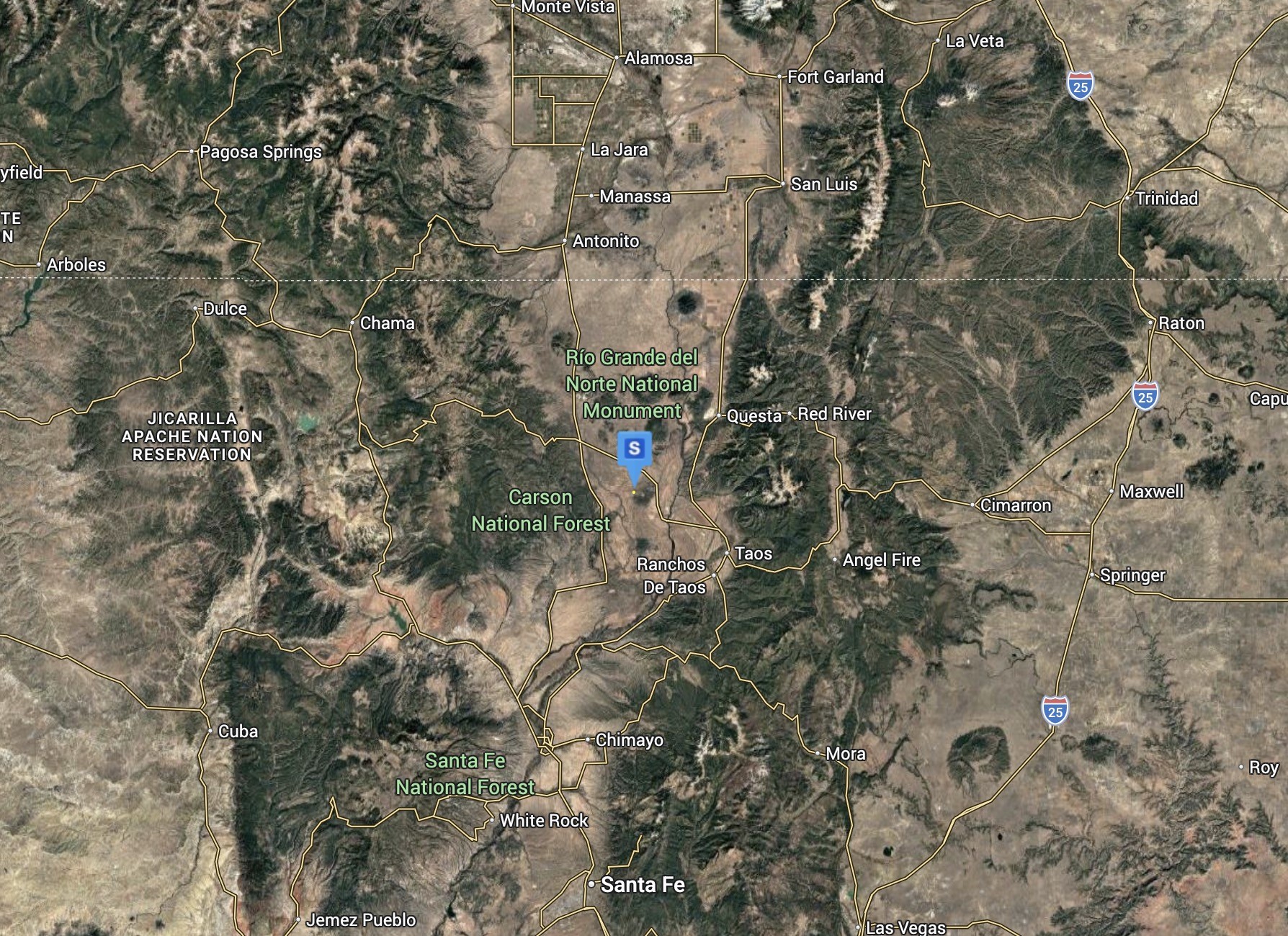 Taos is a town in the north-central region of New Mexico in the Sangre de Cristo Mountains and incorporated in 1934. Other nearby communities include Ranchos de Taos, Cañon, Taos Canyon, Ranchitos, El Prado, and Arroyo Seco. The town is close to Taos Pueblo, the Native American village and tribe from which it takes its name.