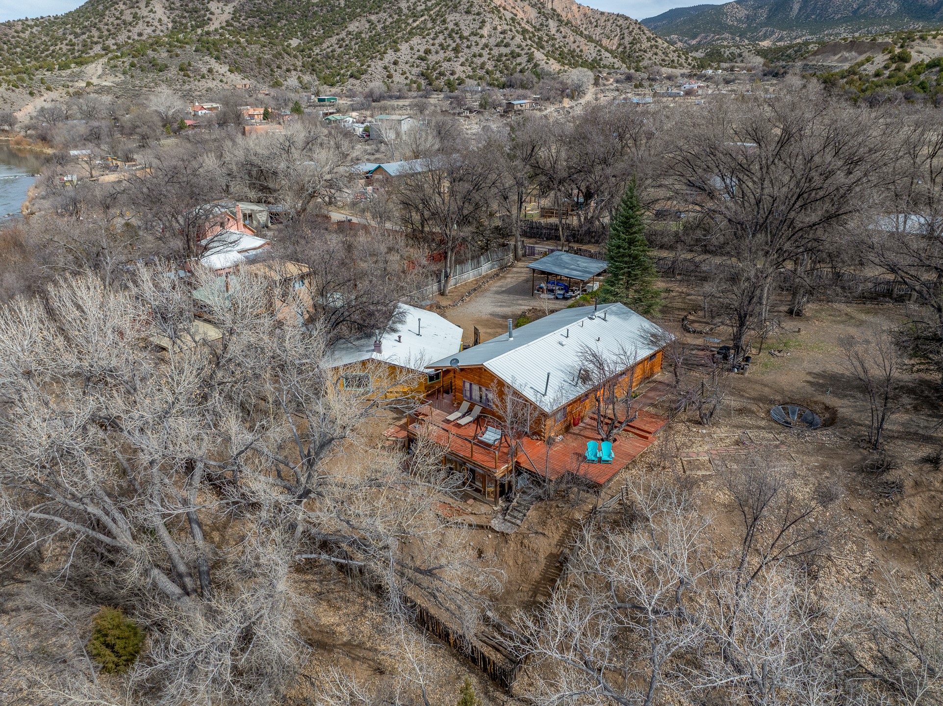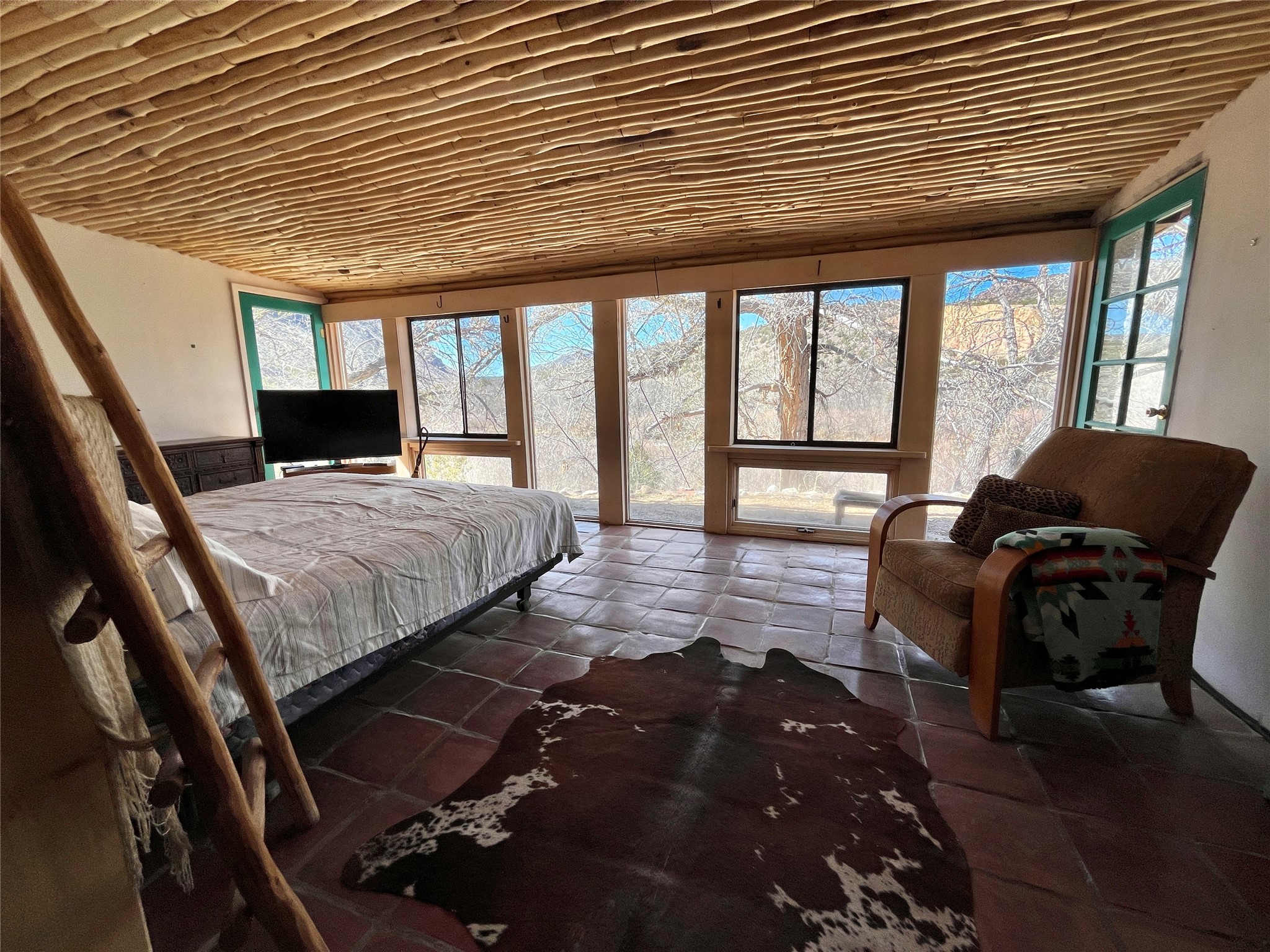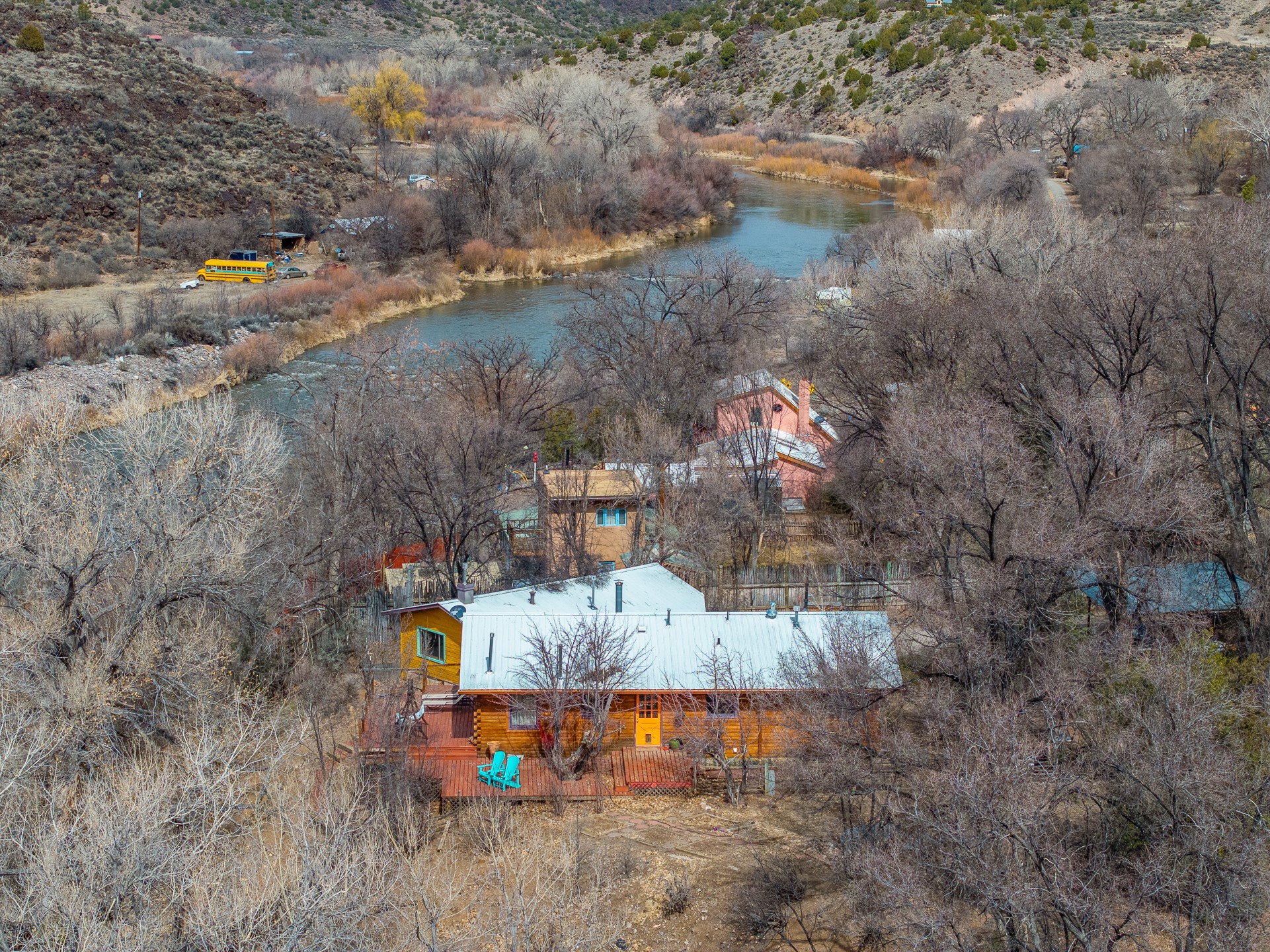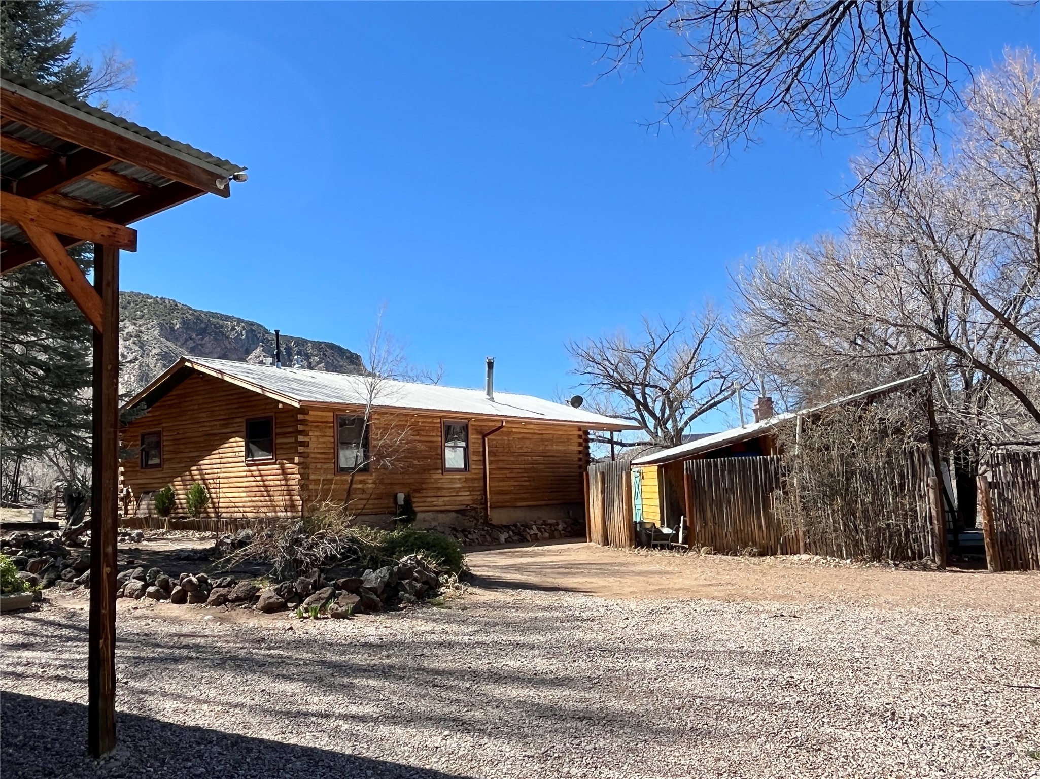 Log cabin retreat on one acre along the Rio Grande canyon just 20 minutes from Taos. Charming Rio Grande Canyon property located in Pilar, NM, about an hour from Santa Fe, offering privacy, natural beauty, and classic Northern New Mexico character. This 2-bedroom, 1-bath home features warm terracotta tile floors, a beautiful natural wood ceiling, and large windows that bring in abundant natural light and canyon views. The lower level includes a spacious bonus room currently used as a third bedroom with views toward the Rio Grande--ideal for an art studio, creative workspace, or guest area. Outside, enjoy a large deck overlooking the peaceful landscape with mature trees and open space under expansive New Mexico skies. The property also includes a separate casita, offering excellent potential for guest accommodations or rental income. Located near some of Northern New Mexico's best rafting, fly fishing, hiking, and outdoor recreation, this unique property offers a wonderful opportunity for a full-time residence, weekend getaway, or artist retreat in the Rio Grande corridor.