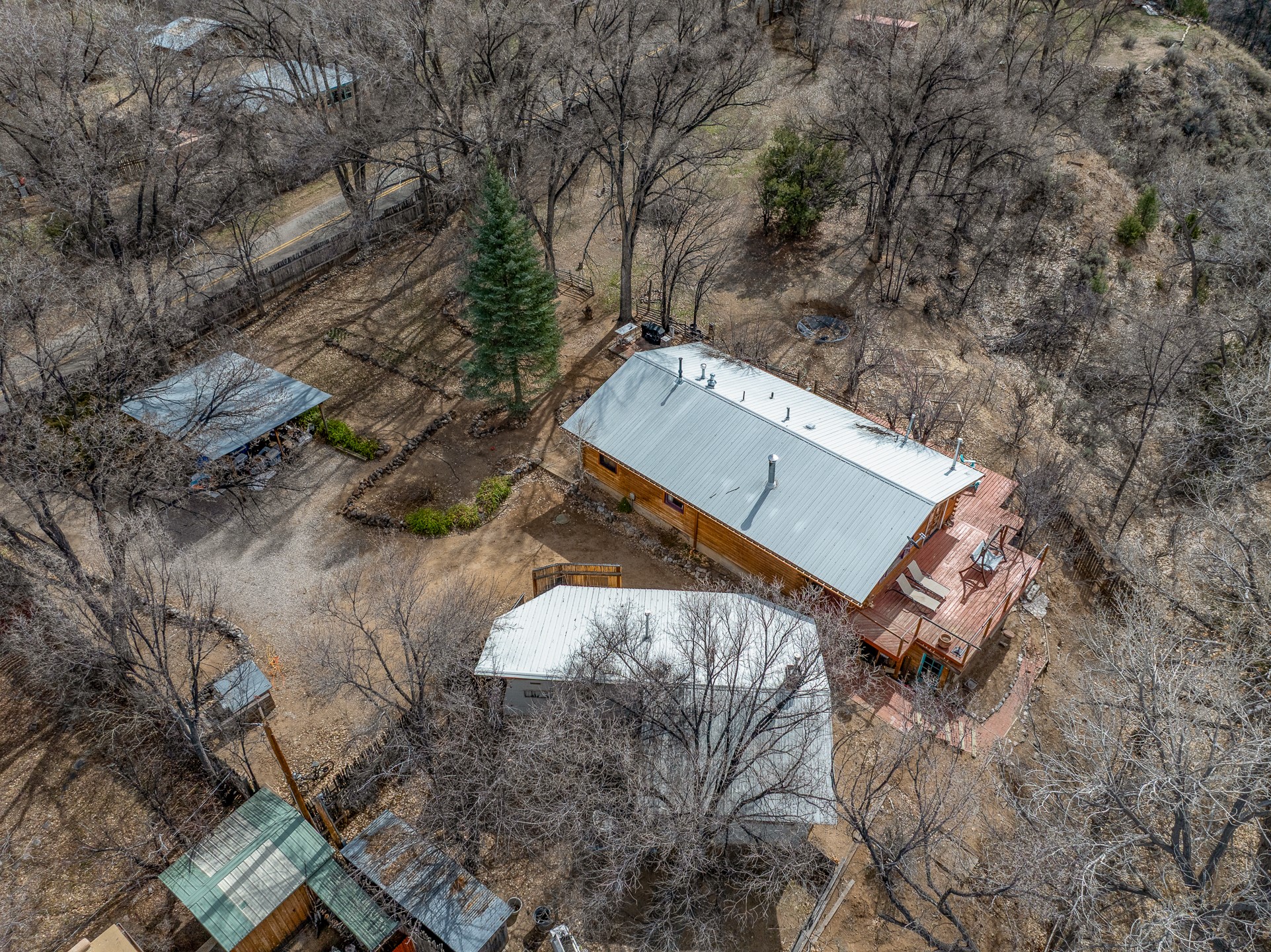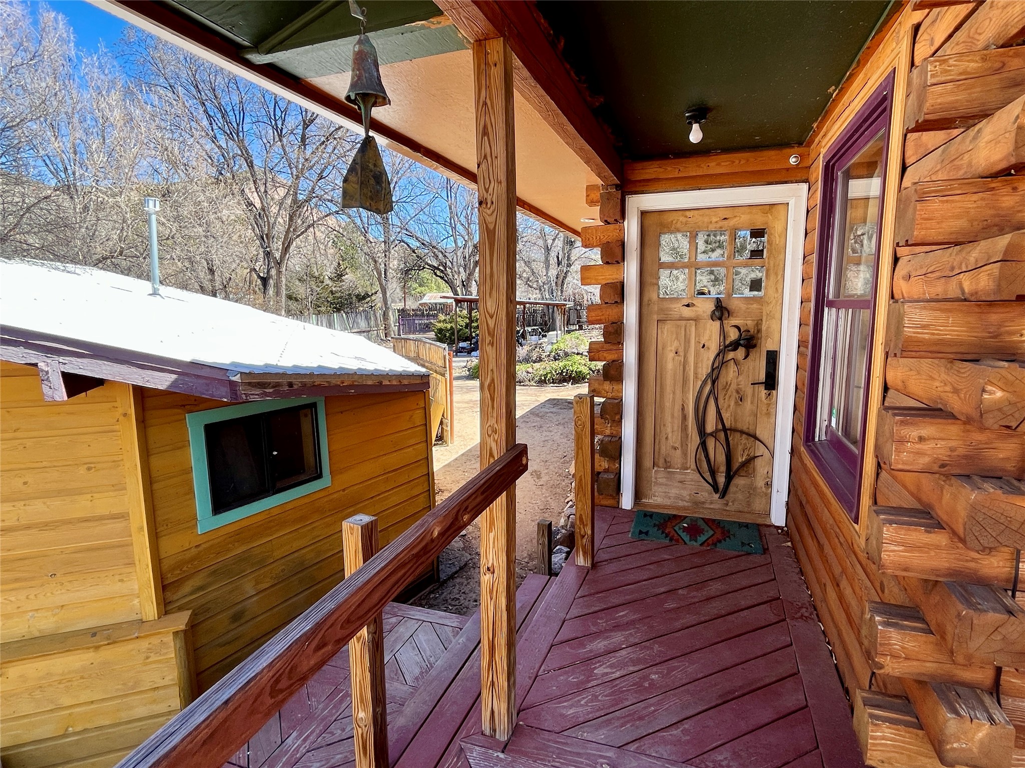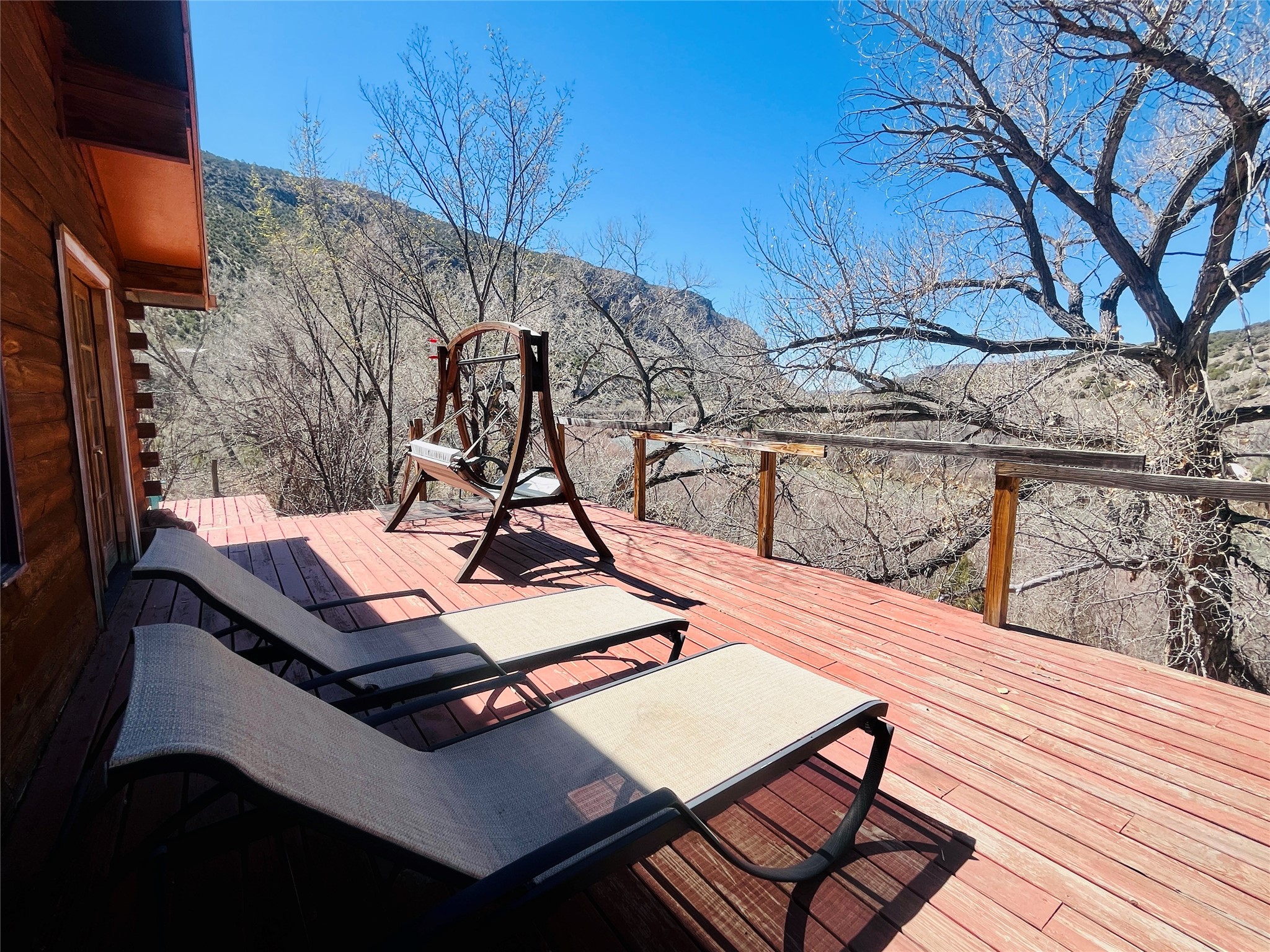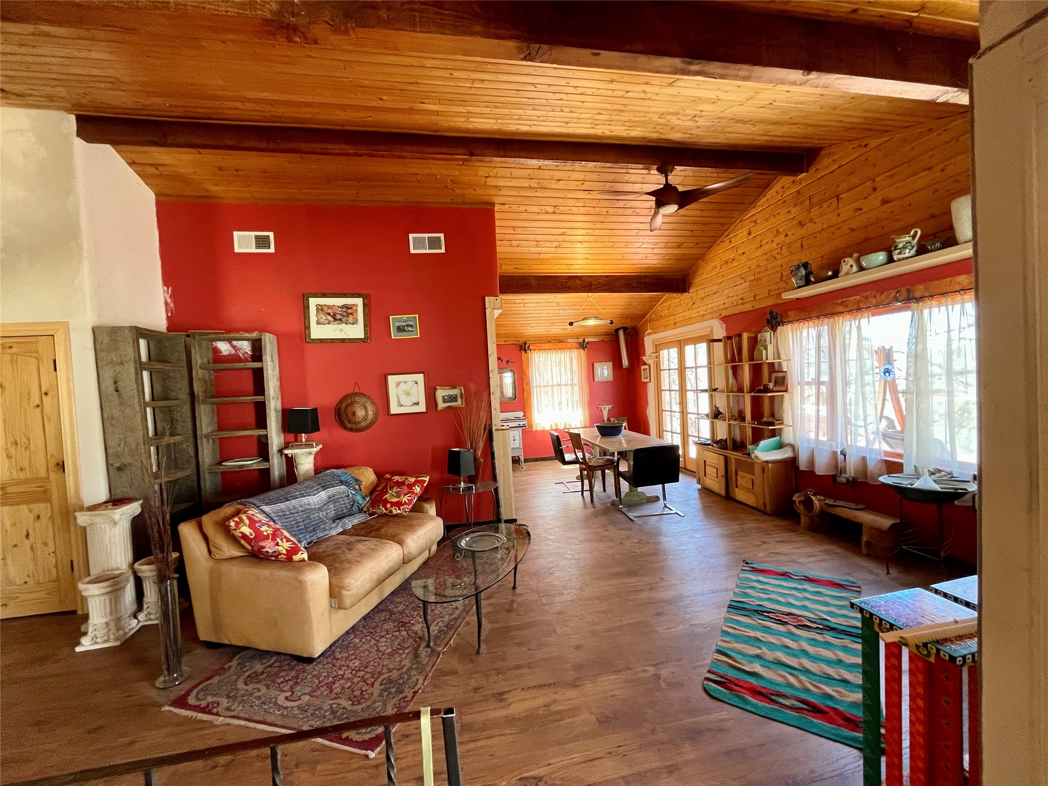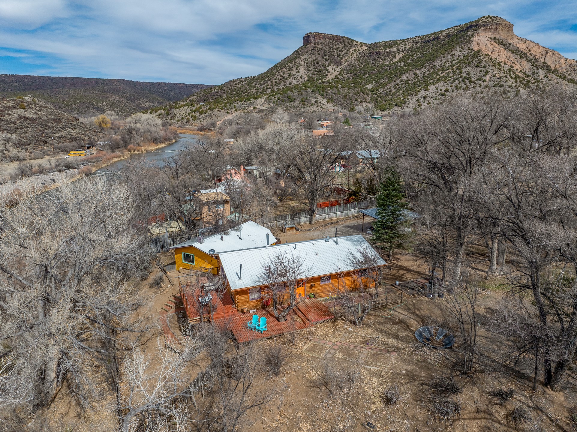 Log cabin retreat on one acre along the Rio Grande canyon just 20 minutes from Taos. Charming Rio Grande Canyon property located in Pilar, NM, about an hour from Santa Fe, offering privacy, natural beauty, and classic Northern New Mexico character. This 2-bedroom, 1-bath home features warm terracotta tile floors, a beautiful natural wood ceiling, and large windows that bring in abundant natural light and canyon views. The lower level includes a spacious bonus room currently used as a third bedroom with views toward the Rio Grande--ideal for an art studio, creative workspace, or guest area. Outside, enjoy a large deck overlooking the peaceful landscape with mature trees and open space under expansive New Mexico skies. The property also includes a separate casita, offering excellent potential for guest accommodations or rental income. Located near some of Northern New Mexico's best rafting, fly fishing, hiking, and outdoor recreation, this unique property offers a wonderful opportunity for a full-time residence, weekend getaway, or artist retreat in the Rio Grande corridor.