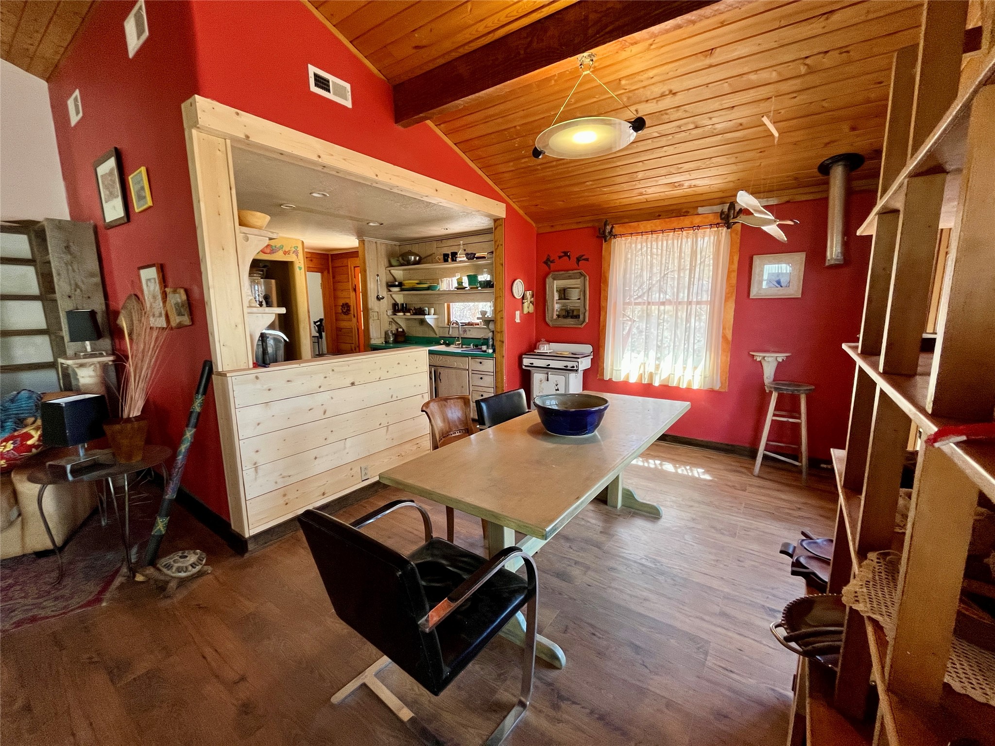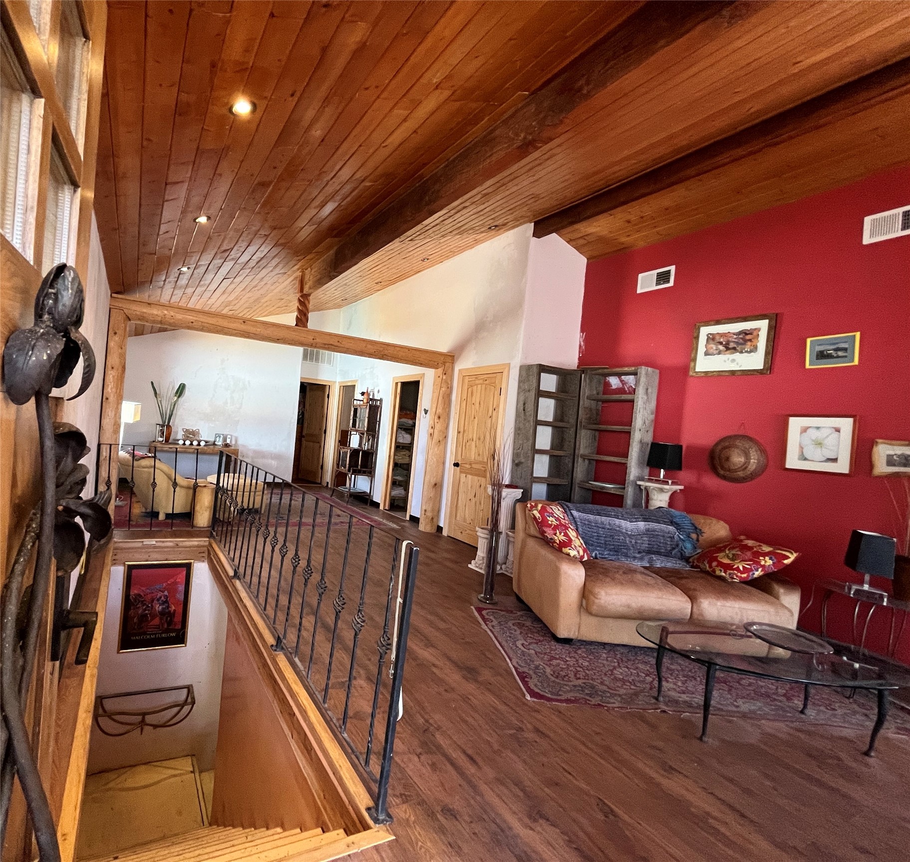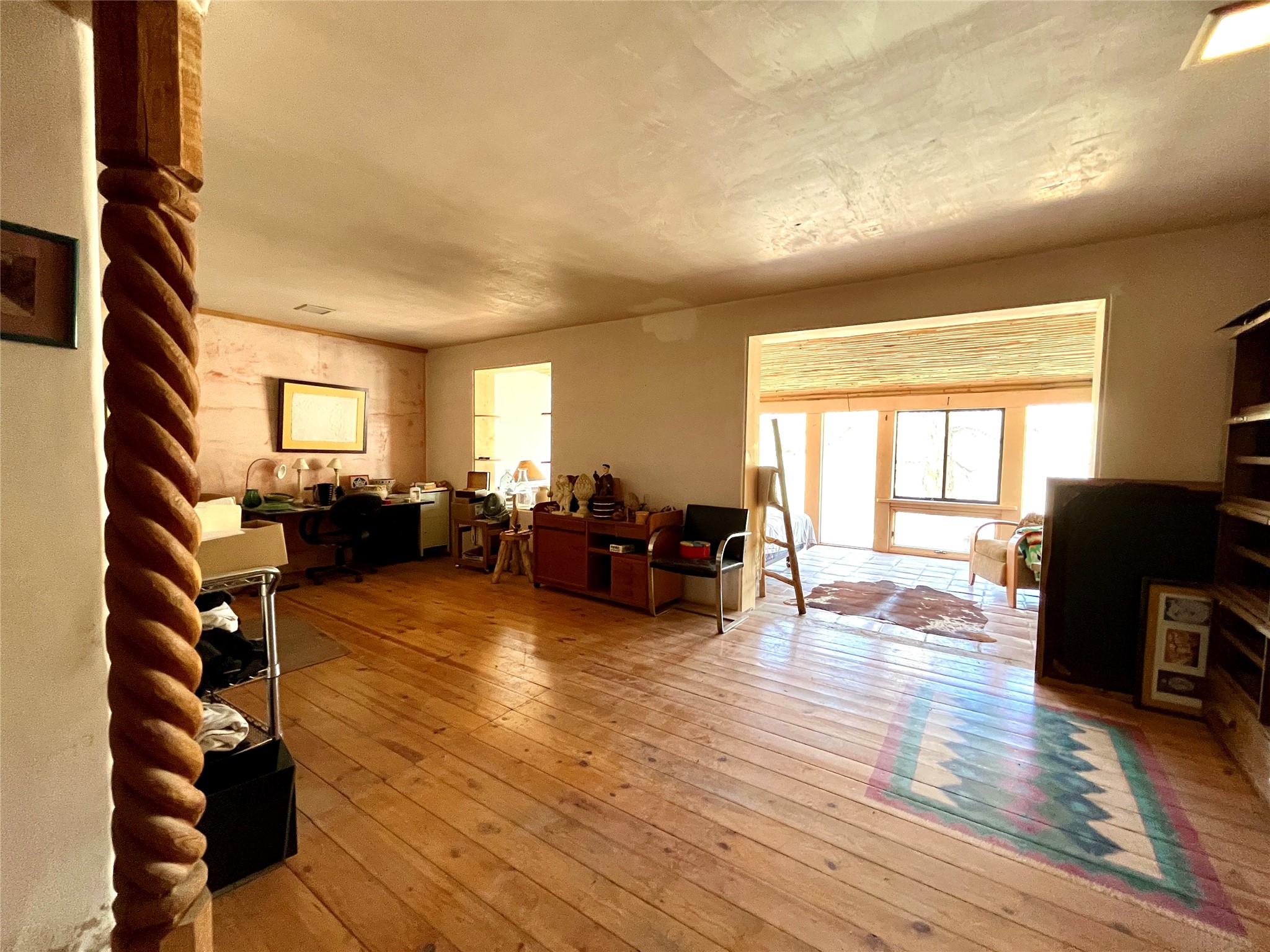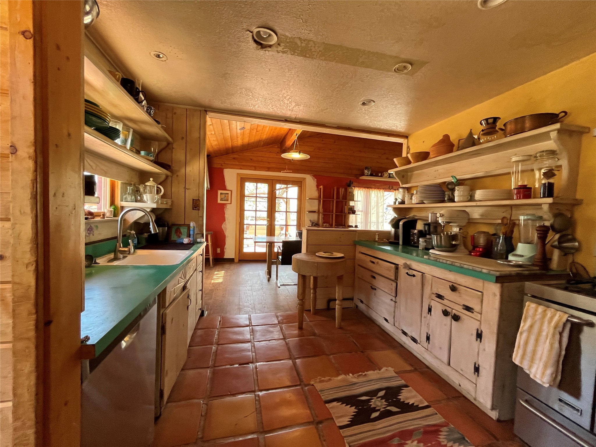 Log cabin retreat on one acre along the Rio Grande canyon just 20 minutes from Taos. Charming Rio Grande Canyon property located in Pilar, NM, about an hour from Santa Fe, offering privacy, natural beauty, and classic Northern New Mexico character. This 2-bedroom, 1-bath home features warm terracotta tile floors, a beautiful natural wood ceiling, and large windows that bring in abundant natural light and canyon views. The lower level includes a spacious bonus room currently used as a third bedroom with views toward the Rio Grande--ideal for an art studio, creative workspace, or guest area. Outside, enjoy a large deck overlooking the peaceful landscape with mature trees and open space under expansive New Mexico skies. The property also includes a separate casita, offering excellent potential for guest accommodations or rental income. Located near some of Northern New Mexico's best rafting, fly fishing, hiking, and outdoor recreation, this unique property offers a wonderful opportunity for a full-time residence, weekend getaway, or artist retreat in the Rio Grande corridor.