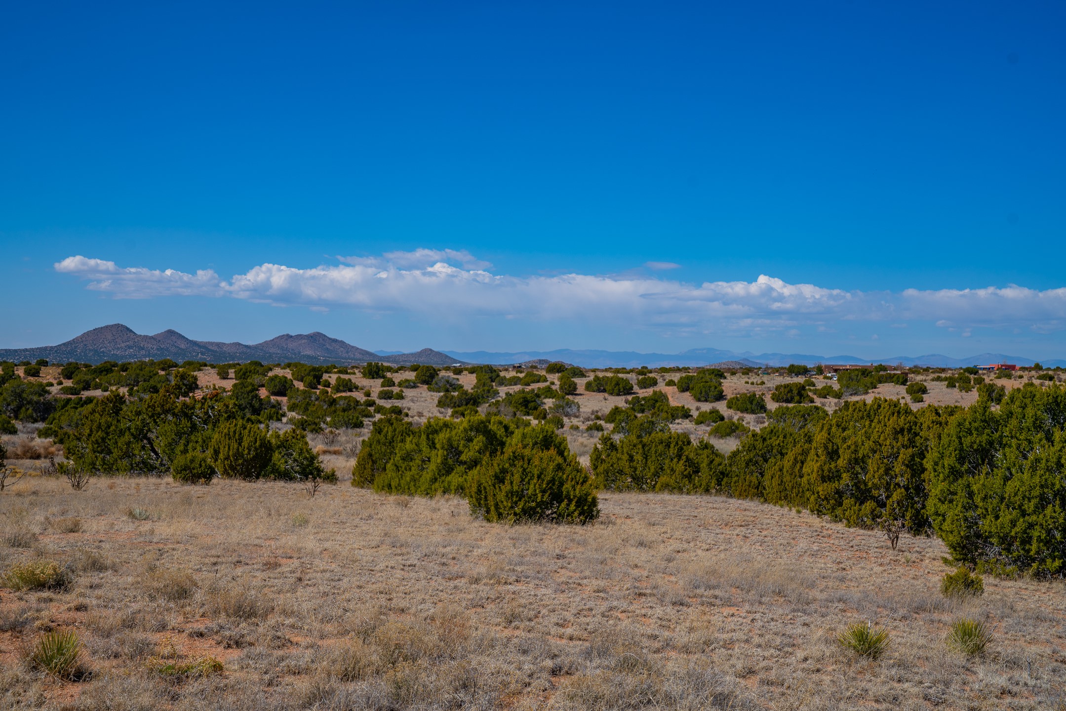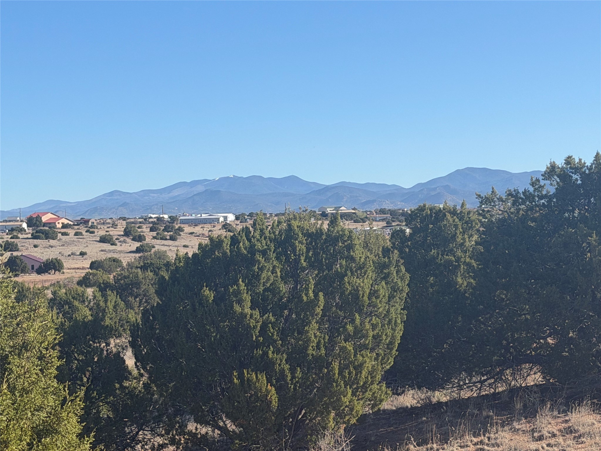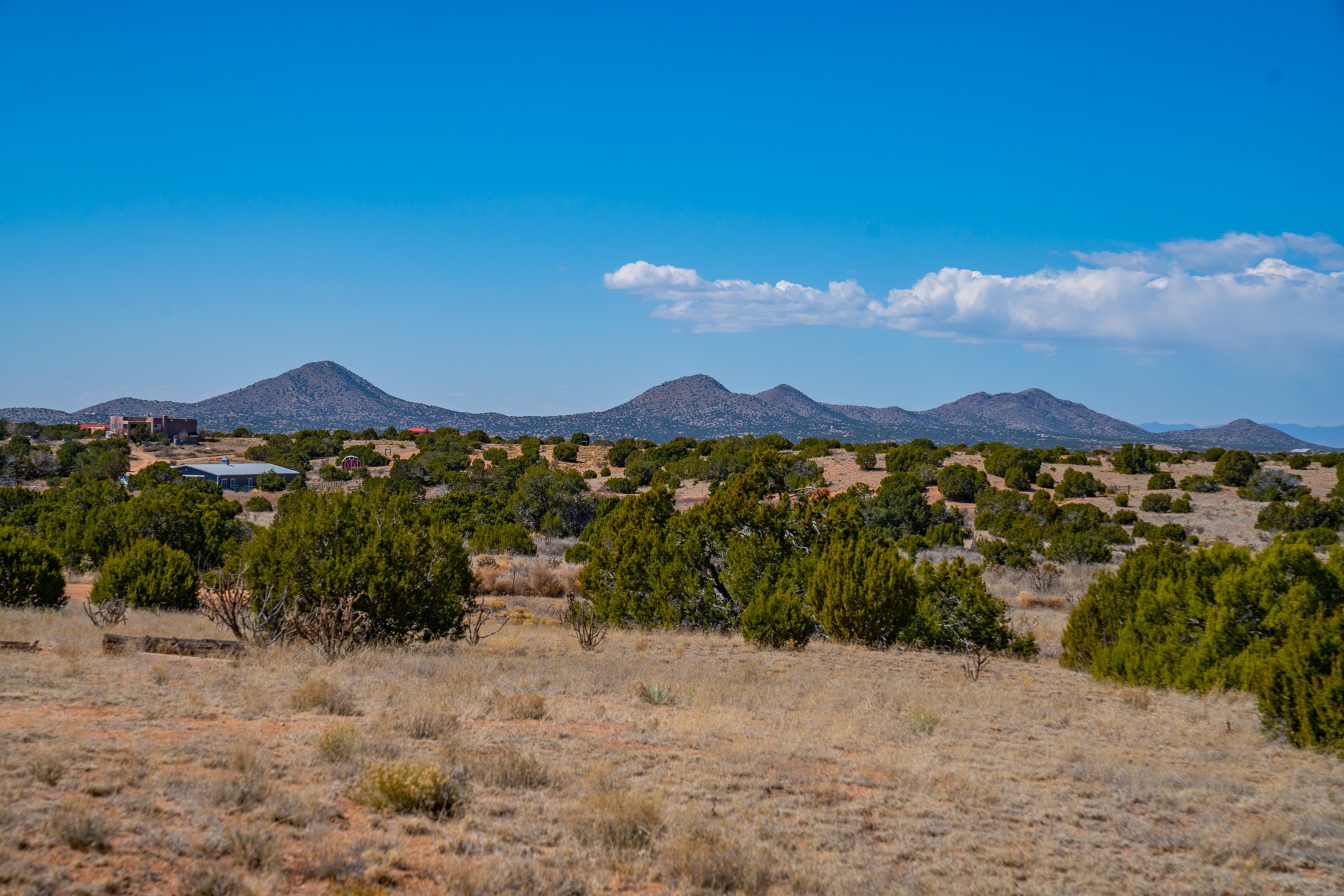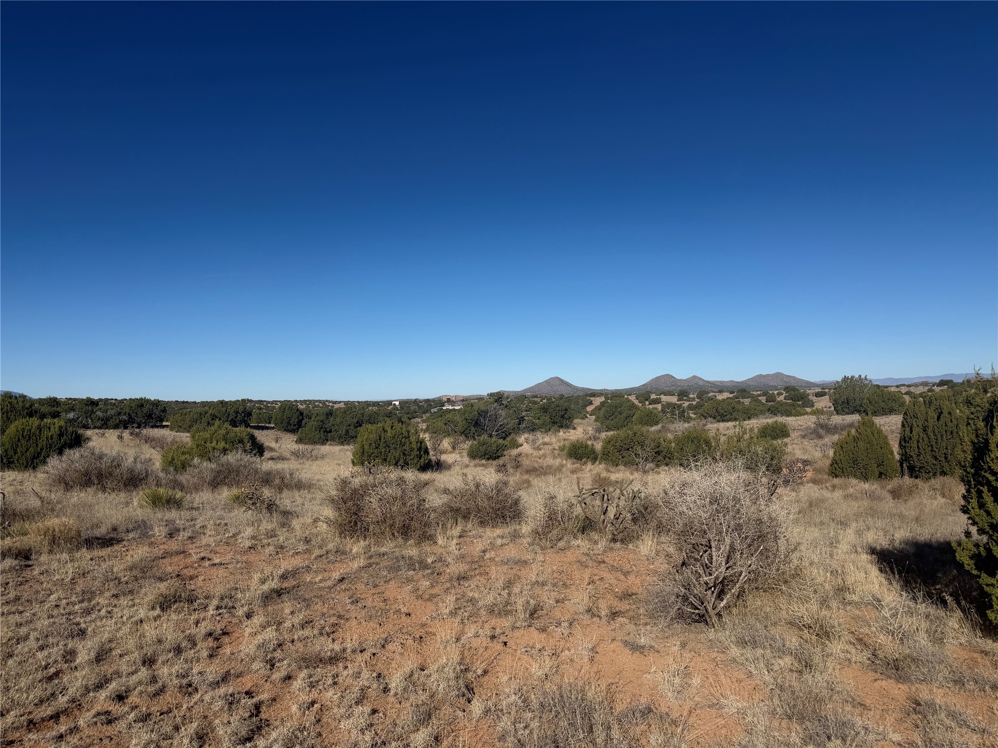 3.75 gently sloping acres with elevated building sites and excellent views of the Sangre de Cristos. Electrical transformer at the edge of lot and shared well available. 15 miles from Santa Fe, off of Camino Los Abuelos, this reasonably priced lot is close enough for a short highway commute, but far enough out to feel out of the city. Reasonable covenants, with two horses and small homes over 700 square feet allowed, mobile and manufactured prohibited. Well is shared with six lots. Adjacent property is also available (MLS 202601106).