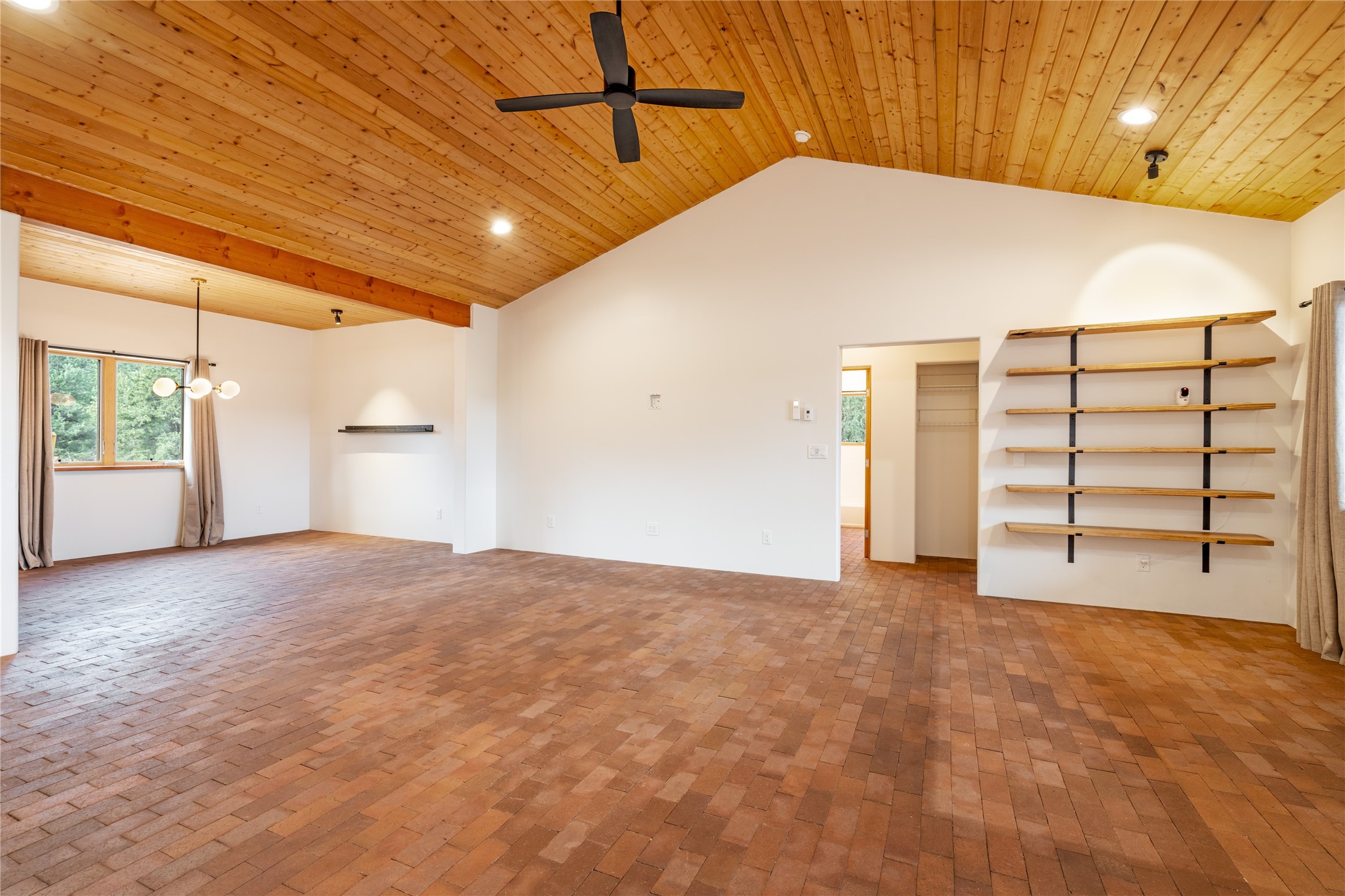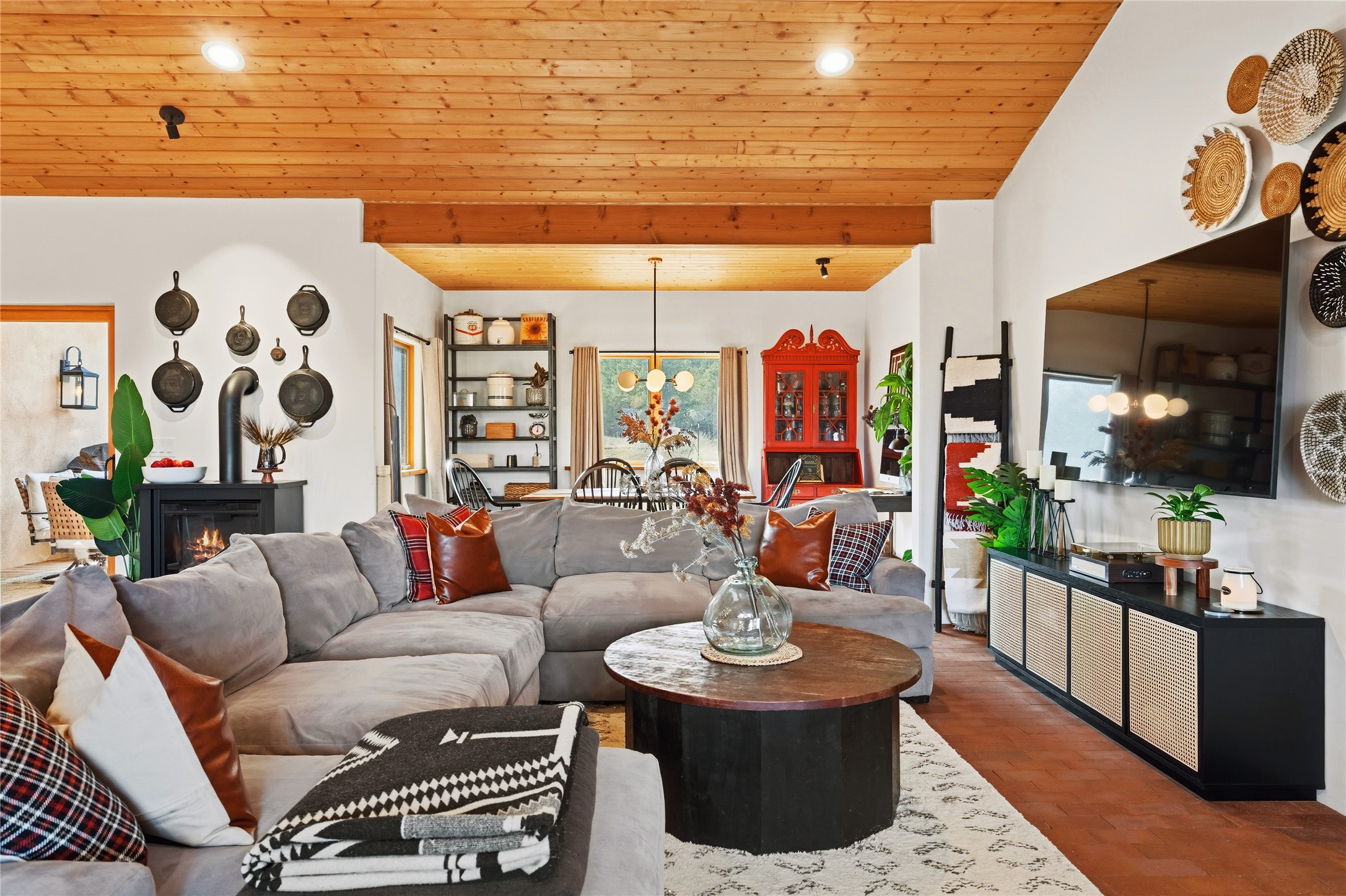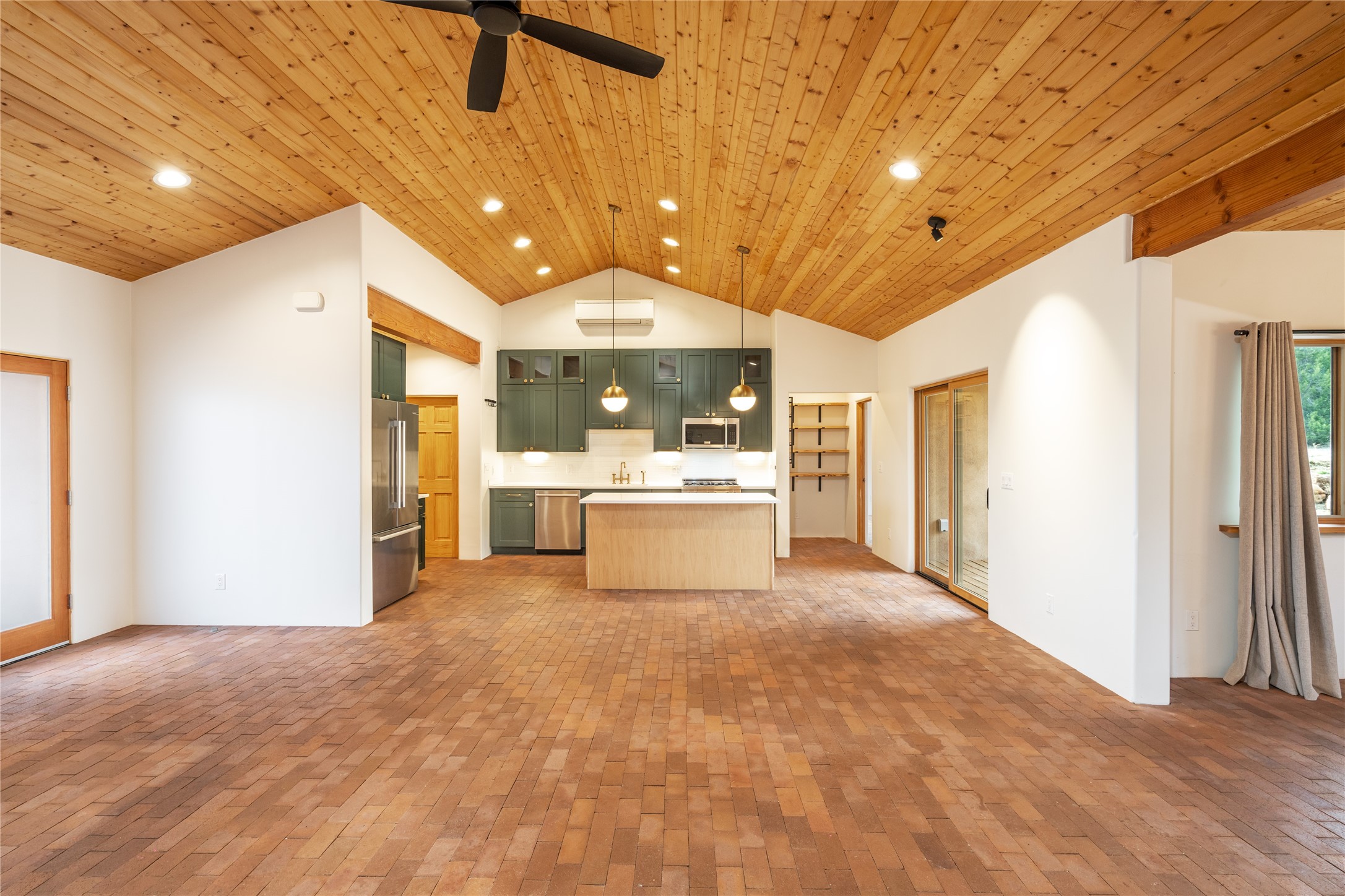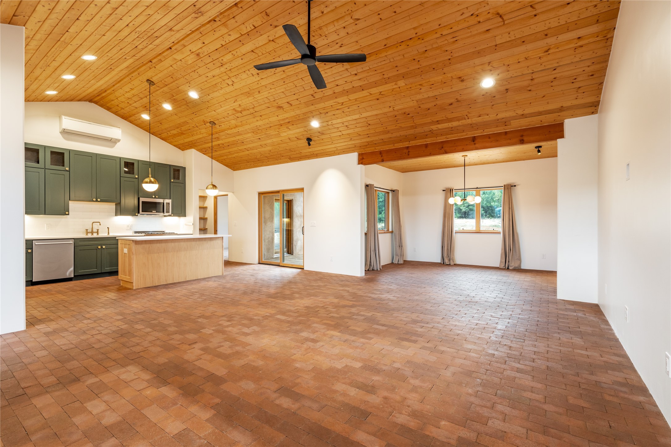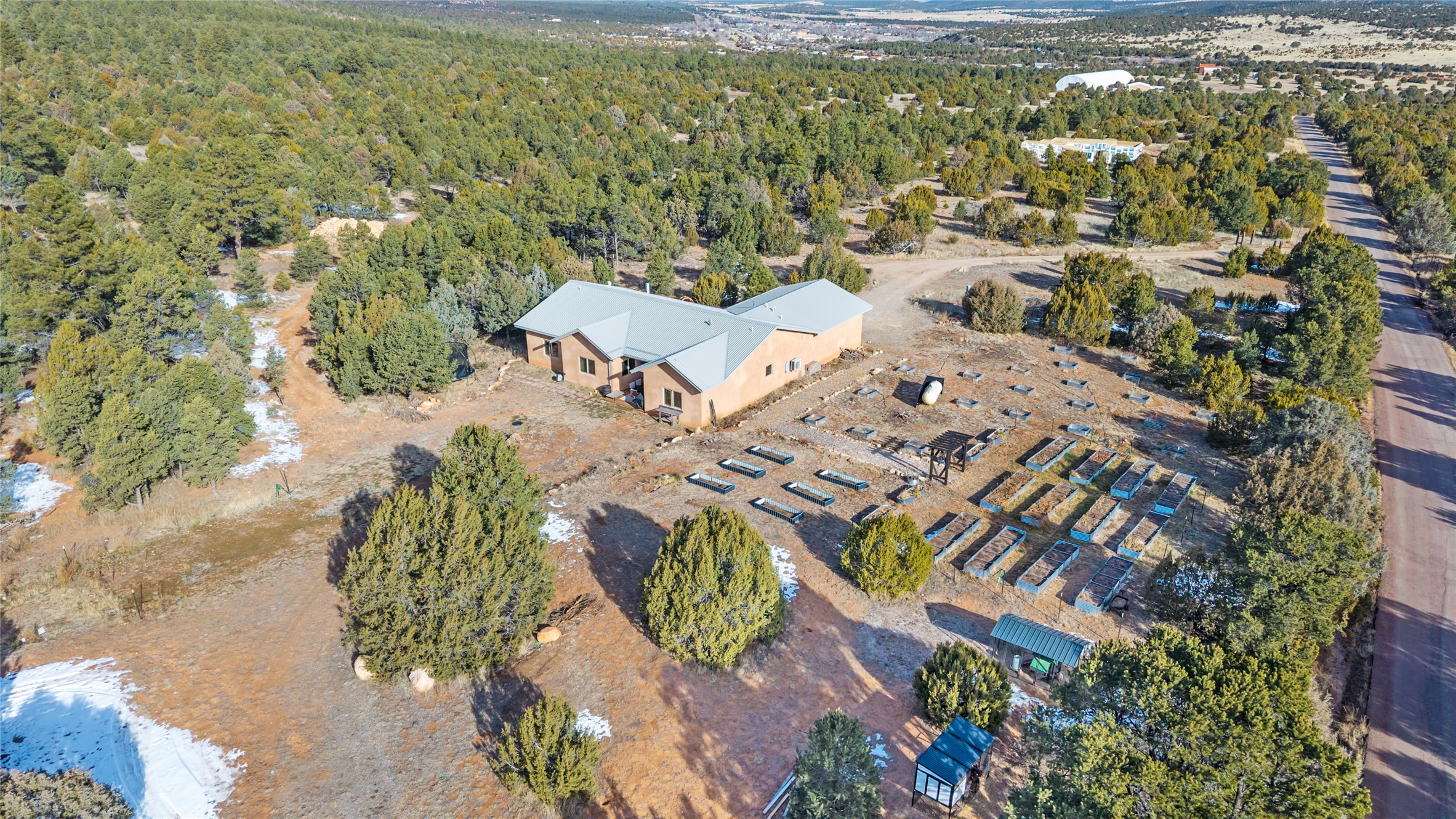 Freshly prepared for spring, this well-maintained property has been thoughtfully refreshed and is move-in ready. Recent updates include fresh interior paint, a newly installed septic system (March 2026) with a two-year warranty, deep-cleaned carpets, cleared personal property, and spruced raised garden beds. The sellers have recently moved out and are presenting a timely opportunity for the next owner. Located at the base of Rowe Mesa, this ranch-style home sits on approximately 3.7 acres of mostly level, usable land, offering expansive skies, mountain views, and a sense of rural privacy--all within an approximate 30-minute drive to Santa Fe. Built in 2021, the custom home features a modern ranch aesthetic with a pitched propanel roof, stucco exterior, and natural finishes throughout. The open-concept living and kitchen area includes island seating, a pantry, and access to the attached two-car garage. Interior details include brick flooring, wood cabinetry, subway tile accents, and wood-planked ceilings. The home offers three bedrooms and two bathrooms, providing flexible living options. Radiant in-floor heating and mini-split systems support year-round comfort. Exterior features include mature fruit trees and established raised garden beds. The property borders public lands associated with the Santa Fe National Forest, offering nearby access to outdoor recreation. This property presents a rare combination of newer construction, usable acreage, and a beautiful high-desert setting.