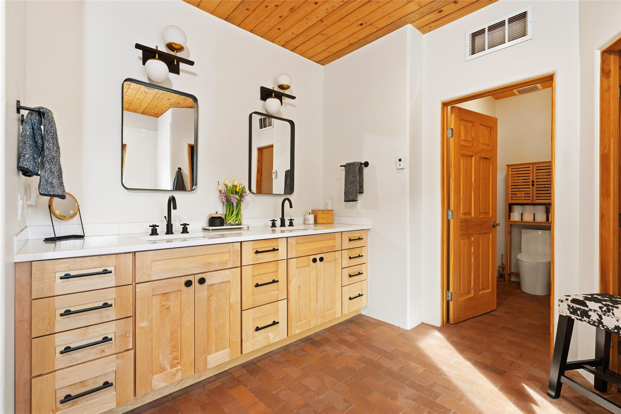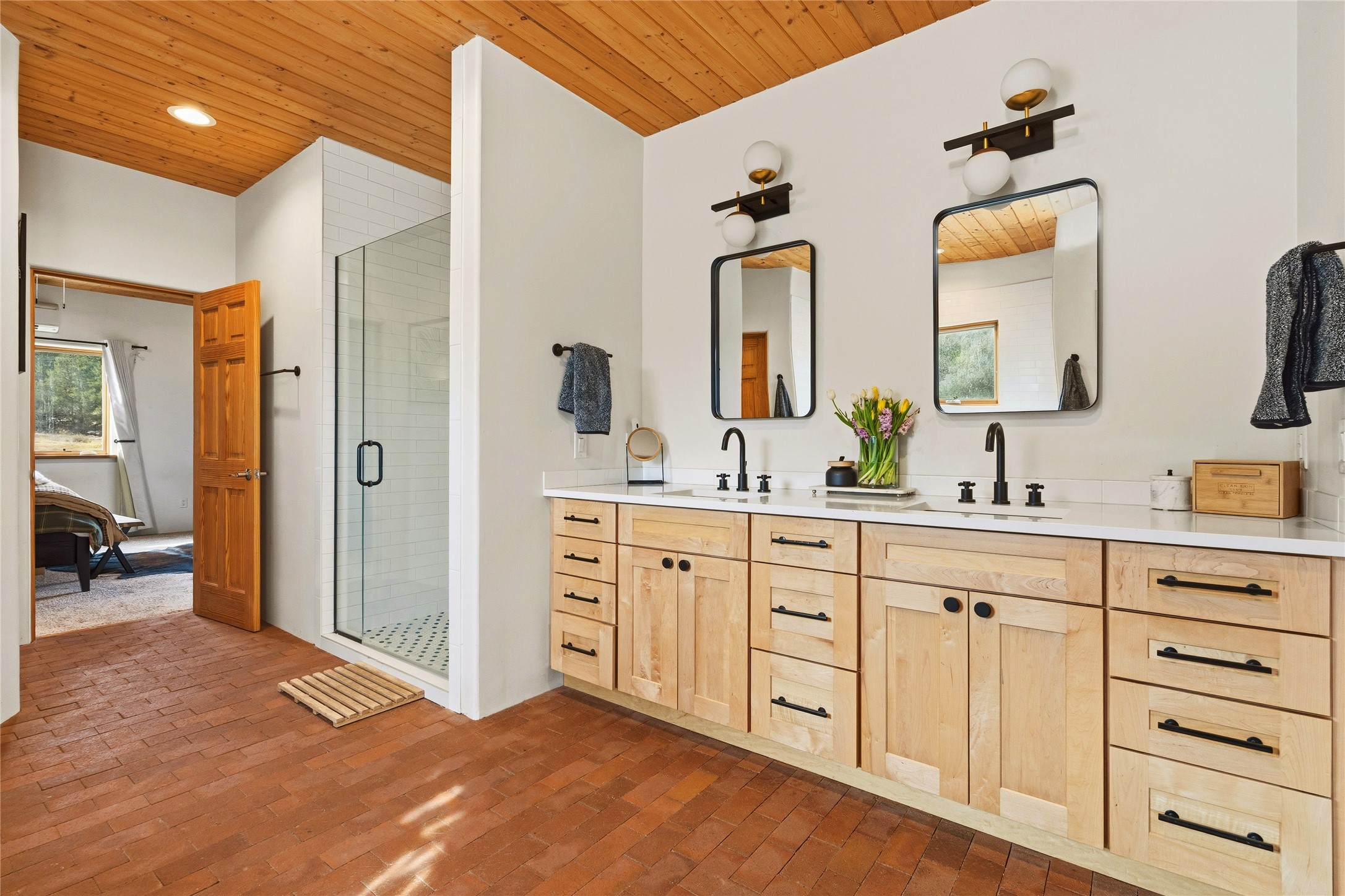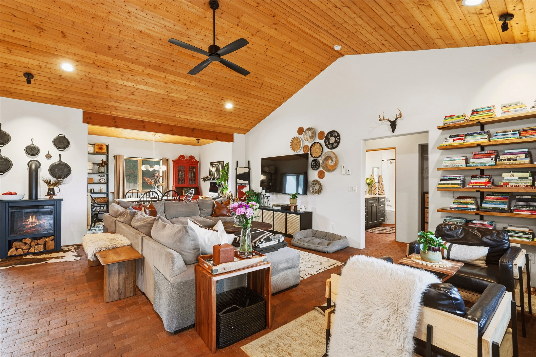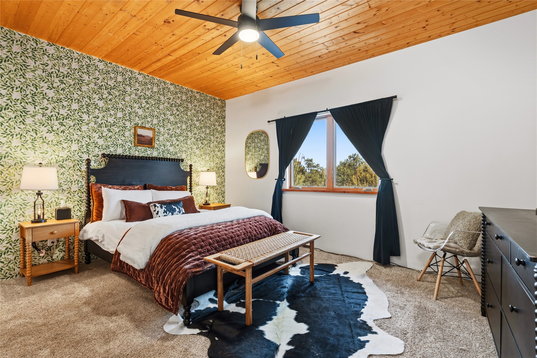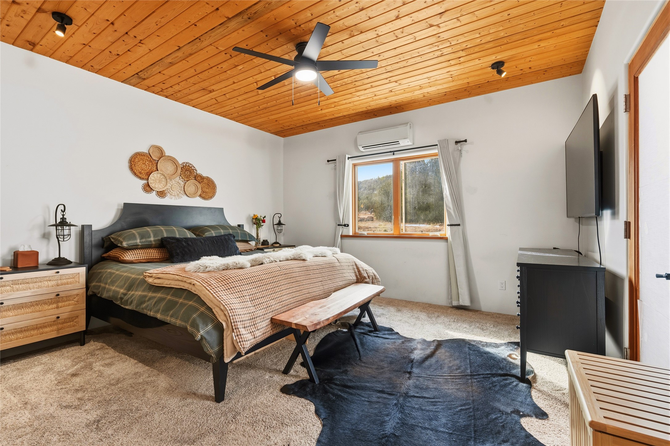 Freshly prepared for spring, this well-maintained property has been thoughtfully refreshed and is move-in ready. Recent updates include fresh interior paint, a newly installed septic system (March 2026) with a two-year warranty, deep-cleaned carpets, cleared personal property, and spruced raised garden beds. The sellers have recently moved out and are presenting a timely opportunity for the next owner. Located at the base of Rowe Mesa, this ranch-style home sits on approximately 3.7 acres of mostly level, usable land, offering expansive skies, mountain views, and a sense of rural privacy--all within an approximate 30-minute drive to Santa Fe. Built in 2021, the custom home features a modern ranch aesthetic with a pitched propanel roof, stucco exterior, and natural finishes throughout. The open-concept living and kitchen area includes island seating, a pantry, and access to the attached two-car garage. Interior details include brick flooring, wood cabinetry, subway tile accents, and wood-planked ceilings. The home offers three bedrooms and two bathrooms, providing flexible living options. Radiant in-floor heating and mini-split systems support year-round comfort. Exterior features include mature fruit trees and established raised garden beds. The property borders public lands associated with the Santa Fe National Forest, offering nearby access to outdoor recreation. This property presents a rare combination of newer construction, usable acreage, and a beautiful high-desert setting.
