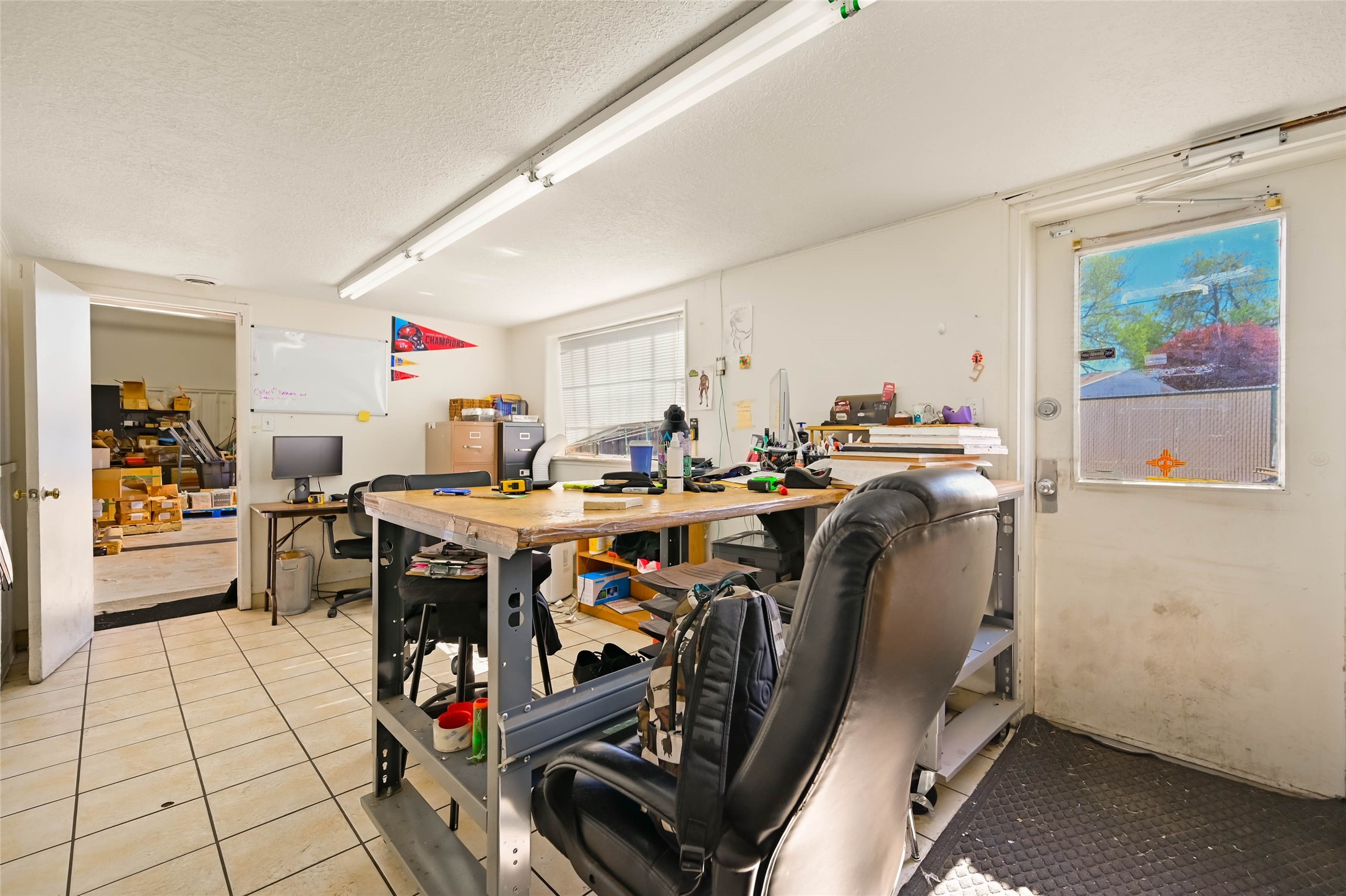Industrial investment opportunity in the center of Santa Fe. This property features three 12-ft roll-up doors and one 10-ft roll-up door, all installed within the last few years. There is a small reception/office area in the front, along with a breakroom and restroom. The property includes an 18' x 15' upstairs mezzanine storage space. The warehouse has water and gas-hanging heaters. Plumbing, electrical, asphalt, and exterior paint have all been updated in recent years. The entire 0.20-acre lot is fenced with privacy slats and includes two locking gates. The property is currently leased to a tenant on a three-year term with annual increases. Financials are available upon request through the Seller's Broker. Do not disturb tenant. Showings by appointment only.