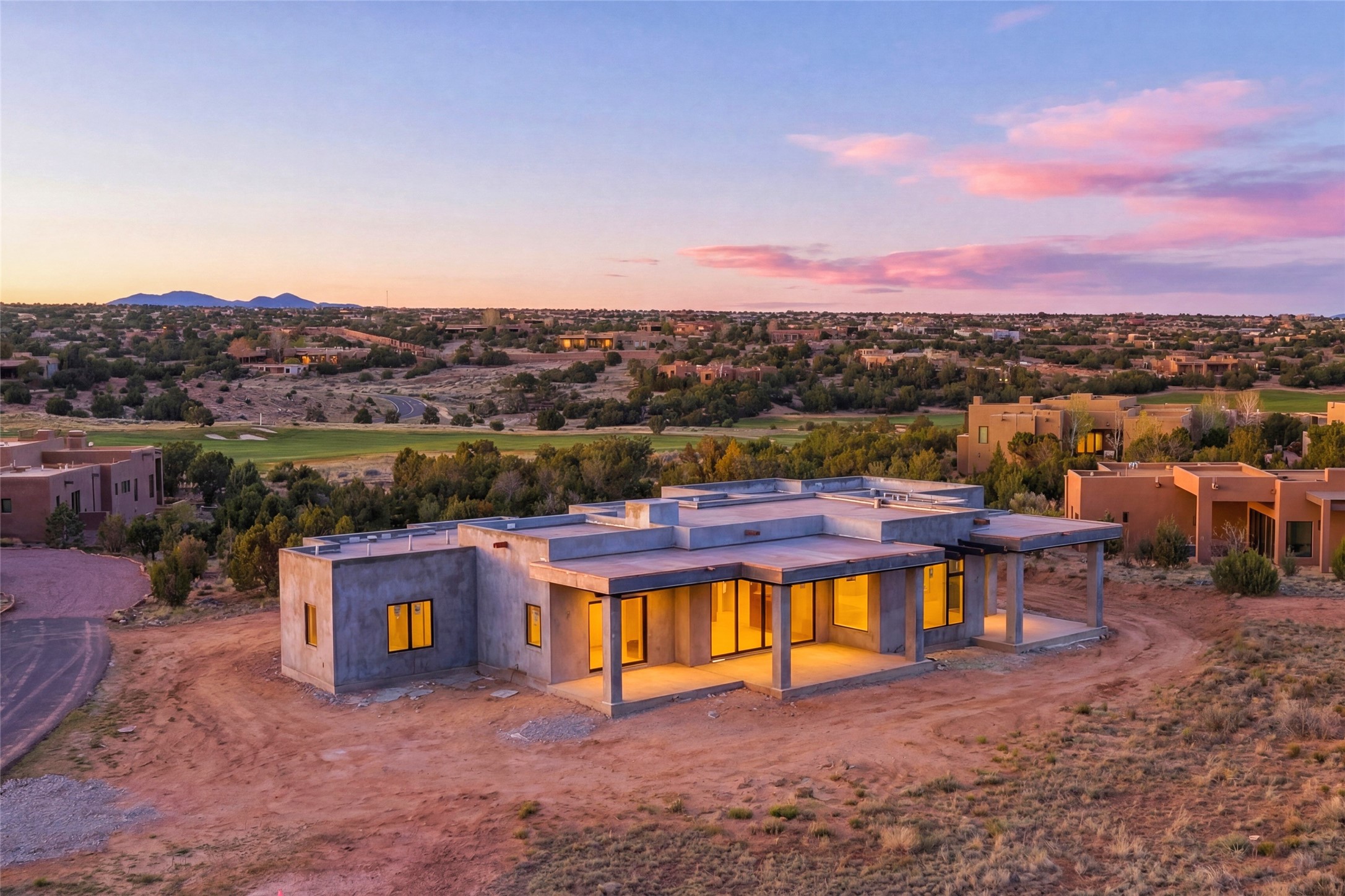 Experience refined soft contemporary living in the coveted Park Estates of Las Campanas, where clean lines meet warm, organic textures and timeless design. Currently under construction, this exceptional new build by Clemens Custom Homes offers a rare opportunity to own a thoughtfully crafted home with sweeping Jemez Mountain views and a seamless connection to the surrounding landscape.This 2,776 square foot, 4-bedroom, 4-bath residence is designed for both comfort and sophistication, featuring an open-concept floor plan filled with natural light, high ceilings, and expansive glass that frames the stunning western vistas. The chef's kitchen flows effortlessly into spacious living and dining areas, ideal for entertaining. A luxurious primary suite and well-appointed guest accommodations provide privacy and comfort, while radiant floor heating and central refrigerated air ensure year-round comfort.Outdoor living is equally compelling, with generous portals and entertaining areas perfect for enjoying sunsets over the Jemez range. A 3-car garage offers ample space for vehicles and storage. A rare opportunity to personalize a brand-new home in one of Santa Fe's most sought-after neighborhoods. There is till time to select your finishes for an August 2026 completion date.Located within the prestigious Las Campanas community, residents enjoy privacy, security, and access to world-class amenities.Memberships to the Club at Las Campanas are available for purchase and upon approval. The Club at Las Campanas offers two Jack Nicklaus Signature Golf Courses, Driving Range, Spa & Fitness Center with indoor and outdoor pools, tennis and pickleball courts, a world class Equestrian Center, Hacienda Club House and Log Cabin Restaurant.
