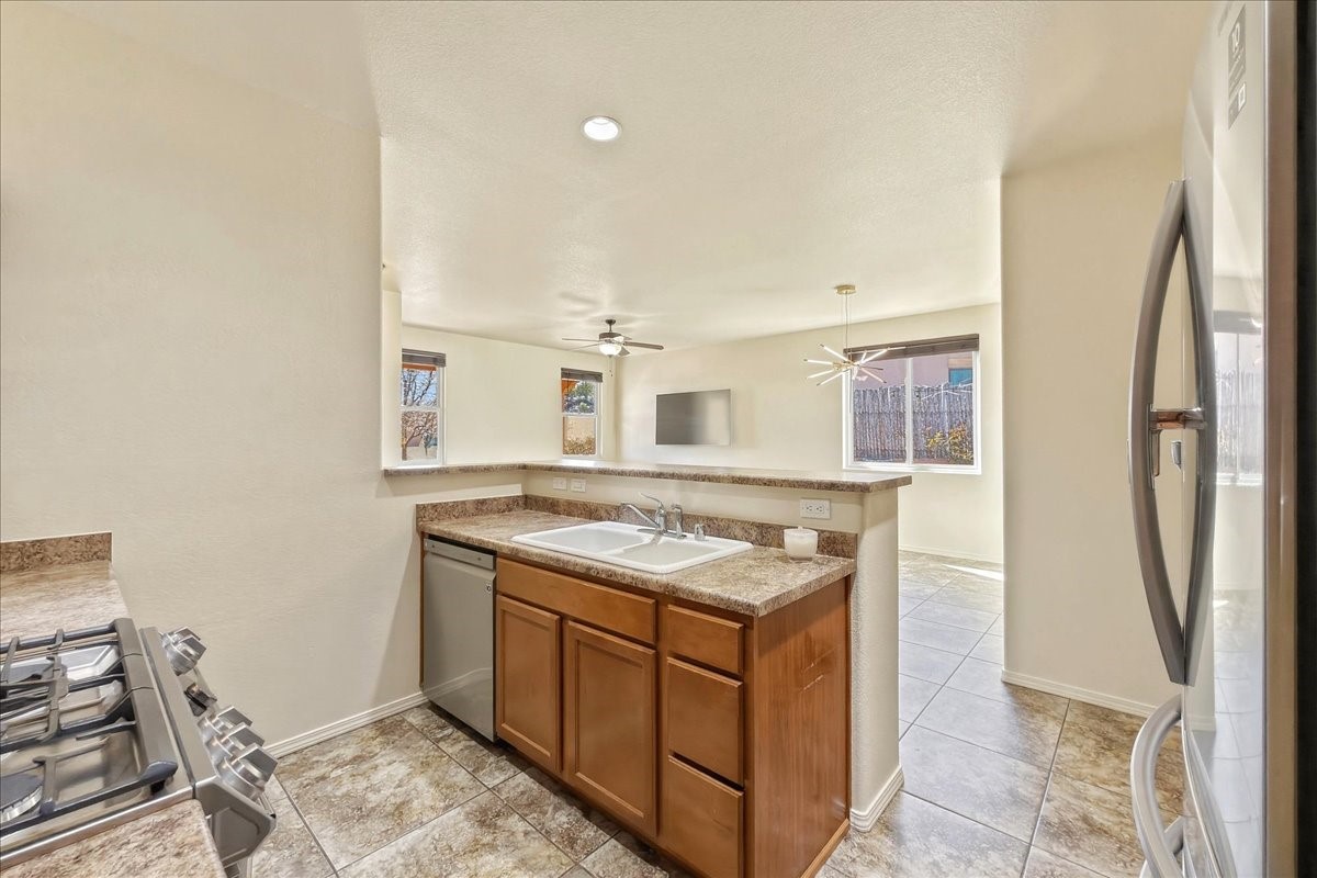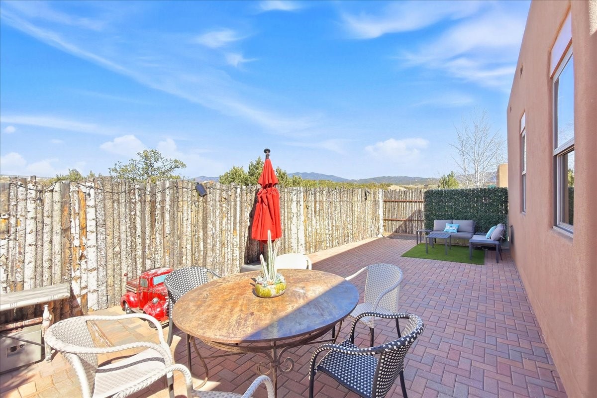 Nestled in the foothills in the highly desirable Las Estrellas neighborhood on Santa Fe's Northside, this thoughtfully designed single-level home combines modern comfort, amazing mountain views, and a prime location just minutes from the Plaza and the Santa Fe Opera with easy access to 599 and Los Alamos. This amazing property has an abundance of outdoor space with beautiful landscaping offering the perfect setting to relax, take in stunning views of the Sangre De Cristo Mountains, and entertain your guests. The large yard includes a nice portal sitting area along with turf and a playhouse/storage. Easy access to nearby walking trails. Open, inviting, light and bright floorplan flows perfectly. Beautifully maintained living space, the home exudes warmth and functionality. Has radiant floor heat. Come see for yourself why this home is one of the great values available in today's marketplace in Santa Fe!