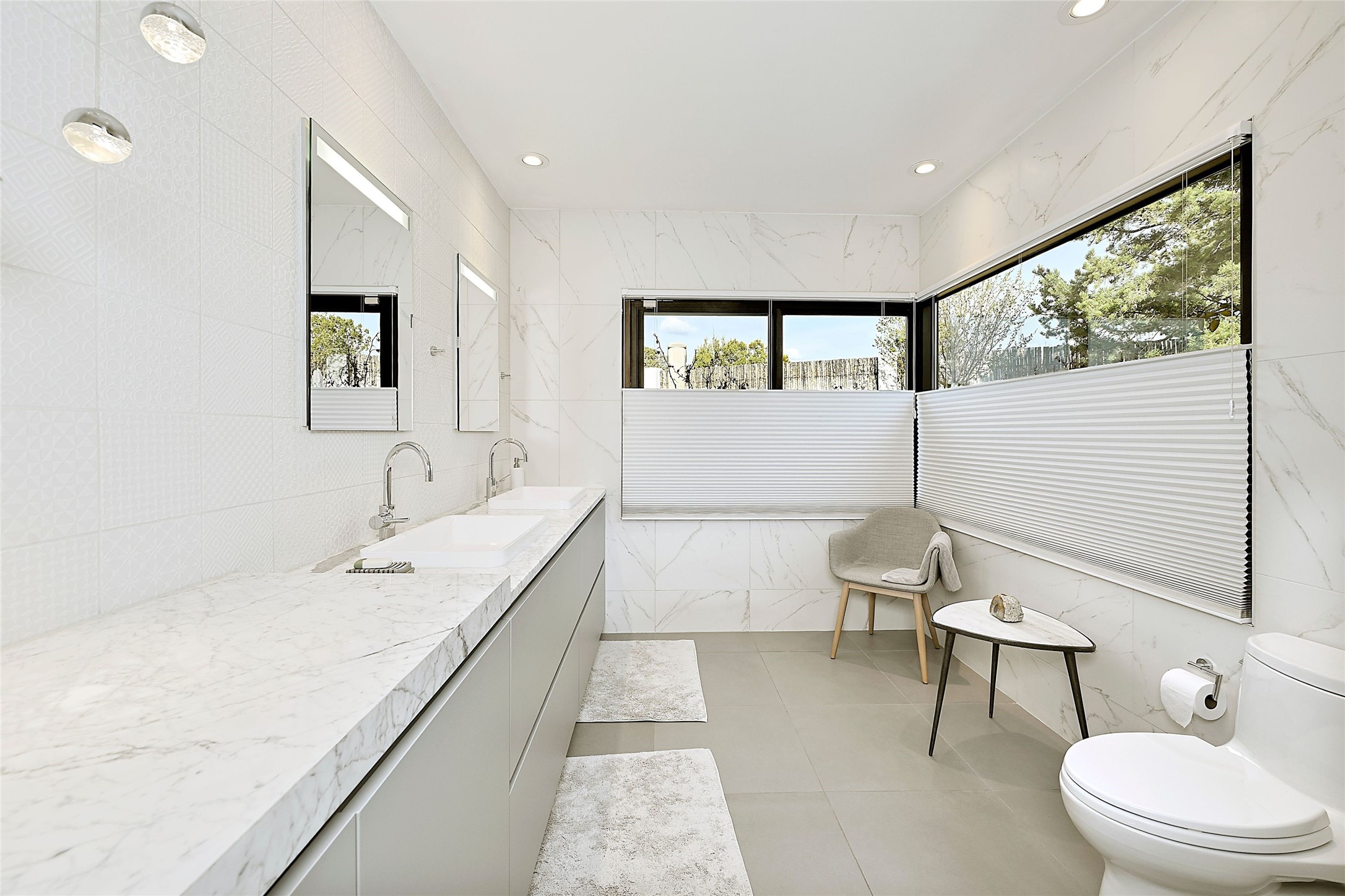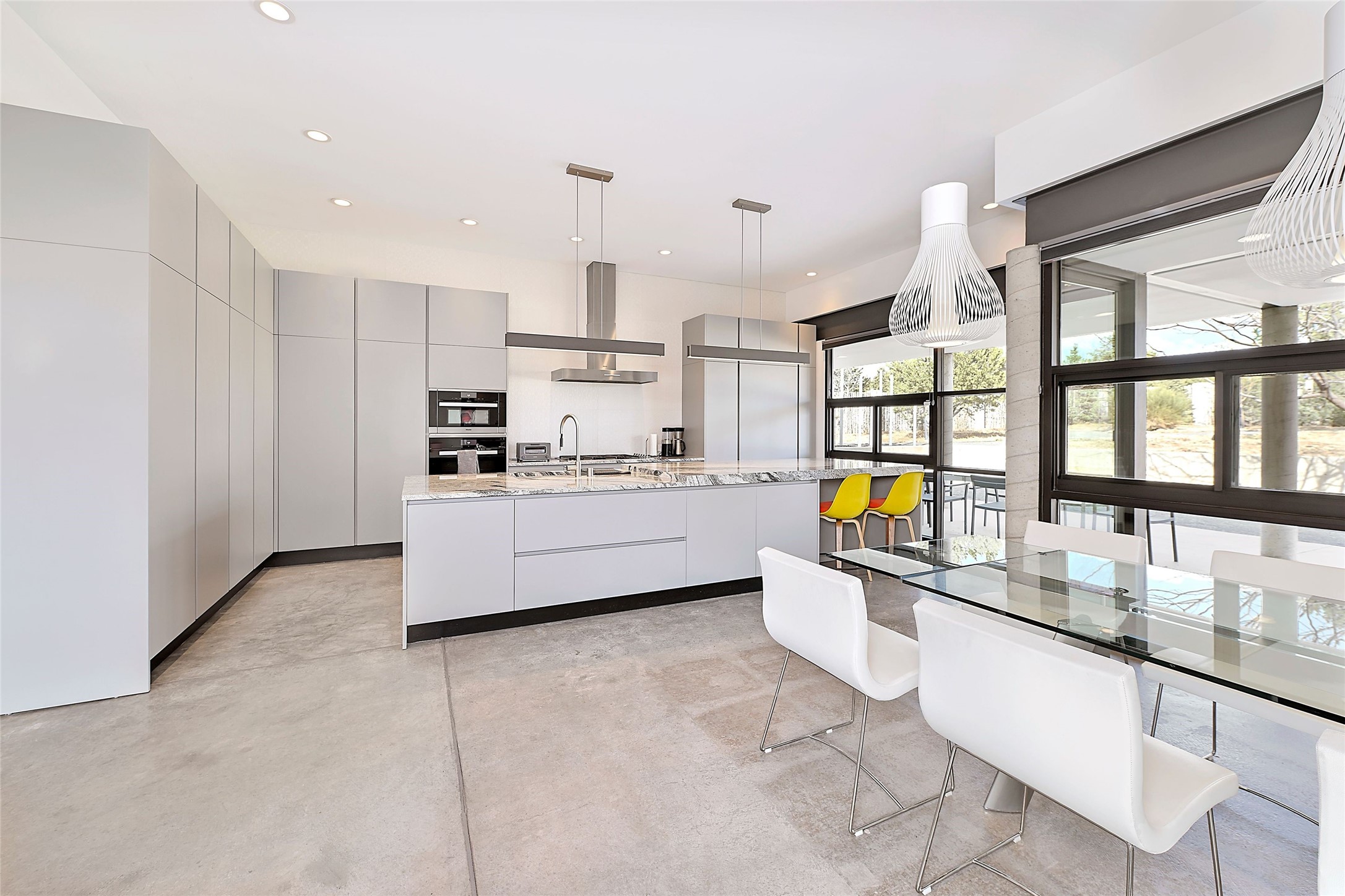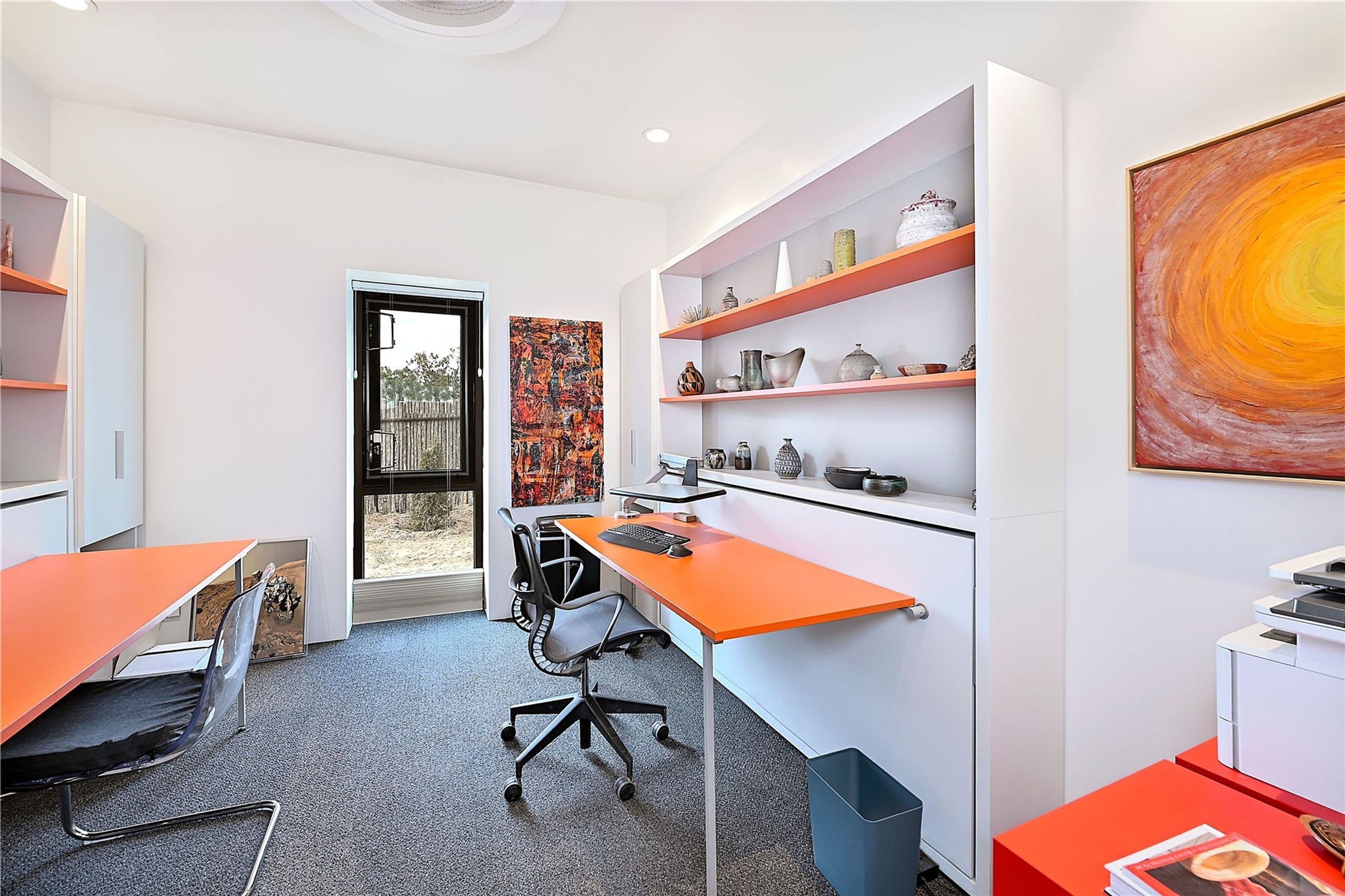 Wind your way along lovely Tano Rd. to this fabulous creatively contemporary estate. The original part of the home was designed by award winning architect, Jeff Harner and built in 2000. In 2018, an addition paid homage to his design, more than doubling the size of the home, but keeping a continuity to the conceptual contemporary creation. Natural light from windows integrate into every part of the home melding its beautifully composed and landscaped exteriors with its exceptional interior spaces. In addition to its pure design aesthetic of sleek and sophisticated living, great attention went into making the home an organizational dream, with ability to store and organize within drawers, cabinetry and closets. This unparalleled home provides an exquisite place to entertain and enjoy life. Quality materials, cabinetry, appliances, fixtures and finishes create one of the most strikingly designed homes in all of Santa Fe.The home has a crisp, light and enchanting feel, with detailed perfection in both design and execution. The rooms are Spacious and versatile. Elegant landscaping and a private gated setting assure views and tranquility. A 2 bedroom guest house was added in 2023 and the adjacent 2.5 acre lot was purchased for added privacy. The lot is offered separately.