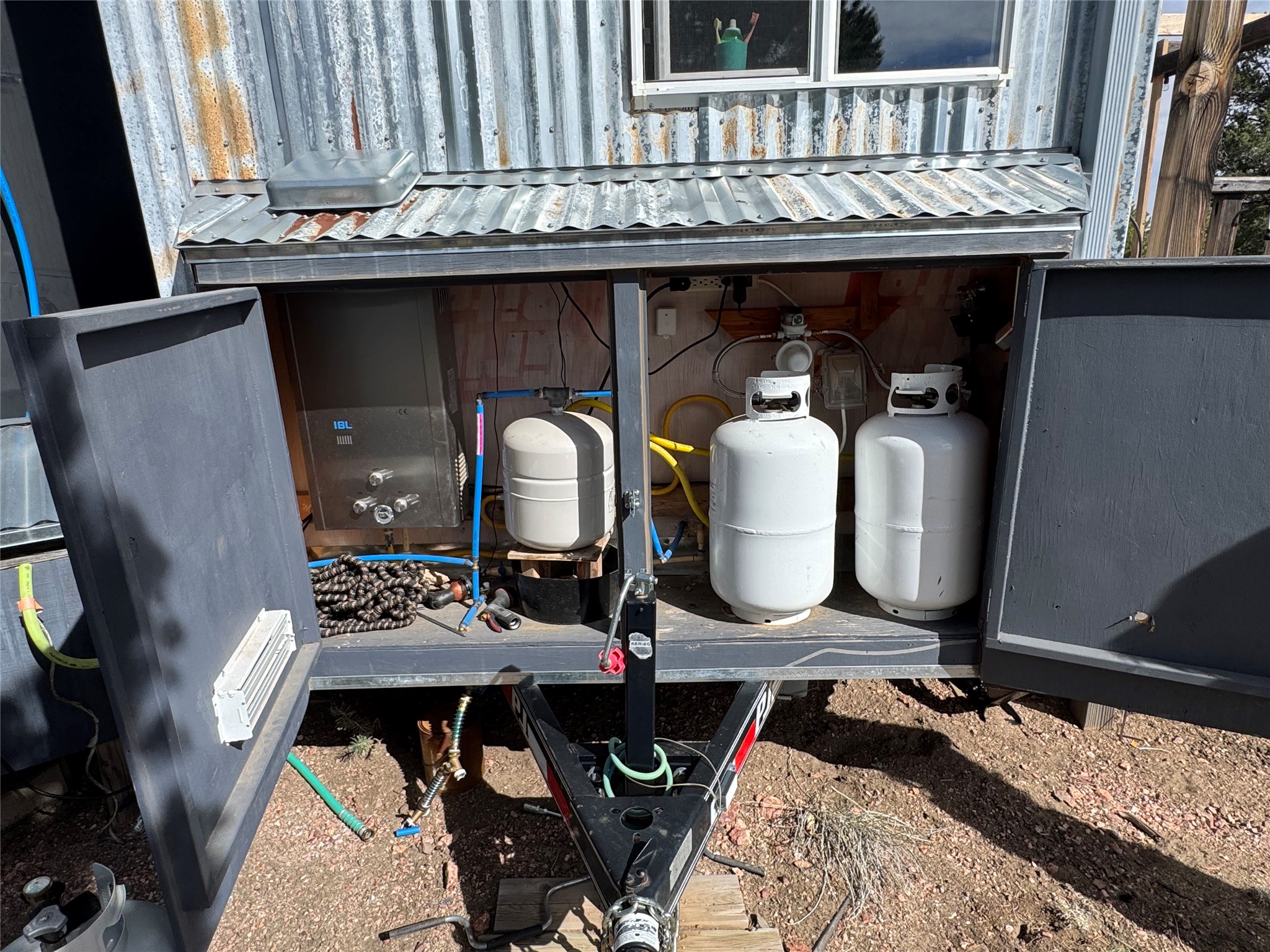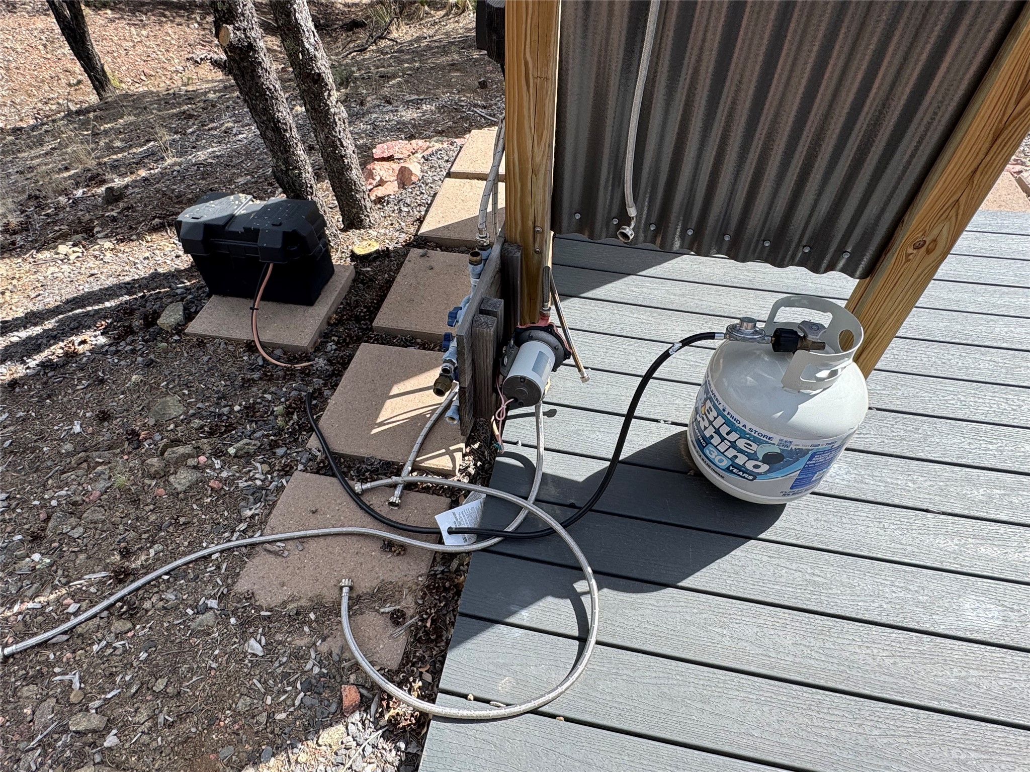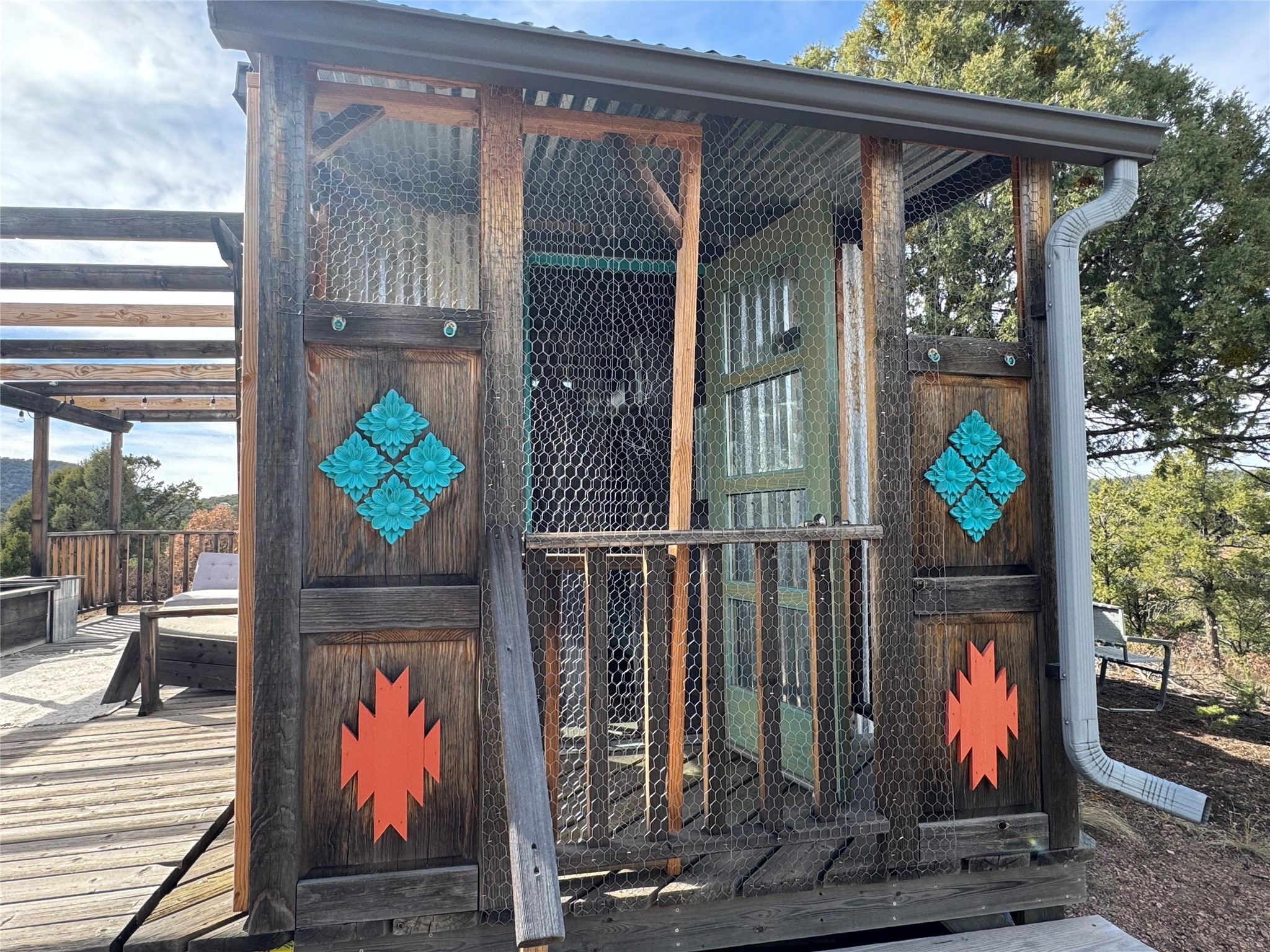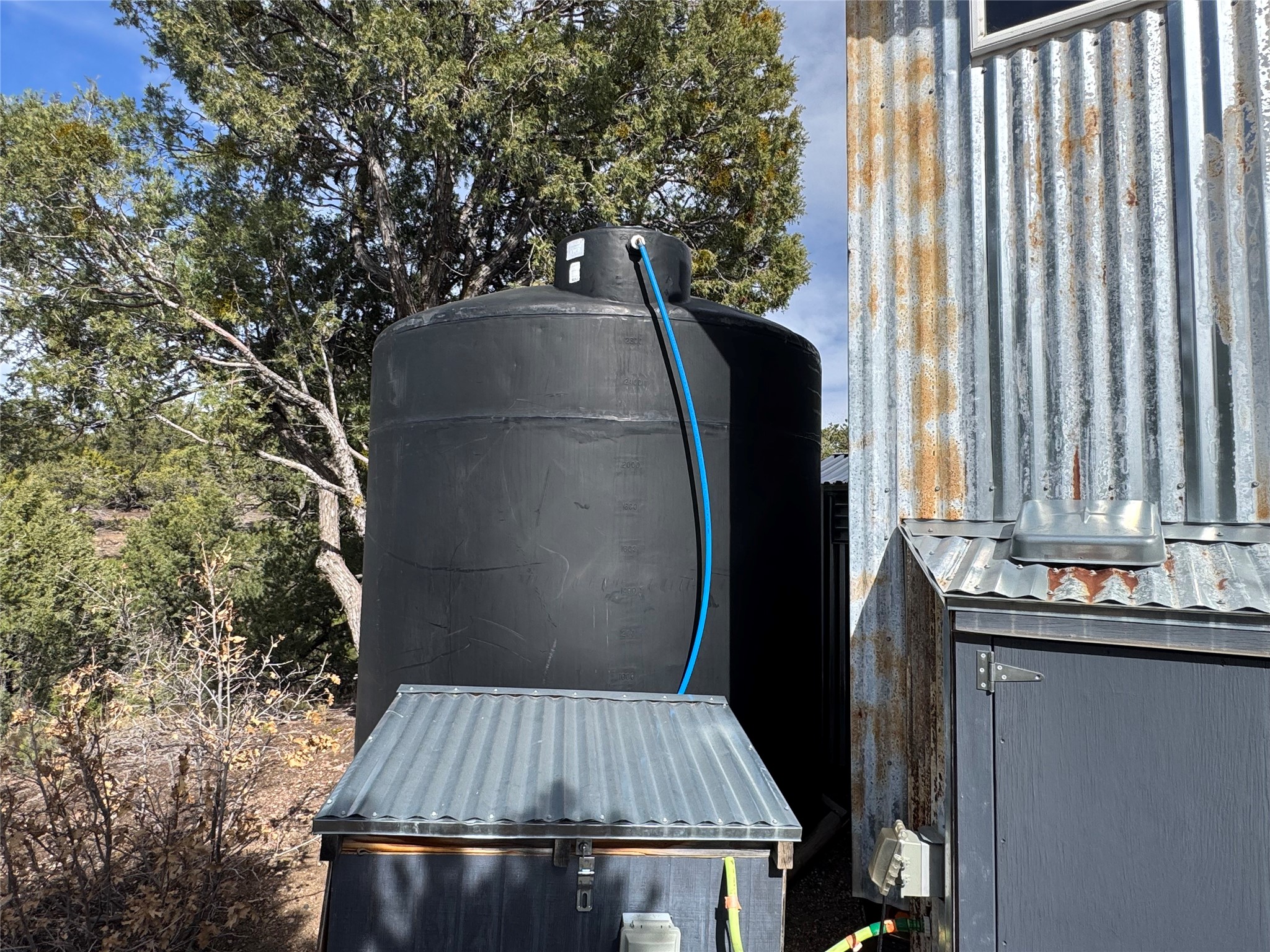Incredible view lot at a height of land ... private, quiet with fabulous starry night sky. Looking for your own personal retreat from the world and yet only 25 minutes from the plaza ... then look no further than this special 5 acres of land that also has an insulated tiny home with a functional kitchen, shower, living / dining area and a yummy sleeping loft. Live here while you build your dream home on multiple flat building sites. The 5 acres were professionally thinned for wildfire danger in 2019 by the Soil and Water Conservation District. There is a shared well with a well agreement and a road agreement. Electricity is roughed in with easy access to the tiny home. Covenants are in place to protect the beauty of the area. There is a bath / shower deck just below the tiny house with a galvanized soaking tub and shower powered by a solar panel. Extras include a gas powered generator, extra propane tanks, easy to use outhouse and a huge water holding tank. The deep smell of pine, views all around and the depth of privacy feels amazing to experience .... Come on up and take a look!