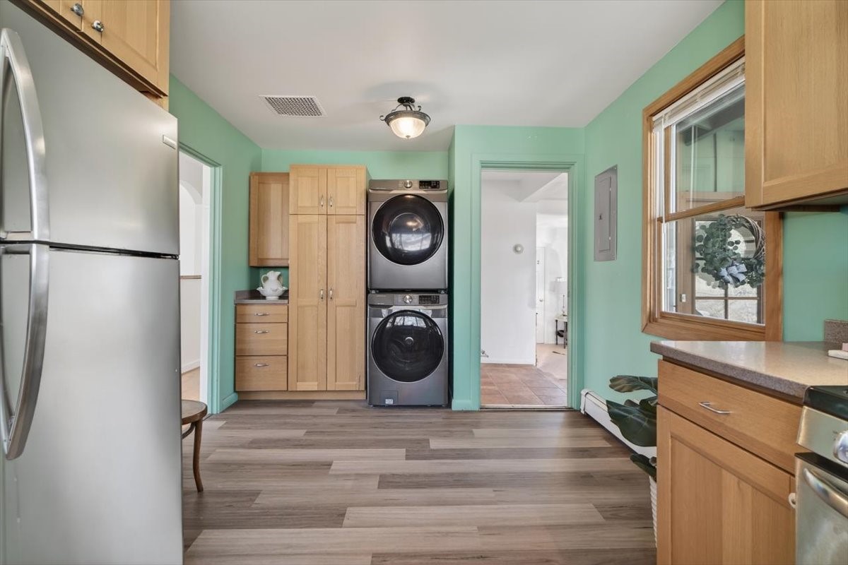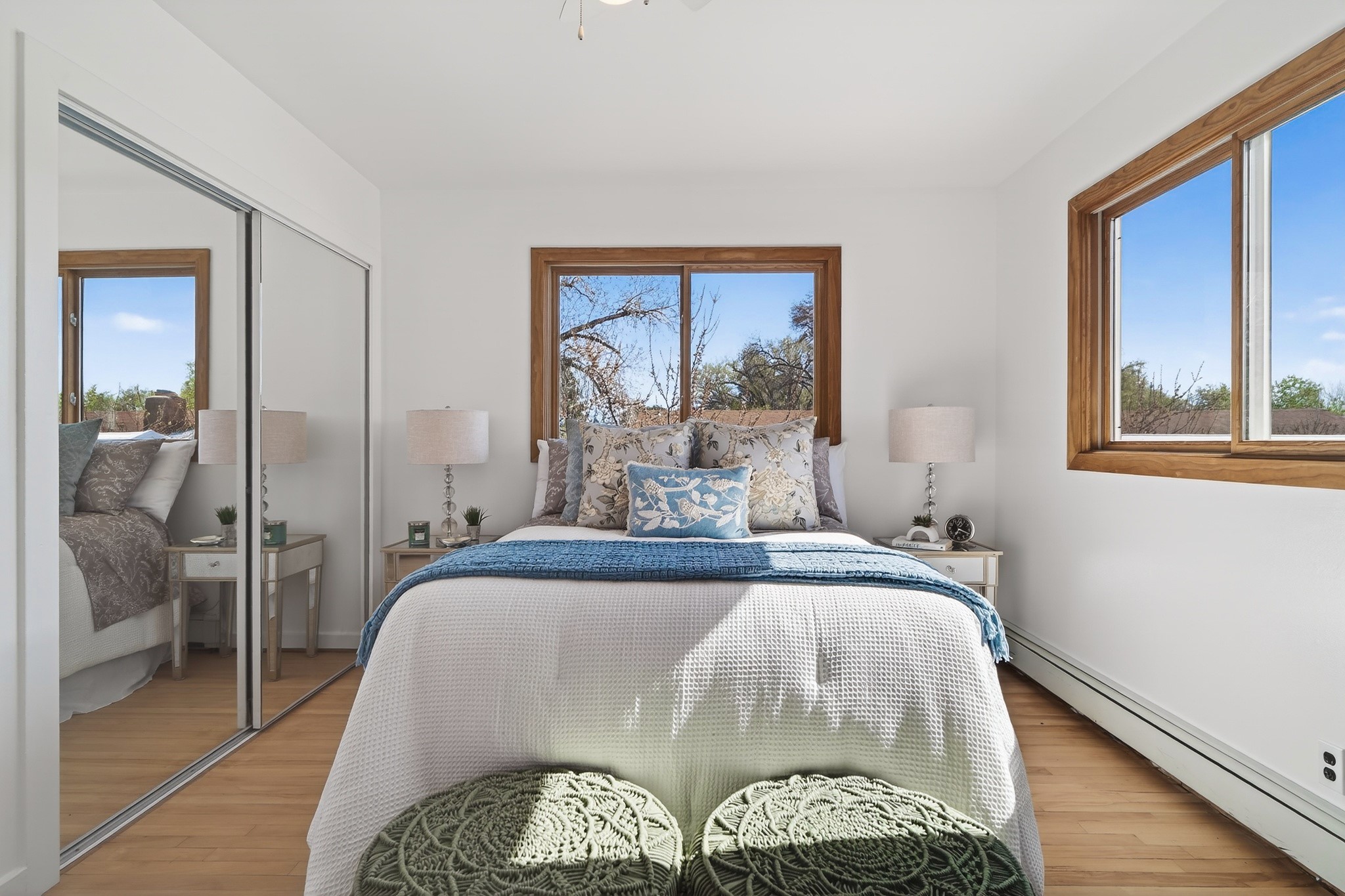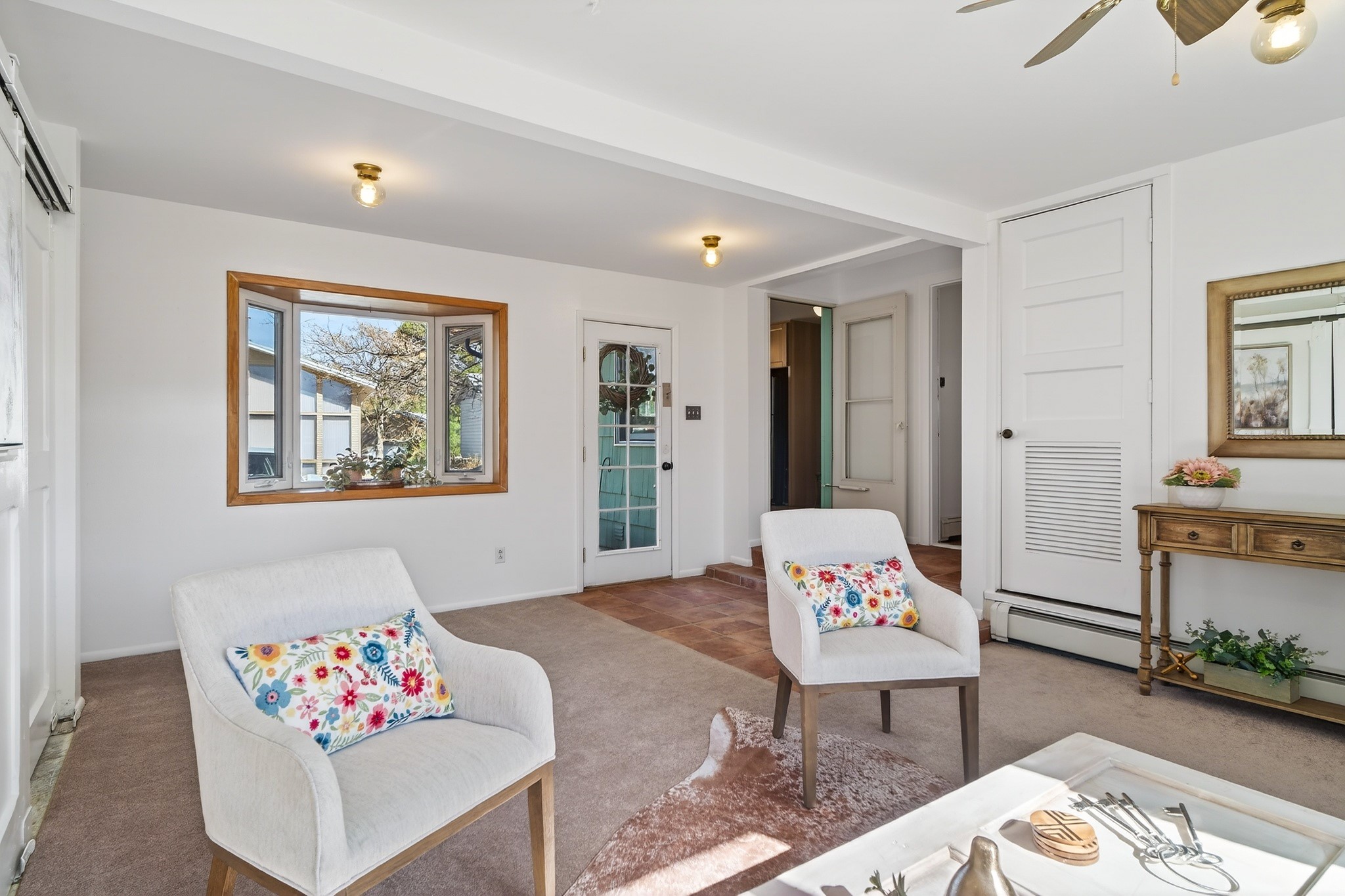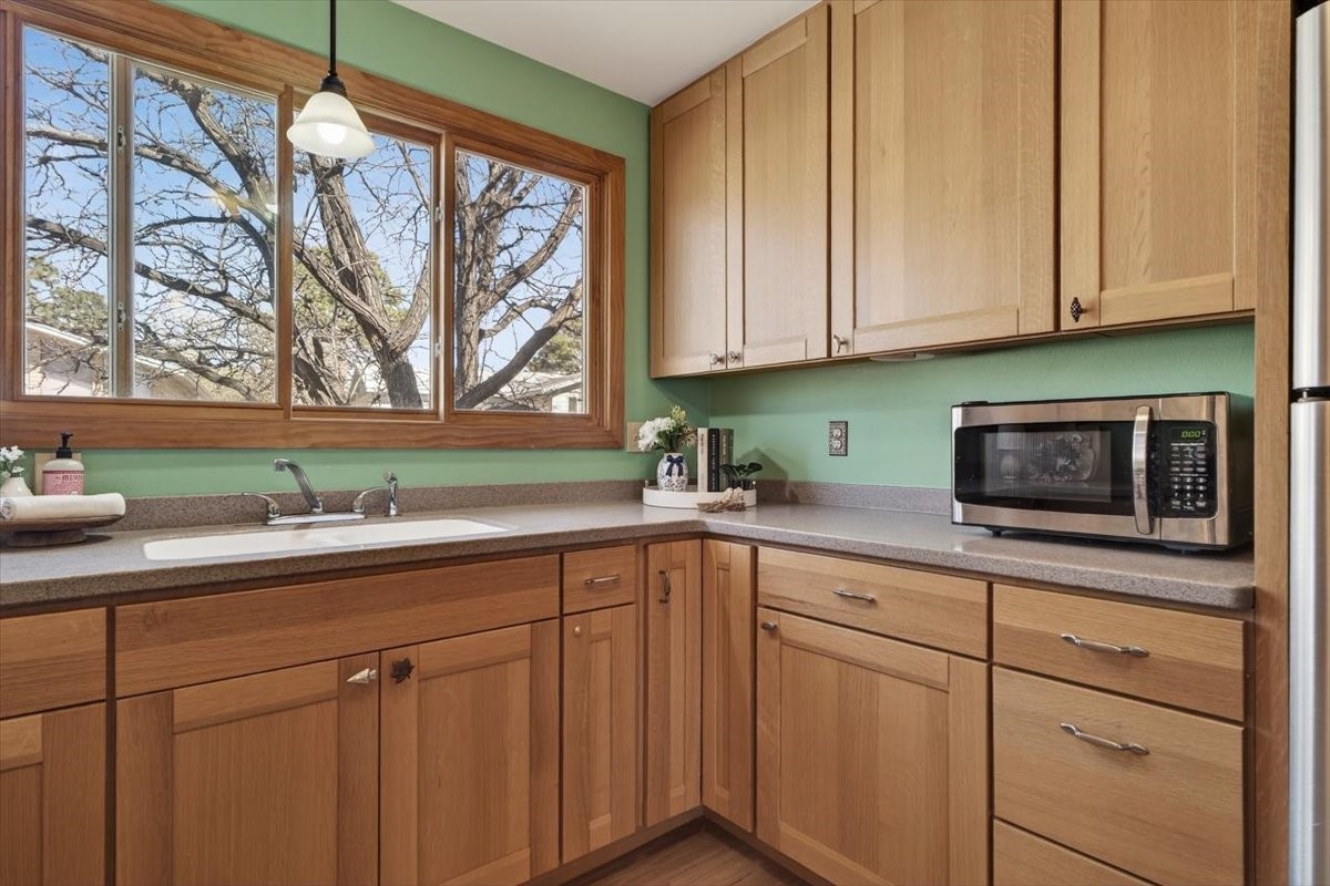 Almost perfect and impeccably maintained, this charming home shines with thoughtful updates and minimal home inspection findings. It'll give you peace of mind and true move-in readiness. Step inside to a warm, inviting living space, thoughtfully converted from the original carport, creating a comfortable and welcoming heart of the home. The original storage structure remains, adding both character and practical storage. Just off this living room, a heated studio offers incredible flexibility, ideal for hobbies, a home office, a game room, or even a potential third bedroom. The fully remodeled kitchen features smart finishes, beautiful cabinetry, and luxury vinyl flooring that blends style and function with ease. Throughout the home, you'll find bright wood floors and classic wood-clad windows that bring in a timeless aesthetic. The bathroom has been tastefully updated while preserving its original charm. Two bright bedrooms are filled with natural light, creating cheerful and restful spaces. Outside, the large yard is perfect for gatherings, gardening, or simply enjoying the outdoors, all set on a desirable corner lot. Additional features include a durable metal roof, a 2025 on-demand hot water heater, and active solar panels to help offset electricity costs and enhance efficiency. Conveniently located near downtown Los Alamos, you'll enjoy quick access to restaurants, parks, and scenic hiking trails. This property truly feels like perfection, being comfortable, versatile, and ready to be enjoyed. Offers will be reviewed on Wednesday, April 1, so schedule your private showing today.