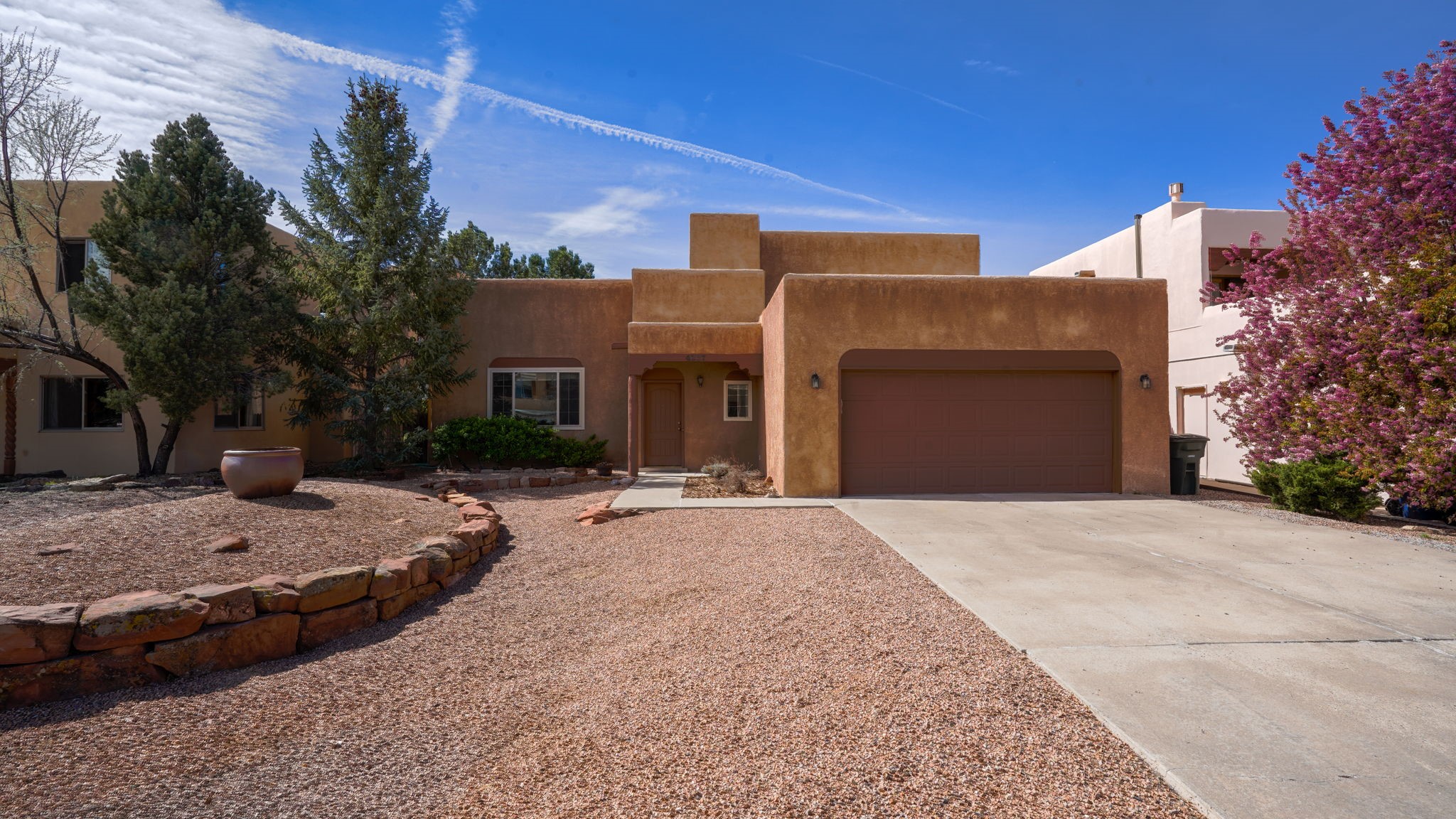 This charming two-story home features 3 bedrooms and 2 bathrooms, ideally situated backing to a peaceful greenbelt that offers added privacy and scenic views. Inside, you'll find a cozy electric fireplace and beautiful Southwest-style accent windows that fill the home with natural light and character.The kitchen is equipped with a Bosch dishwasher, combining style and functionality for everyday living.Additional upgrades include a new garage door opener and a spacious 2-car garage. Designed for both comfort and sustainability, the property features an irrigation system, a 6x8 greenhouse, and dedicated garden beds--perfect for gardening enthusiasts. The front yard is fully xeriscaped for low maintenance and water efficiency.The roof was redone in 2008, providing added peace of mind. Located in a lovely, gated community, this home offers convenient access to Los Alamos and Albuquerque via Highway 599 and I-25.This home blends thoughtful upgrades, practical features, and a desirable location--making it a wonderful place to call home.