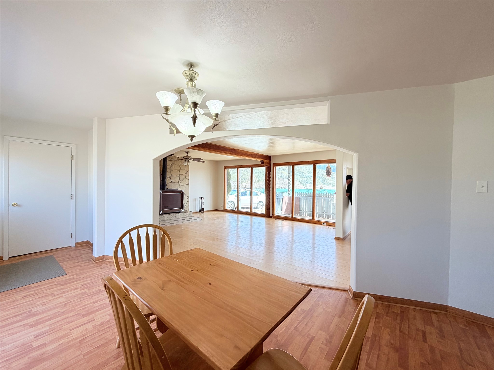 9 Castle Road is a charming residence nestled in the quiet Questa Valley, a quaint community which offers spacious mountain and pastoral views. Upon entering the property you will find that the driveway is nicely paved. Entering the home, you are greeted with an open floor plan and several south-east facing windows that bring in not only natural heat and natural light but expansive mountain views from the comfort of the living room. The home includes 3 bedrooms, 2 bathrooms a spacious living room and kitchen, great for day to day living or entertaining. On those cold mornings before heading out, or evenings when you are settling in after a long, tiring day, relax in the comfort of a cozy Ashely wood burning heater. Don't feel like making a fire, no problem. The home also offers a forced air furnace for instantaneous heating when needed. The home is approximately 1,400 square feet in size but also includes an extra large heated garage allowing for one to create additional space one might need or dream of. The home is conveniently connected to village water. Schedule your showing today to explore the potential this property has to offer.
