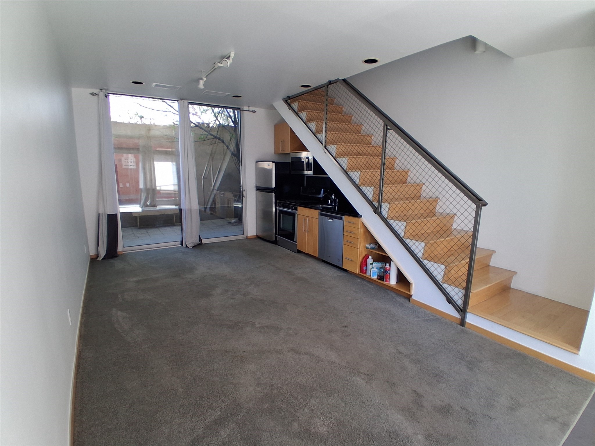 Lovely centrally-located contemporary loft. 2 story unit with kitchen on the ground floor and a 3/4 bathroom on the second floor. Very nice appliances, countertops, and tile. Wood flooring upstairs, tile and carpet downstairs. Extra large glass doors and windows let in plenty of light. Close to many of Santa Fe's best restaurants and shopping, as well as near the Santa Fe Rail-Trail and Rail Runner station.