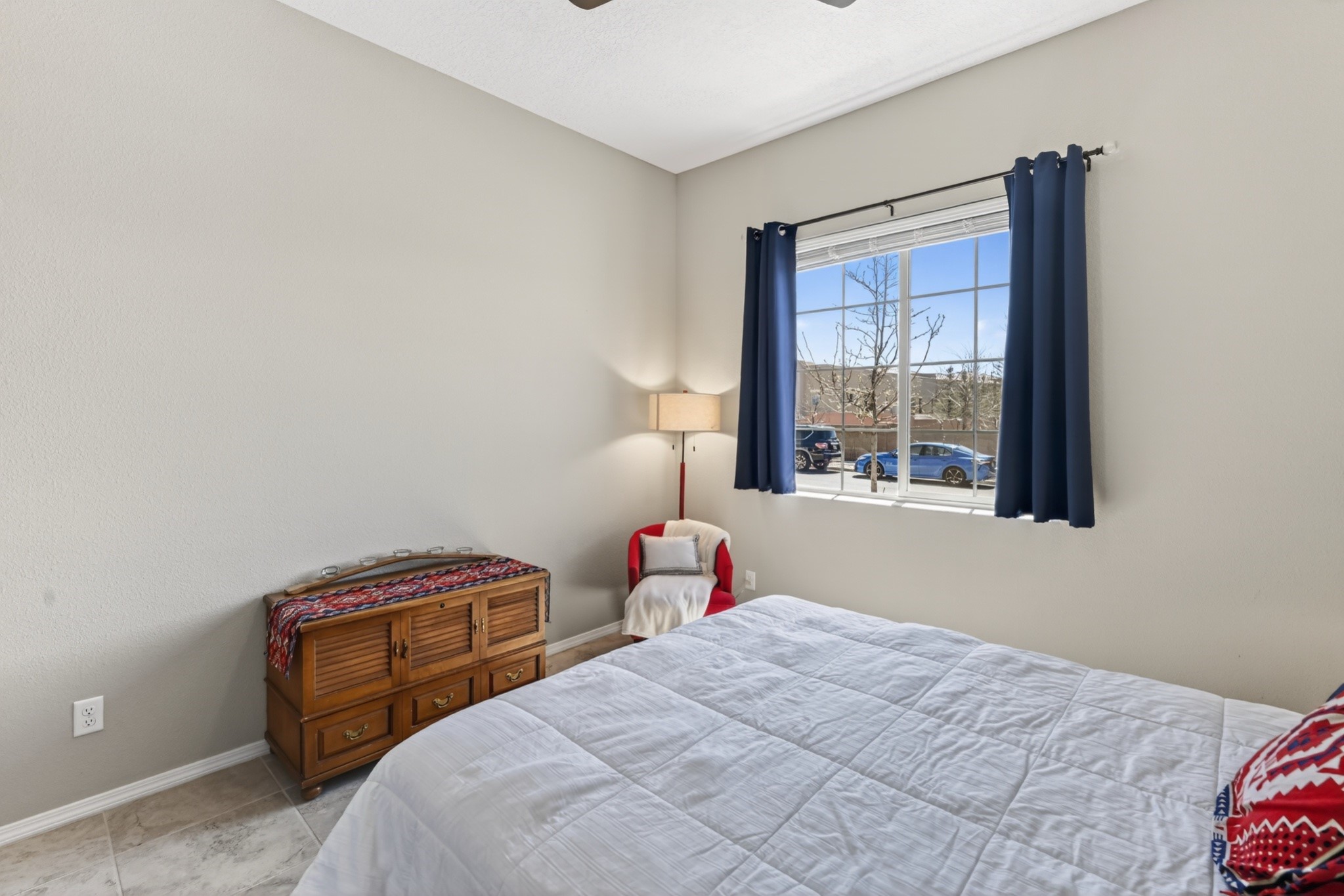 Welcome Home to 4144 Arboles Bonitos, Santa FeNestled in one of Santa Fe's most desirable neighborhoods, this stunning 3-bedroom, 2-bathroom home offers 2,303 square feet of thoughtfully designed living space with breathtaking mountain views that remind you daily why you chose the City Different.Quality craftsmanship shines throughout every detail. The kitchen features elegant decorator lighting, while a 5-foot lighted ceiling fan anchors the living room with style and comfort. Lighted ceiling fans grace each bedroom, and the primary suite boasts an impressive 7'x10'walk-in closet that rivals a boutique dressing room. Air conditioning keeps you comfortable through warm summer months.The garage is a dream workspace, outfitted with epoxy flooring, approximately 12'6" of New Age modular workbench and cabinetry, a 6'x6'slatwall storage system with hooks, and roughly 70 square feet of wall-mounted drop-down storage.Step outside into a professionally landscaped backyard featuring an approximately 30'x24'turf area -- perfect for entertaining, play, or simply relaxing under the New Mexico sky. Fruit-bearing peach and apple trees add charm and seasonal harvests, while solar landscape lighting illuminates both front and back yards beautifully after sunset.The surrounding community offers exceptional convenience. Monte del Sol Charter School sits just minutes away, Dancing Ground Park provides nearby recreation, and everyday essentials like Target Grocery and public transit are easily accessible along the Cerrillos corridor.This is more than a house -- it's a lifestyle waiting for you. Schedule your private showing today!