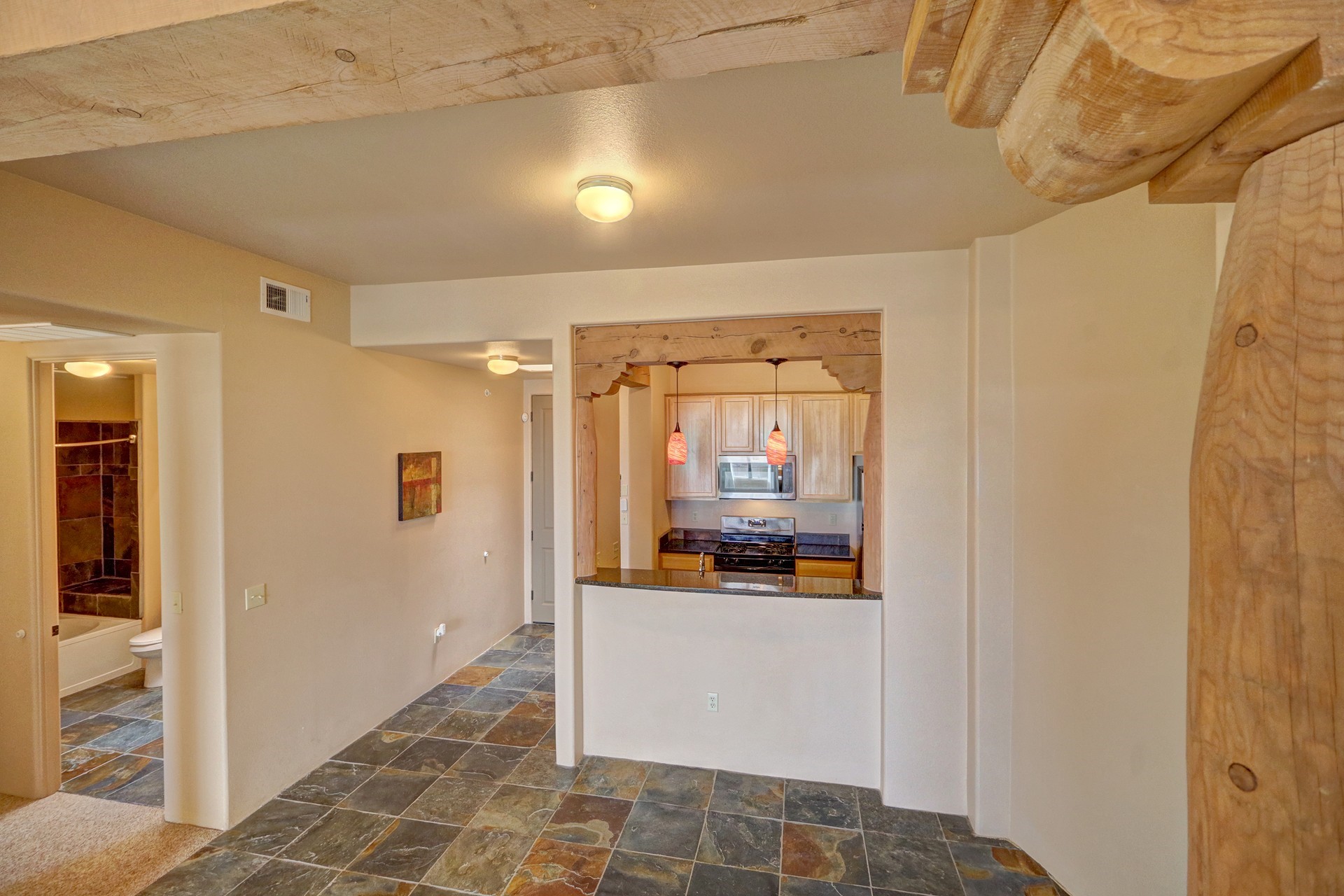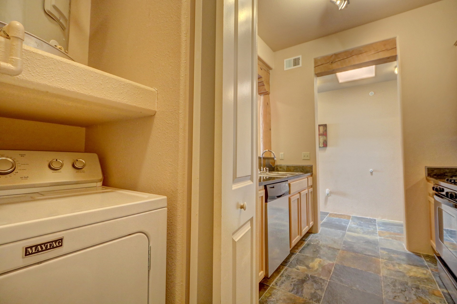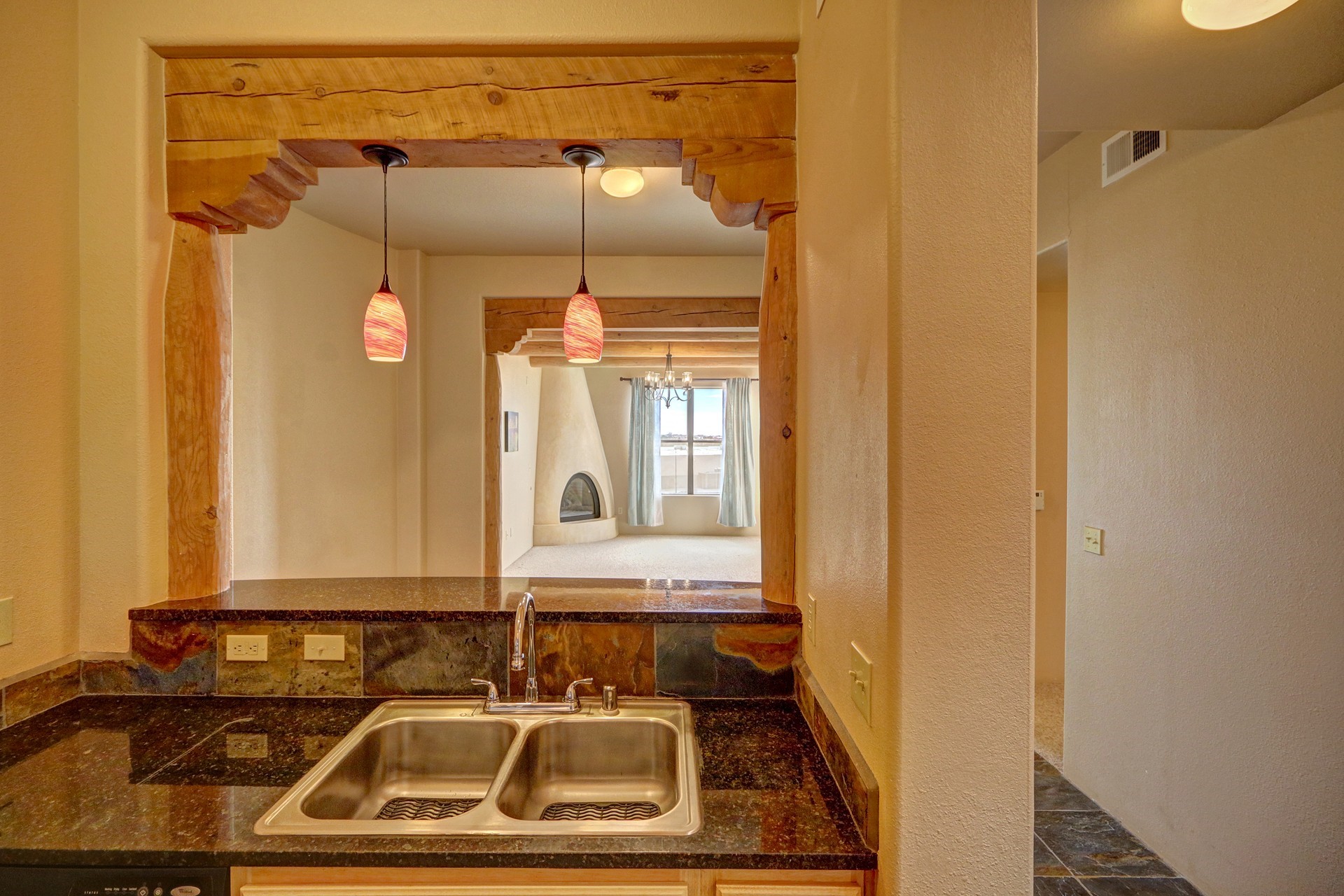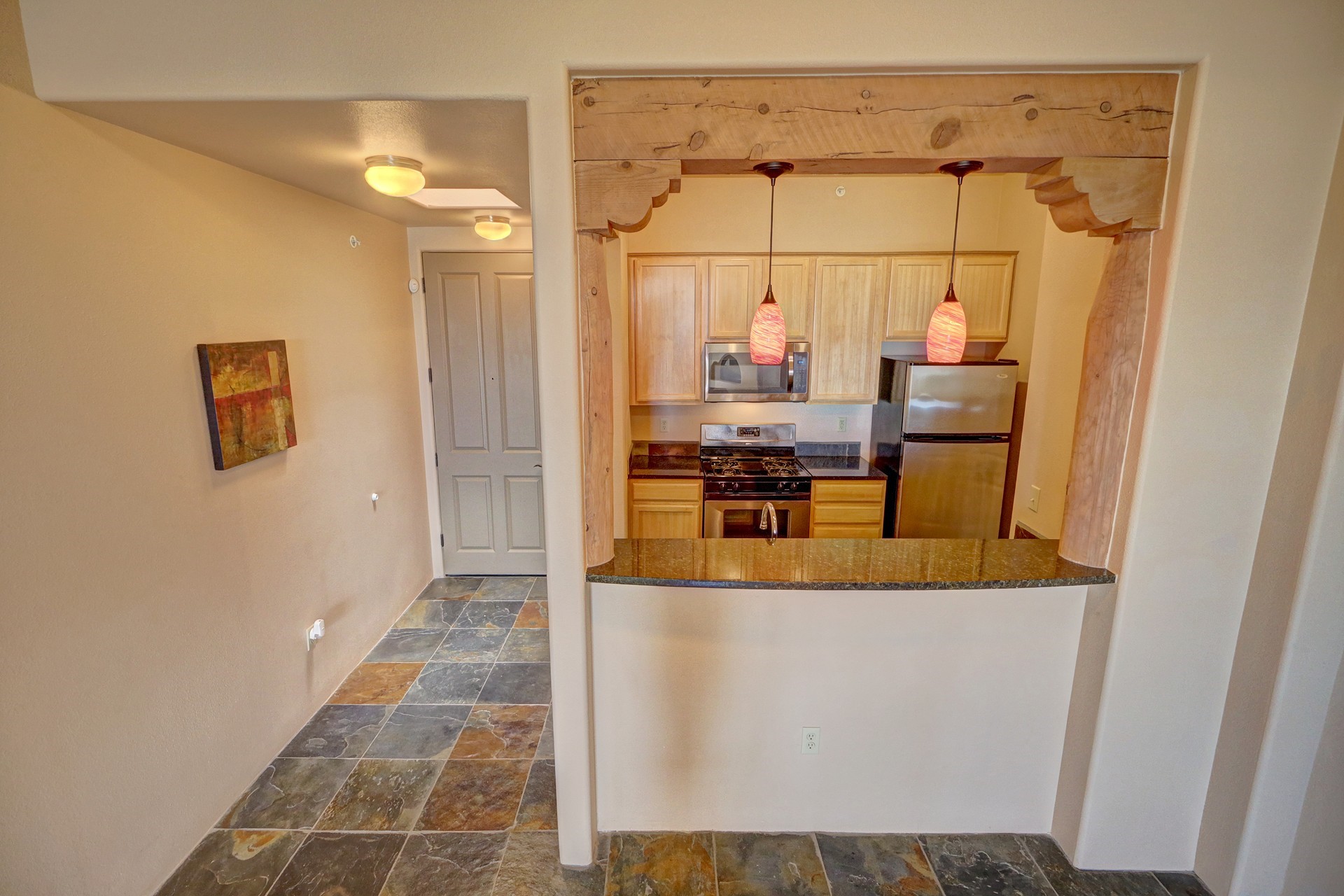 Welcome to this beautifully appointed 2-bedroom, 2-full-bath condo offering comfort, charm, and pleasant surroundings.This condo showcases traditional Southwest style. The living room features a striking kiva fireplace, adding both character and warmth, while large windows frame sweeping mountain views. Enjoy indoor-outdoor living from the private balcony, Well-proportioned bedrooms, two full baths, and a functional layout make this condo a perfect retreat or primary residence. The kitchen and bathrooms are finished with granite countertops. Additional features include a separate detached storage unit adjacent to the condo for extra space. The well-maintained building offers exceptional amenities, including an elevator, pool, fitness center, and beautifully landscaped grounds, providing a resort-like living experience.
