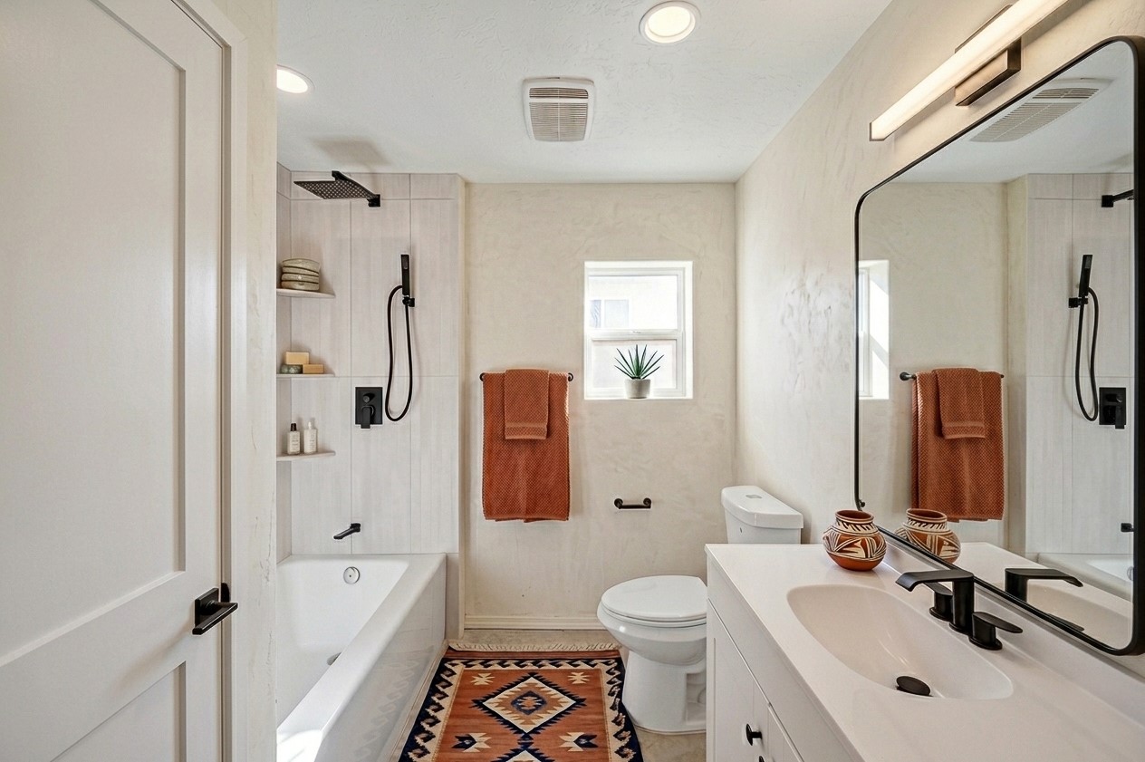 You'll feel right at home the moment you step into this beautifully renovated 3-bedroom, 2-bath Santa Fe gem, tucked away on a quiet street near one of the city's most desirable and walkable neighborhood, the Baca Railyard Arts District. This centrally located residence blends classic adobe charm with modern comfort and a welcoming open-concept layout. The main living area is warm and inviting, featuring a cozy gas fireplace, handmade wood paneling, and abundant natural light. The kitchen is both stylish and functional with stainless steel appliances, granite countertops, and a tasteful backsplash--perfect for everyday living and entertaining.A ductless mini-split system ensures efficient heating and cooling year-round.The thoughtfully designed basement provides exceptional privacy and flexibility, ideal as an additional bedroom, home office, media room, or creative studio.Completely remodeled from top to bottom, the home also features fresh stucco, a brand-new water heater, new washer and dryer, LED vanity mirrors, and low-maintenance landscaping for easy living.Turn-key, full of character, and move-in ready, this special property offers the rare combination of Santa Fe charm, modern updates, generous outdoor space, and ample parking--all in a location buyers love.Homes like this in such a prime setting don't come along often. Don't miss the opportunity to make it yours.