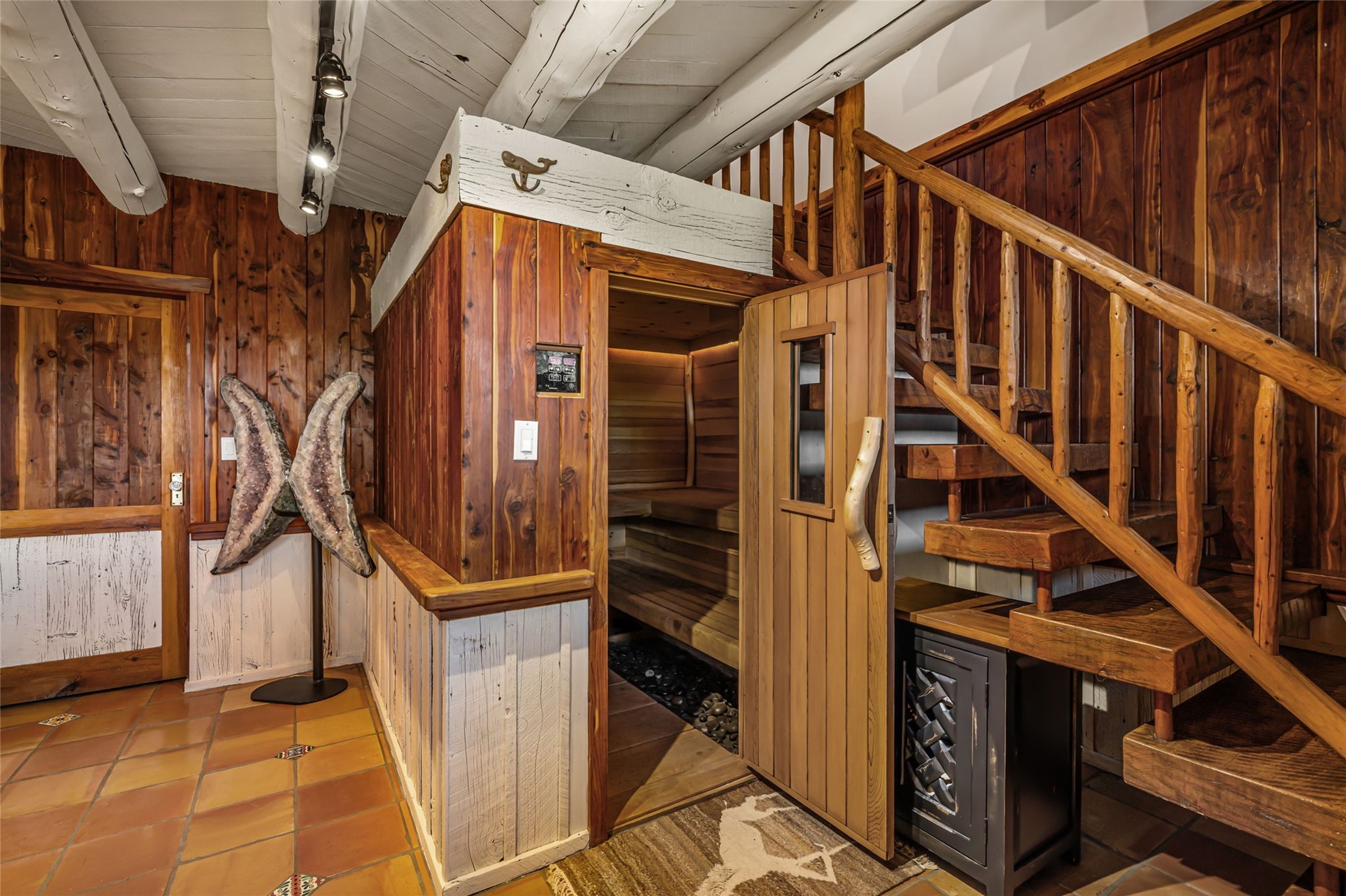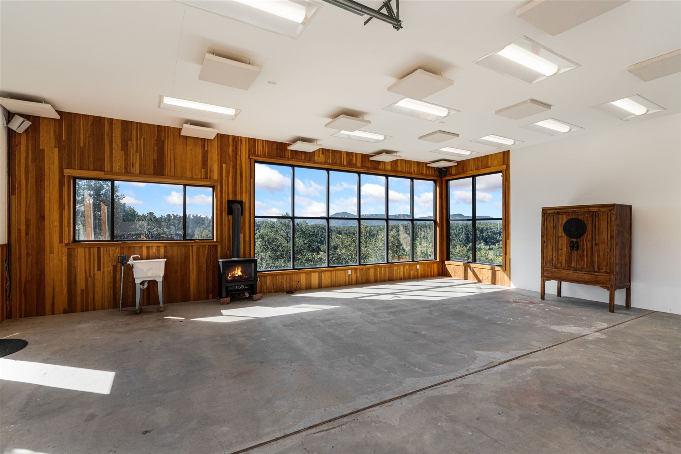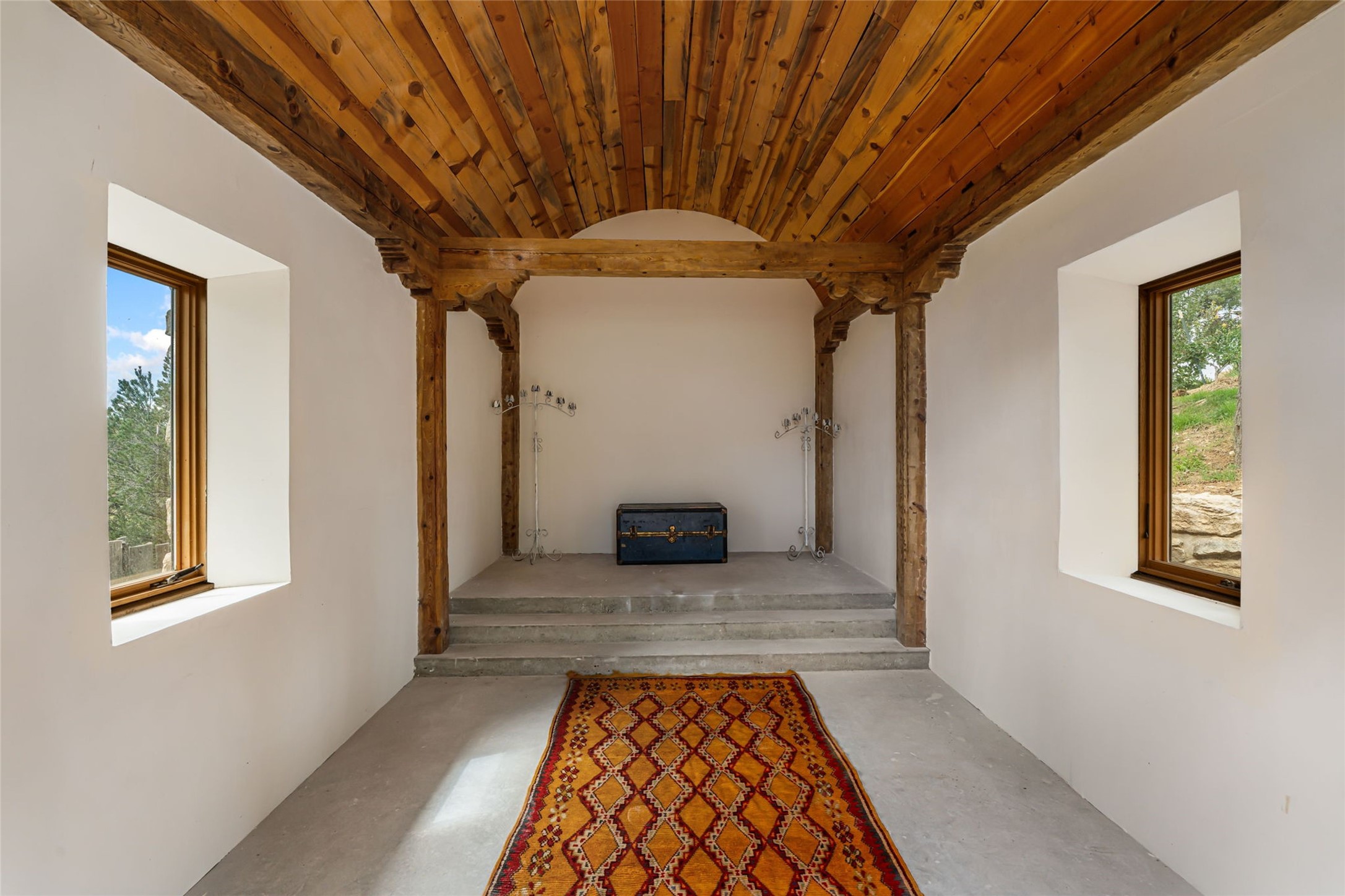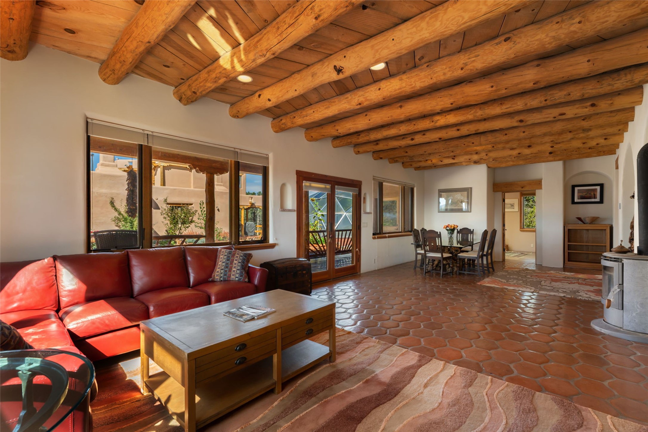 Set on nearly four acres 30 minutes from Santa Fe and only minutes from the Pecos River, 16 Hubbard Hill offers a profound and immediate sense of peace. The property overlooks serene Monastery Lake and borders more than one thousand acres of land belonging to the Benedictine Monastery, creating extraordinary privacy and an uninterrupted natural backdrop. This extraordinary estate was originally the personal residence and apex creation of renowned custom builder Richard Roybal, a true Northern New Mexico artisan whose craftsmanship is visible in every detail. Hand inlaid wood floors, sculpted stonework, vigas and latillas, aspen and willow ceilings and generous windows create a warm, soulful environment filled with natural light. The home has been thoughtfully expanded and impeccably maintained ever since, evolving into a property that supports both refined living and meaningful self-reliance.The current owners have continued this legacy with significant upgrades designed for long-term comfort and sustainability. A powerful solar system with a three-plus-day battery backup provides dependable energy independence. Improvements to water and power systems were completed with durability and ease of living in mind. New fruit trees and hundreds of berry plants complement the existing mature plantings, contributing to a landscape that functions as a flourishing food forest. Landscaping throughout the property has been refined to minimize maintenance, maximize automation and support a thriving ecosystem for humans, birds and bees. A private gate marks the entrance to the estate, and the grounds are fully fenced to accommodate dogs, making the land as welcoming as it is expansive.One of the most exceptional features of the estate is the expansive detached garage and south-facing studio, where dramatic glass garage doors fill the space with natural light. This luminous building is ideal for an artist, maker, healer or collector and functions beautifully as a workshop, gallery, creative studio or retreat space.The greenhouse beautifully supports a lifestyle of intentional, sustainable living. It includes a large hydroponic water enclosure, solar-operated fans, automated roof ventilation and raised beds with full drip irrigation, all designed for maximum growing efficiency and year-round cultivation.The fully appointed guest house is a complete home of its own, not a simple casita. High ceilings and large windows create an airy, spacious feel, while thoughtfully placed skylights bring in abundant natural light. Heated tile floors throughout add comfort and warmth, and the full amenities offer exceptional flexibility for hosting, multigenerational living or generating rental income.With approximately eight thousand square feet of living and studio space, exceptional craftsmanship, modern enhancements and a landscape that feels both magical and deeply grounding, 16 Hubbard Hill stands as a truly singular offering. It is a home built to endure, expanded with care and aligned with a lifestyle that values beauty, creativity and self-reliance. A rare sanctuary with endless potential.