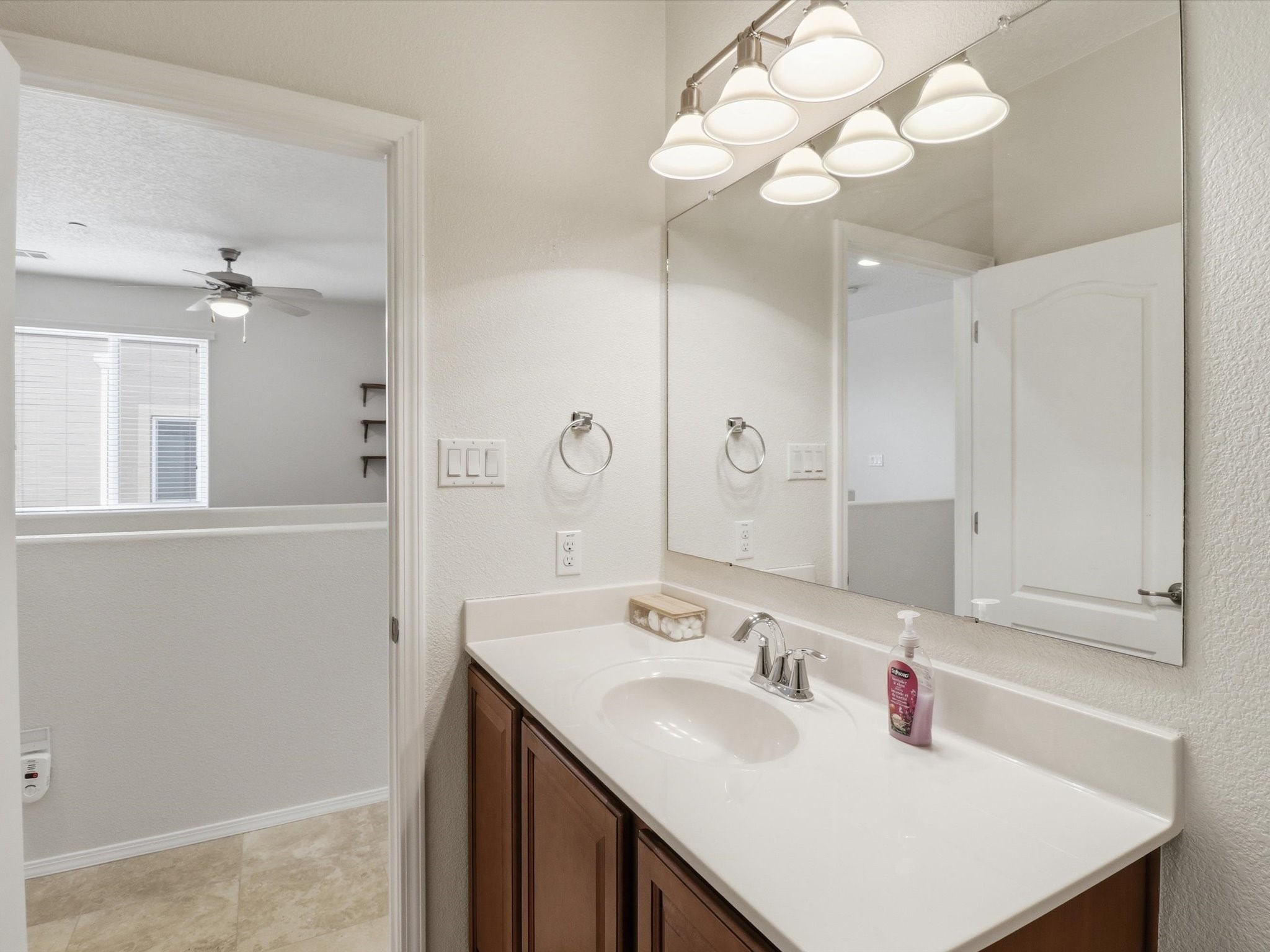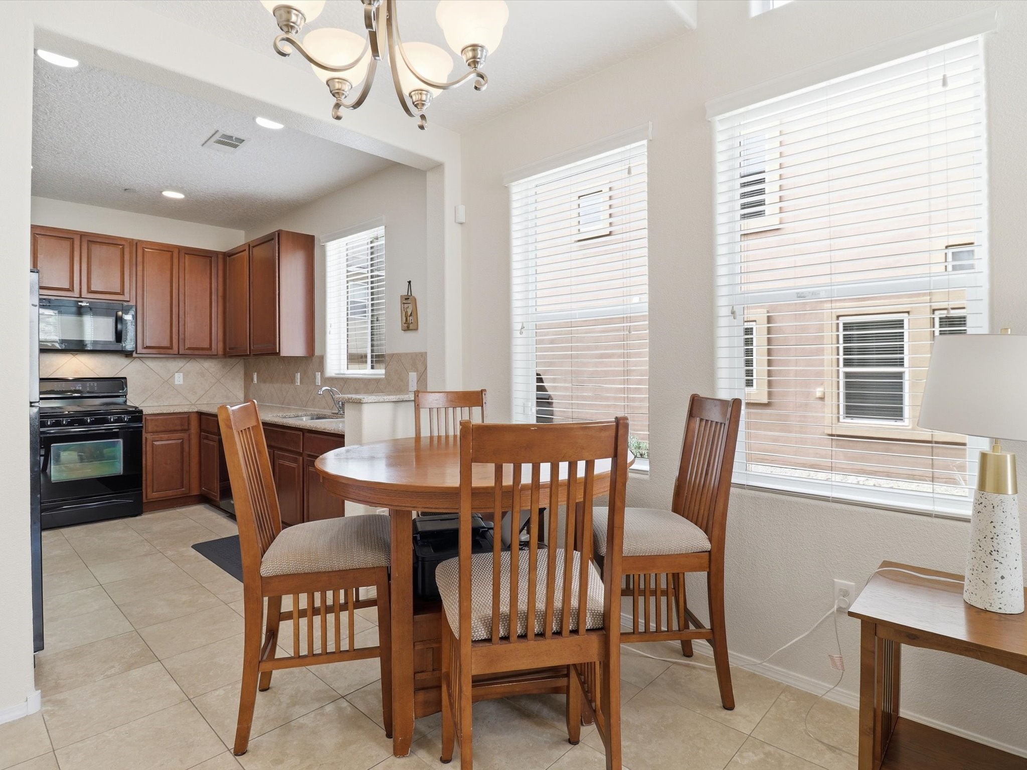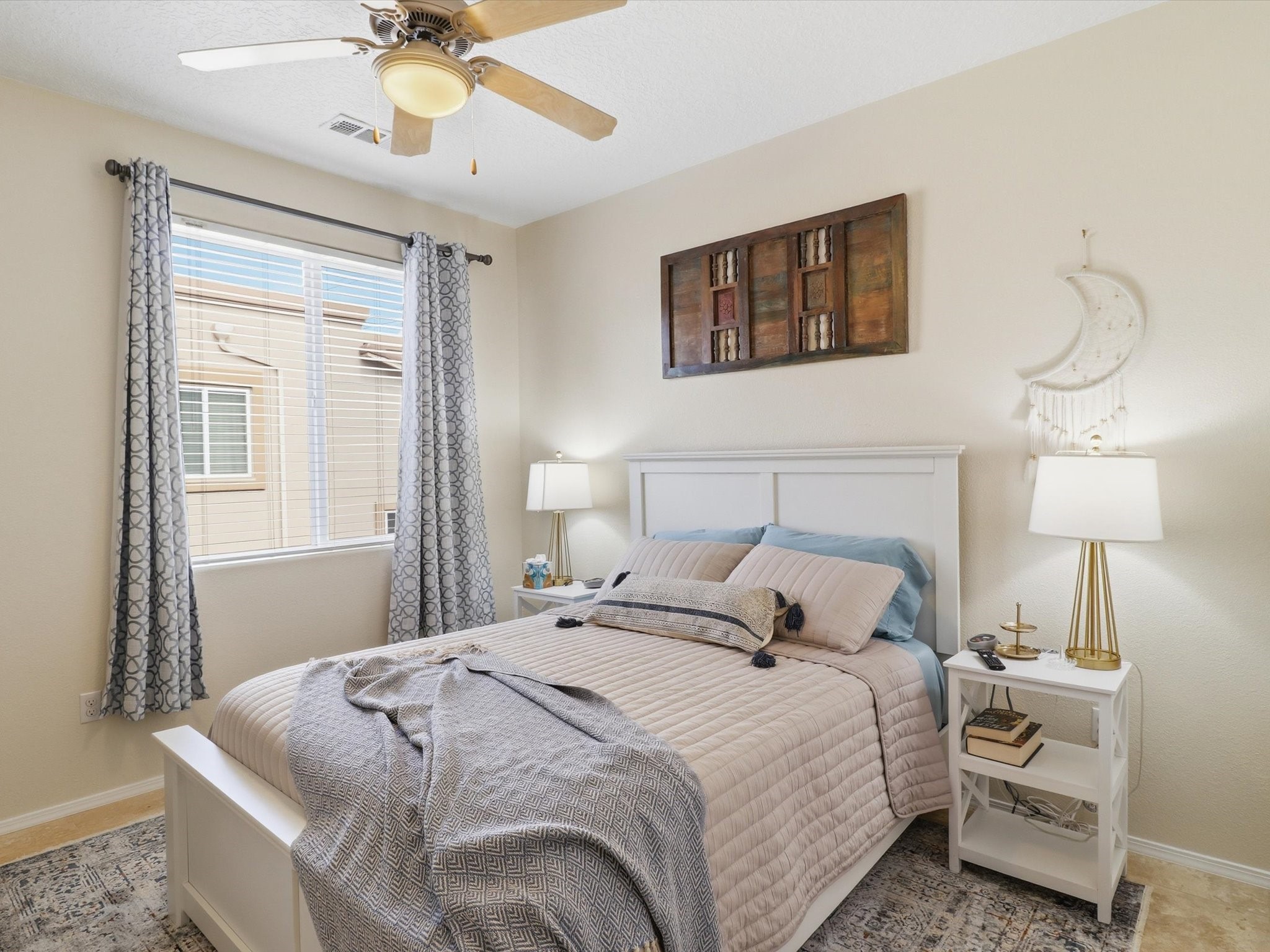 Whether you're seeking the perfect starter home or a stylish lock-and-leave retreat, this sun-drenched two-story condo offers comfort, convenience, and modern flair.Built in 2011, this 2-bedroom, 2-bath sanctuary features soaring ceilings and abundant natural light streaming through well-placed windows, creating a bright and airy atmosphere throughout. The thoughtfully designed floor plan includes a main-level primary suite for easy living, while the upper level offers a second bedroom, full bath, and a versatile loft--ideal for a home office, workout space, or additional living area.The open-concept living space flows seamlessly, creating an inviting environment for both relaxing and entertaining. The well-appointed kitchen is a standout, featuring plentiful cabinets, ample workspace, and a large pantry--perfect for any home chef. Travertine tile adds warmth and timeless appeal throughout the home.The generous primary suite offers a peaceful retreat with a full ensuite bath and walk-in closet. Additional highlights include carpet and travertine flooring, forced air heating with central refrigerated air, and a finished two-car garage with direct entry and interior access.All appliances convey, including the dishwasher, range/oven, refrigerator, washer, and dryer--making this a truly turnkey opportunity.Tucked away on a quiet cul-de-sac, this home offers a serene setting while remaining conveniently located near restaurants, shopping, and parks. Enjoy easy access to Highway 599 for commuters, and nearby San Isidro Village Park provides a wonderful space for outdoor enjoyment with playgrounds and open grassy areas.A rare combination of style, functionality, and location--this home is ready to welcome you.