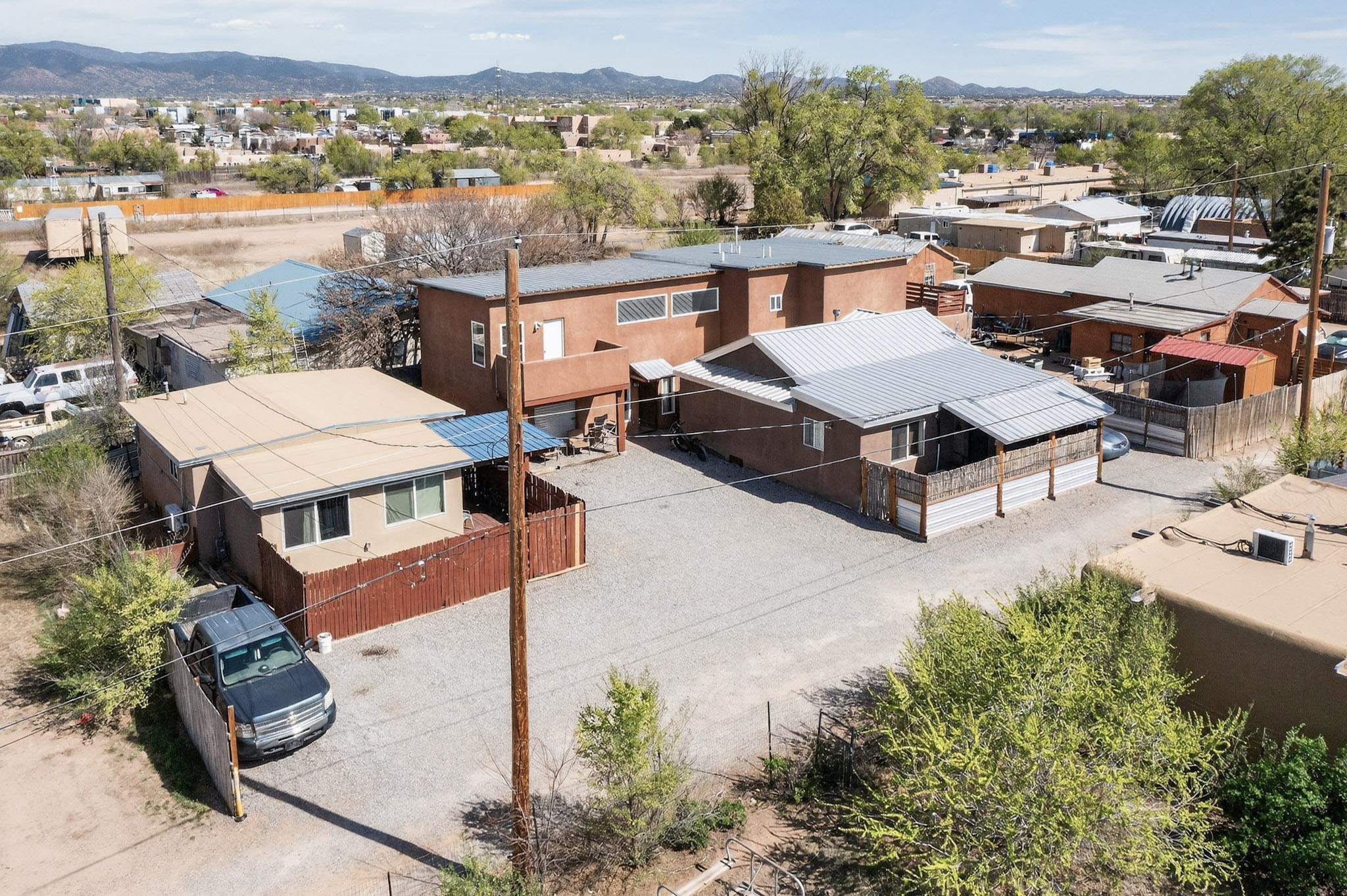 Exceptional investment and multi-generational living opportunity in the heart of Santa Fe! This versatile triplex features three distinct, updated units offering comfort, functionality, and modern appeal. The front home includes new flooring, updated countertops, windows, doors, water heater, breaker box, propanel roof, and washer/dryer. The casita shines with new flooring, cabinetry, windows, plumbing, and breaker panel--ideal for guests or rental income. The spacious two-story main home offers new flooring, updated windows and doors, remodeled baths, upgraded kitchen cabinetry, electric fireplace, and new breaker box. Perfect for income, extended living, or portfolio growth!