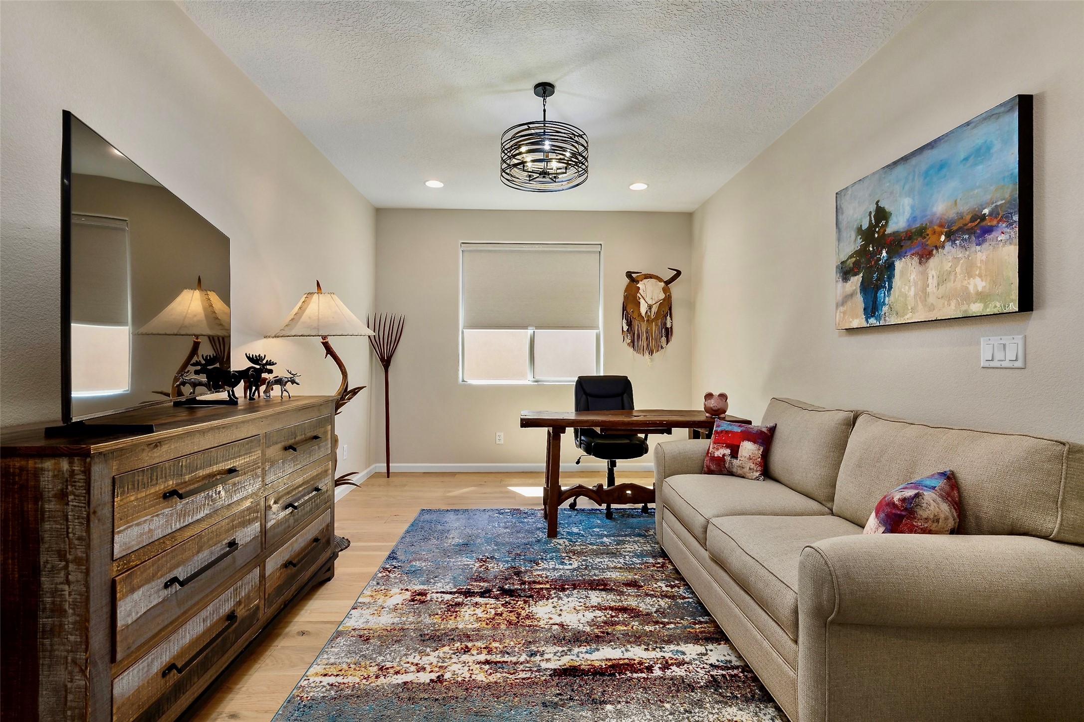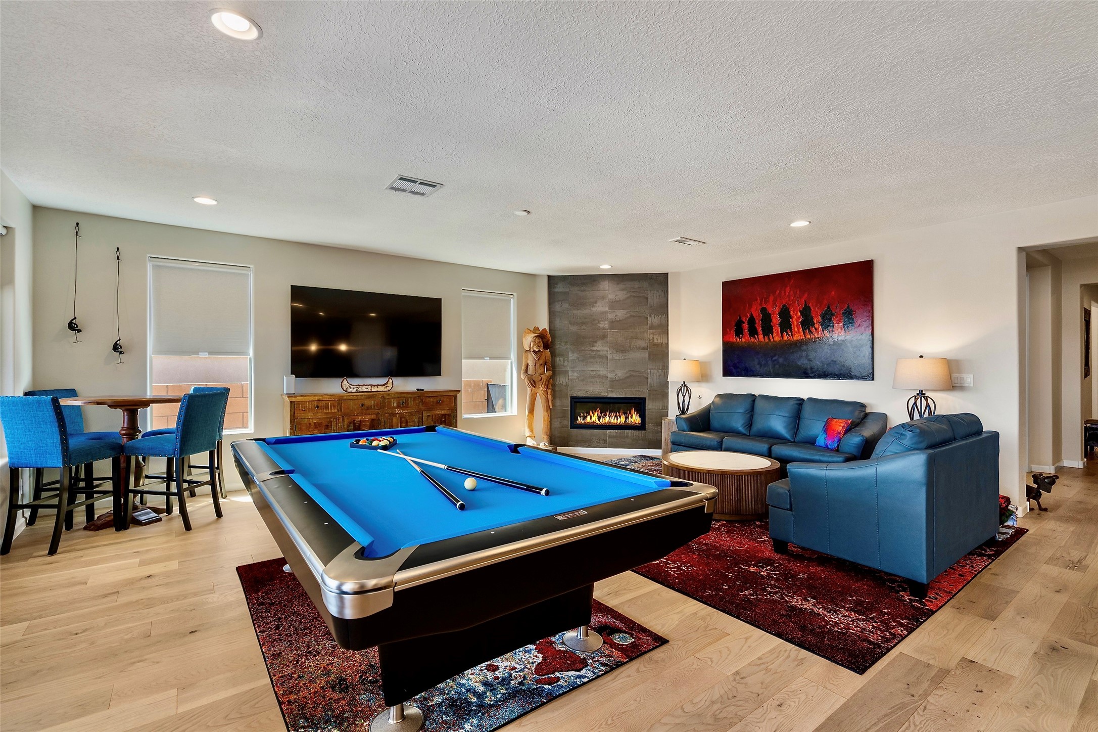 Beautiful single-story home features a modern, open- concept floor plan perfect for today's lifestyle.The home centers around a spacious kitchen with a large center island, bringing joy to cooking and entertaining. The great room/living room features tall ceilings and a dramatic floor to ceiling tiled fireplace! The owner's suite bathroom exudes luxury and is replete with beautiful finishes similar to any 5 star, spa-like retreat. There are 3 spacious bedrooms + office/studio or flex space. The full 3-car, 628 sq.ft tandem garage offers plenty of space for not only vehicles, but storage as well! BEST OF ALL- Why spend extra time and money finishing your backyard, installing custom window treatments and light fixtures, tiling your fireplace wall, replacing carpet, or painting and epoxying your garage, when you can move right into a fabulous turnkey Parkland Colibri home where every upgrade has already been thoughtfully completed? Step into this nearly new, barely lived-in home, featuring gorgeous engineered hardwood flooring throughout--no carpet anywhere, just beautifully upgraded floors in every room. Bathed in natural light, the living spaces seamlessly connect to the outdoors, offering a warm and inviting atmosphere for everyday living. Embrace the outdoor lifestyle with a custom-built firepit area, perfect for relaxing or entertaining guests as you take in enchanting Santa Fe evenings under the stars. Meticulously maintained and move-in ready, this home is designed for comfort, style, and effortless enjoyment. This home is like new with little use, but is fully broken in! A must see!