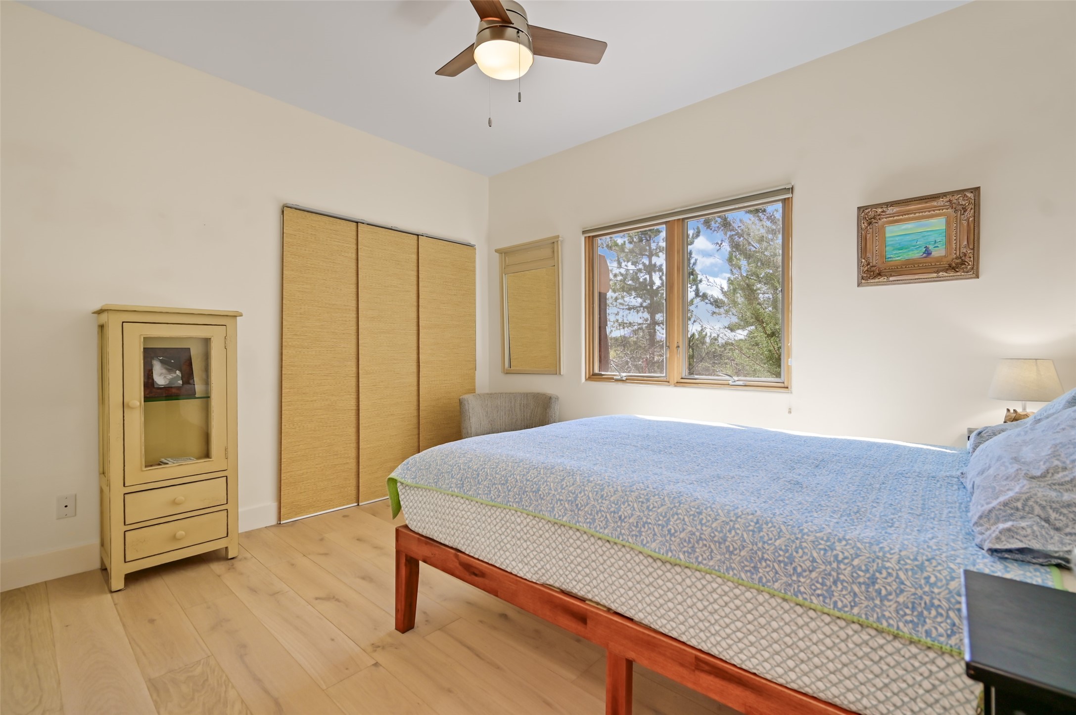 Situated on an oversized in-town lot with ample space to add an ADU, this tastefully renovated home offers the perfect blend of comfort, privacy, and the Santa Fe lifestyle. A gated entry welcomes you into a beautifully fenced property featuring low-maintenance xeriscaping and an abundance of mature trees, creating a serene and private setting. Ideally located on the desirable north side, you're just minutes from De Vargas Center and the historic downtown Plaza, with convenient access to Los Alamos. Enjoy nearby hiking and biking trails, as well as the popular Frank Ortiz and Ridgetop Dog Parks, all just moments from your doorstep. This unique property features stunning mountain views of the Sangre de Cristo Mountains and has been meticulously maintained and thoughtfully upgraded by its current owners--making it truly turnkey. Recent improvements include beautifully remodeled bathrooms, an updated kitchen, wall-to-wall engineered oak flooring, and a Navien tankless water heater with recirculation. A new TPO membrane roof with added insulation was installed in 2023 for enhanced energy efficiency. The home also boasts a fully owned 7.6 kW photovoltaic solar system that covers the property's electrical needs--with surplus capacity to charge your EV using the already installed charger in the spacious two-car garage. 839 Camino Francisca is a rare opportunity to enjoy modern upgrades, sustainability, privacy, and the very best of Santa Fe living.