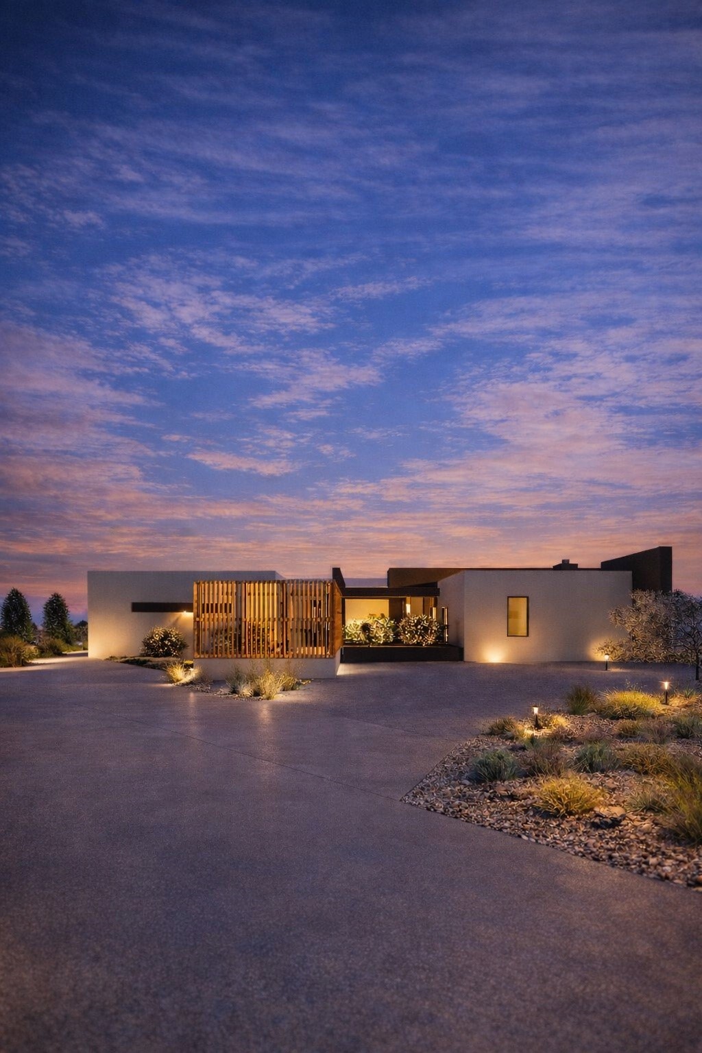 To-be-built by award-winning builder Zachary & Sons, this thoughtfully designed 3,770 sq. ft. single-level residence offers a rare opportunity to create a beautifully crafted home with an accelerated timeline. Upon execution of a contract, construction can begin within approximately 60 days, with an estimated 18-month build--an exceptional pace for a luxury home of this caliber.Sited on 1.5 elevated acres, the home is designed to capture sweeping views of the Sangre de Cristo Mountains from the main living areas and primary suite. The 3-bedroom, 3.5-bath floor plan offers a seamless flow between open living spaces and more intimate courtyards.Designed by AIA award-winning Archaeo Architects, the architecture blends contemporary lines with warm, natural materials. The living room features a dramatic wall of glass that opens to a grand portal with fireplace, creating a true indoor-outdoor living experience. The chef's kitchen is both functional and refined, complemented by a dining area that opens to a dedicated dining portal.Approximately 1,443 sq. ft. of covered outdoor living extends the home's connection to the surrounding landscape. The primary suite is positioned for privacy and mountain views, offering a quiet retreat.Exterior materials pair earthen stucco with crisp lines and black metal accents, while interiors feature warm wood and handcrafted finishes. Buyers benefit from a meaningful head start in the design process with the opportunity to personalize finishes.Located within walking distance to the Las Campanas clubhouse and fitness center, this offering combines thoughtful design, craftsmanship, and convenience in one of Santa Fe's most sought-after settings.