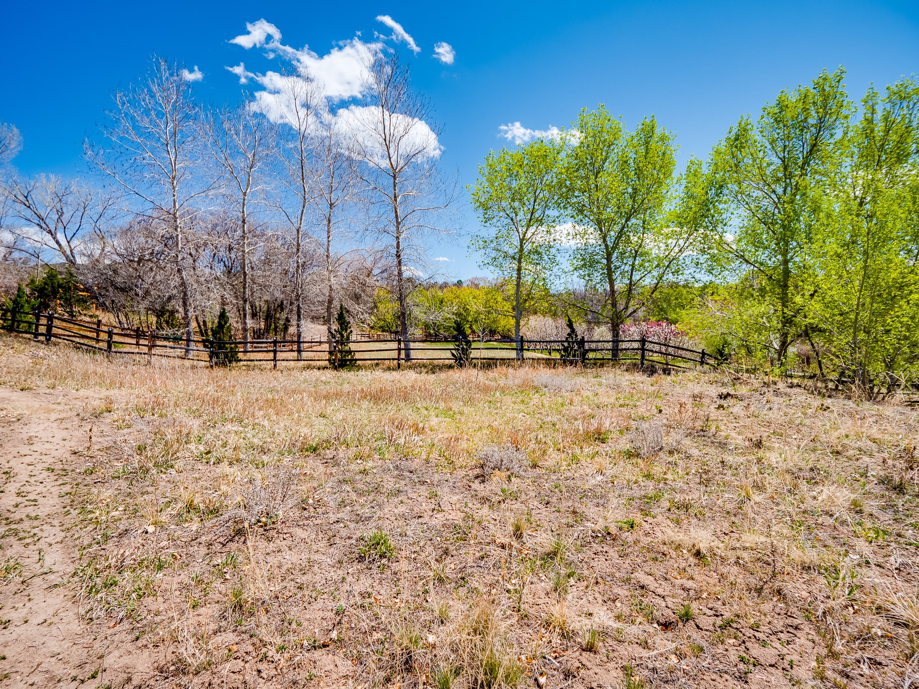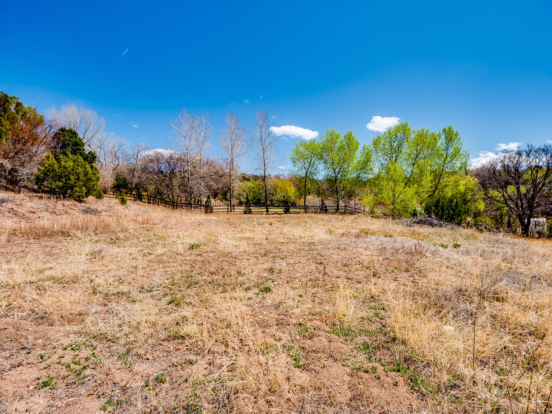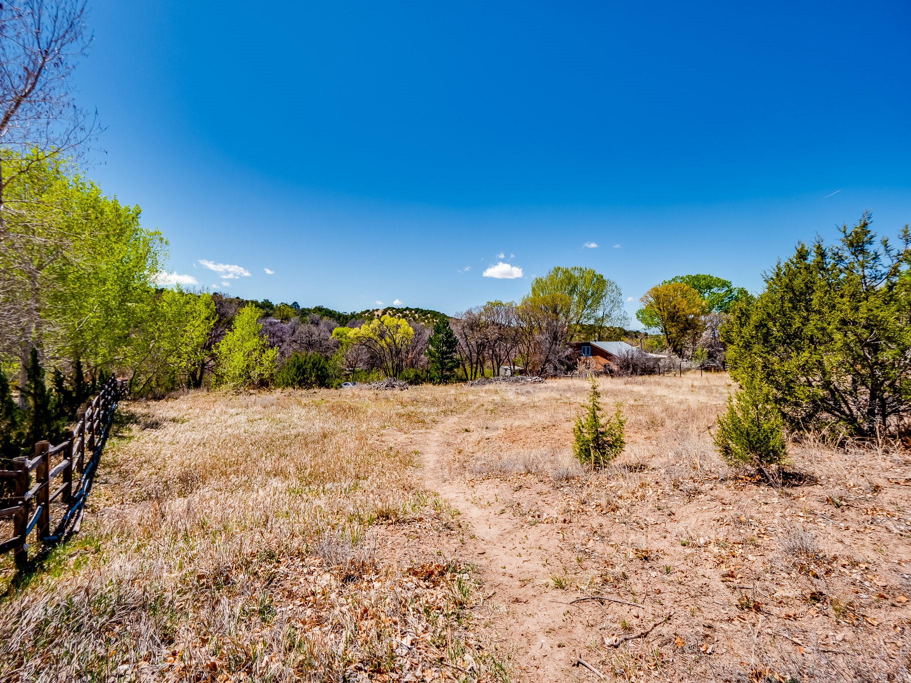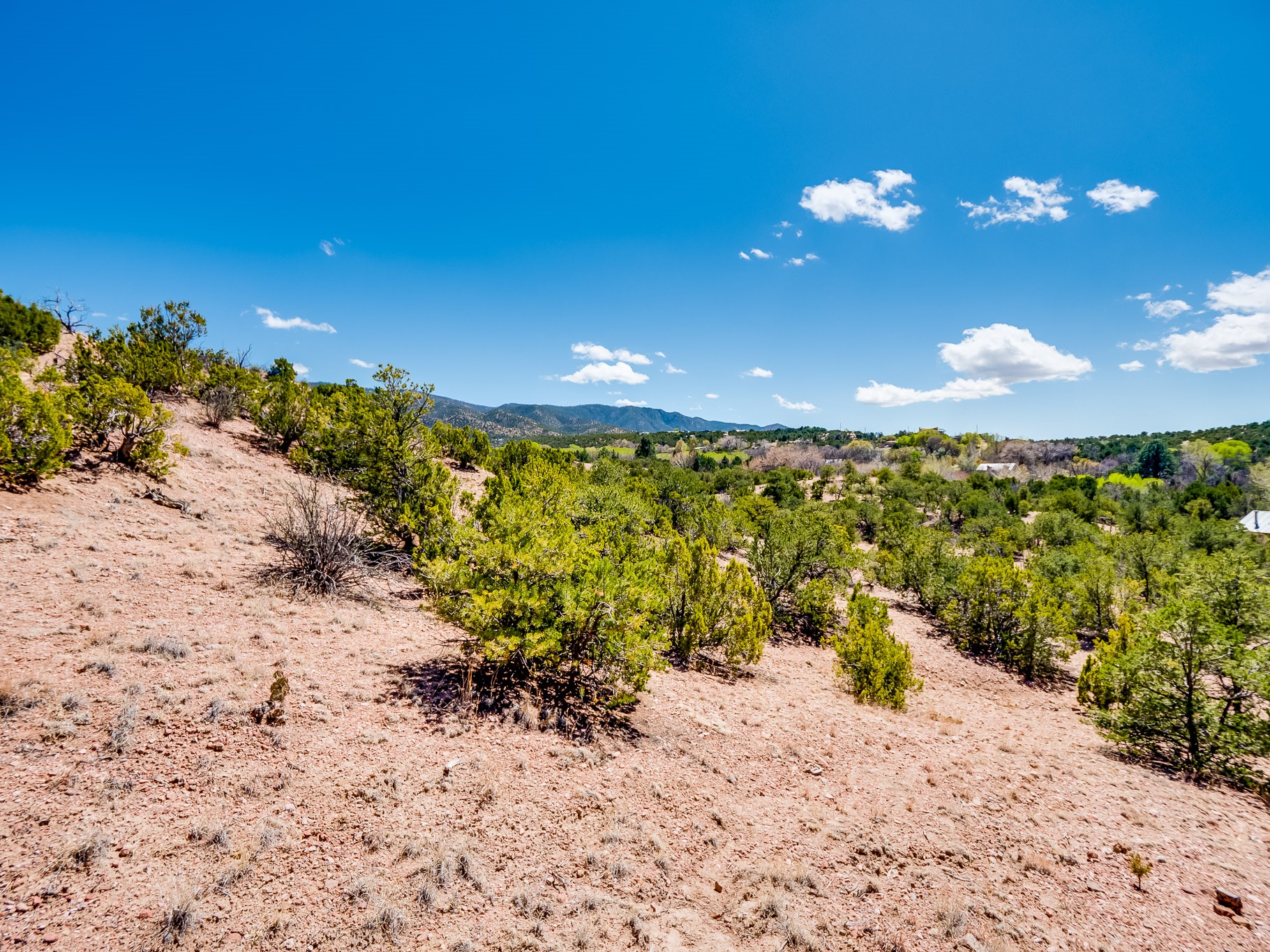 Discover a rare opportunity to own approximately 6 acres of untouched land in beautiful Tesuque, a place where open skies, vibrant landscapes, and peaceful living come together. This versatile property combines gently rolling grassland, pockets of shady wooded areas, and more rugged mountain terrain, creating a dynamic setting that feels both wild and welcoming. From sunrise to sunset, enjoy sweeping mountain views that shift with the light and seasons. Whether you dream of watching the sun rise over distant peaks from your porch, or stargazing under clear New Mexico skies, this land offers a truly inspiring backdrop for daily life. This is the perfect canvas for the home of your dreams, designed around how you live and what you love. Whether you envision a modern architectural retreat, a warm and rustic home, or a timeless pueblo-style residence, there's room to spread out. With horse riding permitted, this is an excellent homesite for equestrian lovers. There is ample room to create a thoughtful setup for keeping horses and other farm animals. Think barns, paddocks, and riding areas, all while preserving plenty of open space. The varied terrain offers both open meadow-like stretches and more sheltered spots, ideal for grazing, exploring, or simply soaking in the quiet. If you've imagined living more sustainably or growing your own food, there's space here for fruit trees and gardens. Picture rows of fruit trees along a gentle slope, a kitchen garden near your future home, and walking paths that wind through the property's natural features. Set in quiet and peaceful surroundings, the land feels worlds away from noise and stress, yet close enough to enjoy all that the Tesuque and greater Santa Fe area have to offer. With endless possibilities for design, recreation, and lifestyle, this 6-acre Tesuque property is more than just land, it's a chance to build your own sanctuary in one of New Mexico's most cherished landscapes.