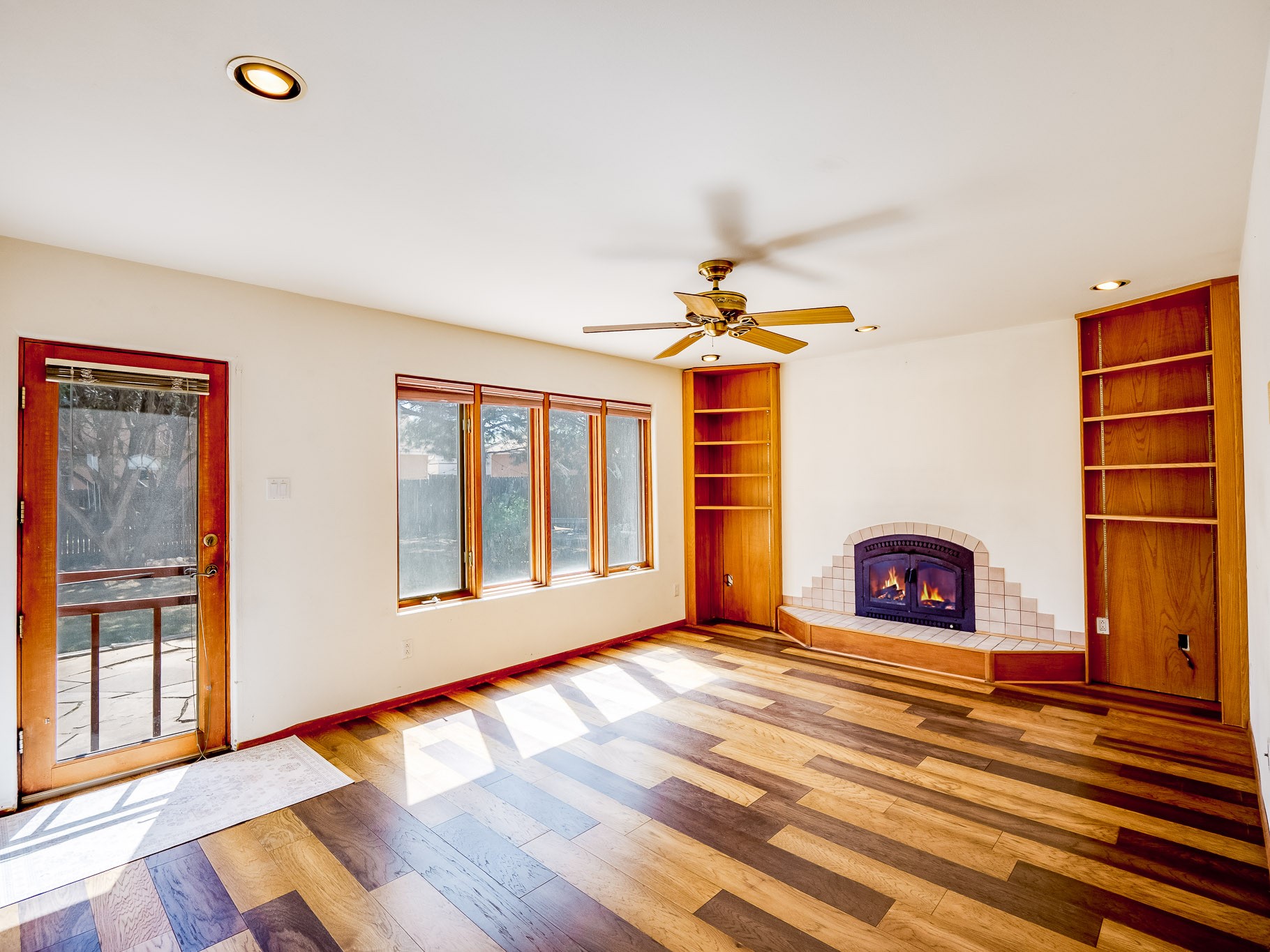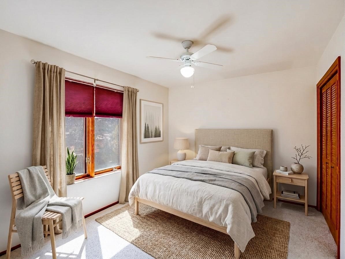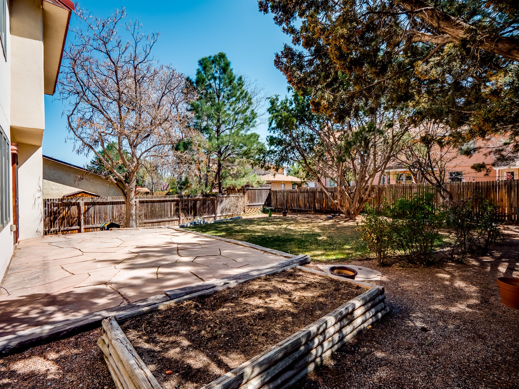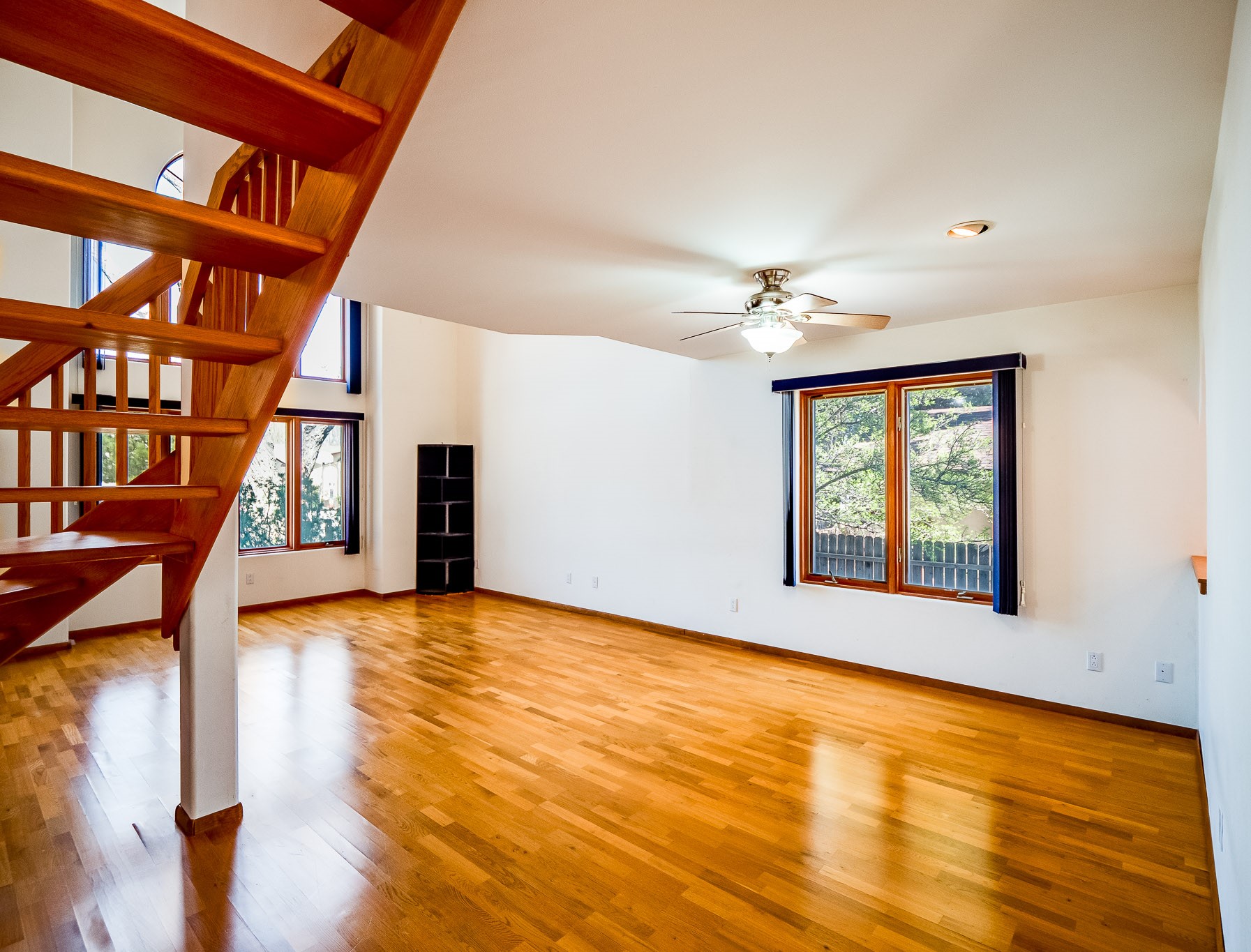 Welcome to this inviting two-story residence in White Rock offering wonderful curb appeal, mature shade trees, and a low-maintenance front yard that welcomes you the moment you arrive. Step through the front door into the foyer, where a striking centered staircase sets the tone for the rest of the home. To your left, an open living and dining space creates an ideal setting for both everyday living and entertaining. The living room features vaulted ceilings, floor-to-ceiling windows that flood the room with natural light, and warm wood flooring that adds to the sense of openness. Sharing the space is the dining area, highlighted by a dropped ceiling that helps create a more intimate, defined atmosphere for gatherings. Tucked just off the main living area is the bright, cheerful kitchen. Here you'll find abundant wood cabinetry, tile flooring, a central island with bar-top seating, stainless steel appliances, and a charming bay window with built-in seating. A comfortable family room provides an additional place to relax, with wood flooring, a wood-burning fireplace framed by built-in shelving, and windows overlooking the backyard. This room has access to the patio and yard, making indoor-outdoor living easy. A convenient powder room and a dedicated laundry room with access to the attached two-car garage complete the main level. Upstairs is fully carpeted with two nicely sized guest bedrooms and a guest bath with a tiled walk-in shower. The spacious primary suite is a true retreat, offering mountain views and an observation overlook to the living room. Large walk-in closet with built-in organization and an en-suite bathroom with a single-sink vanity, deep jetted tub, and separate walk-in shower. Lovely backyard with grass, mature trees, and planter areas with room to expand your garden. A generous flagstone patio sets the stage for outdoor dining, barbecues, or simply relaxing with your favorite drink at the end of the day. View this fantastic home today!