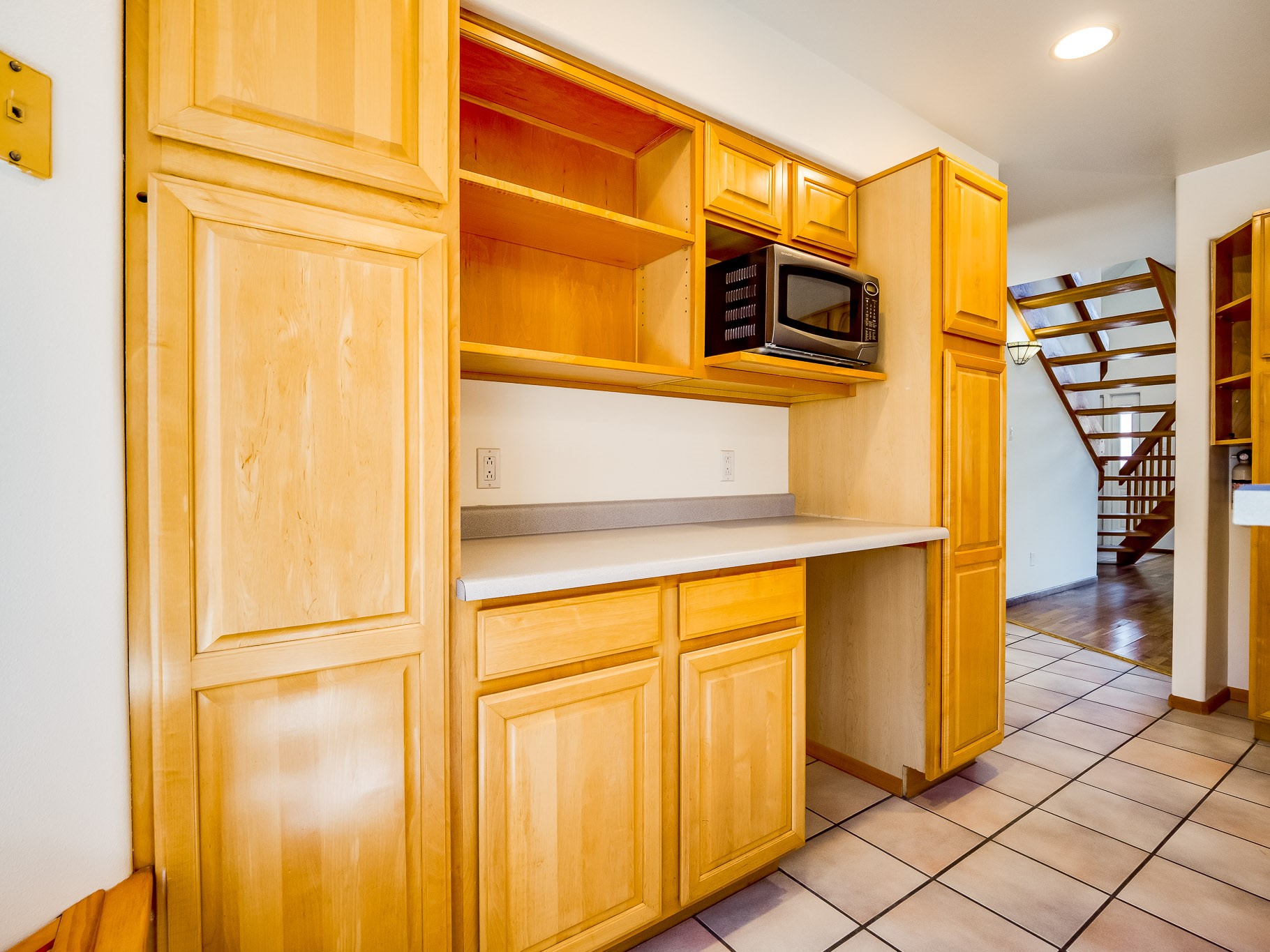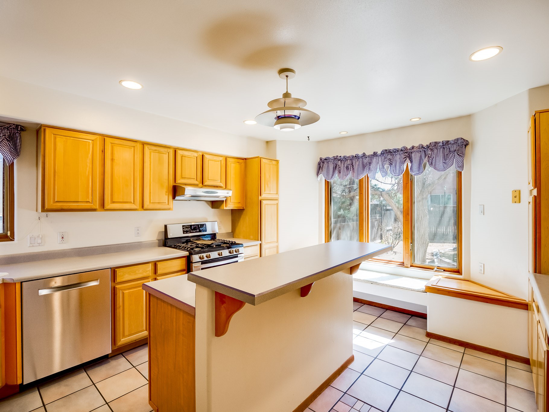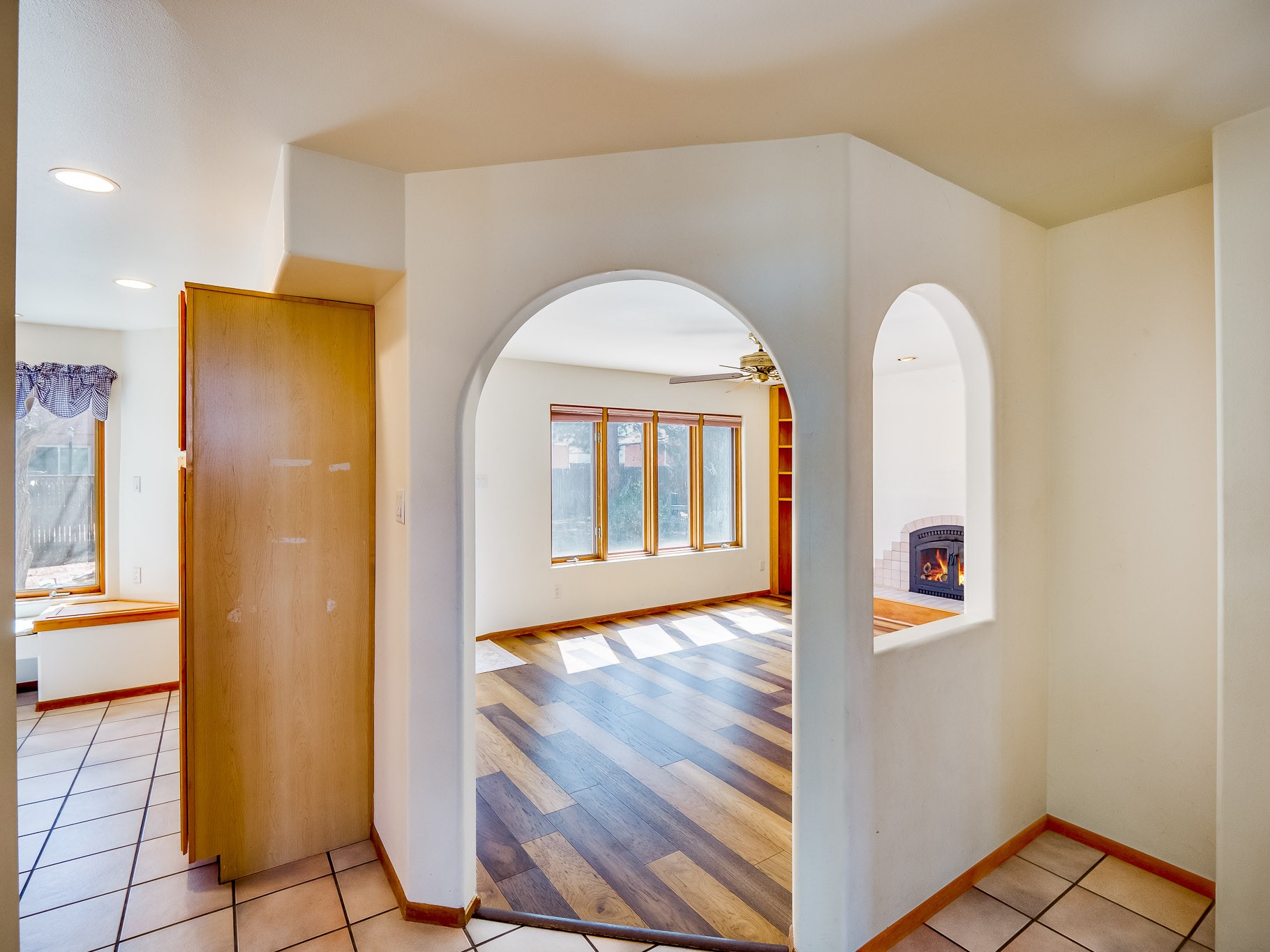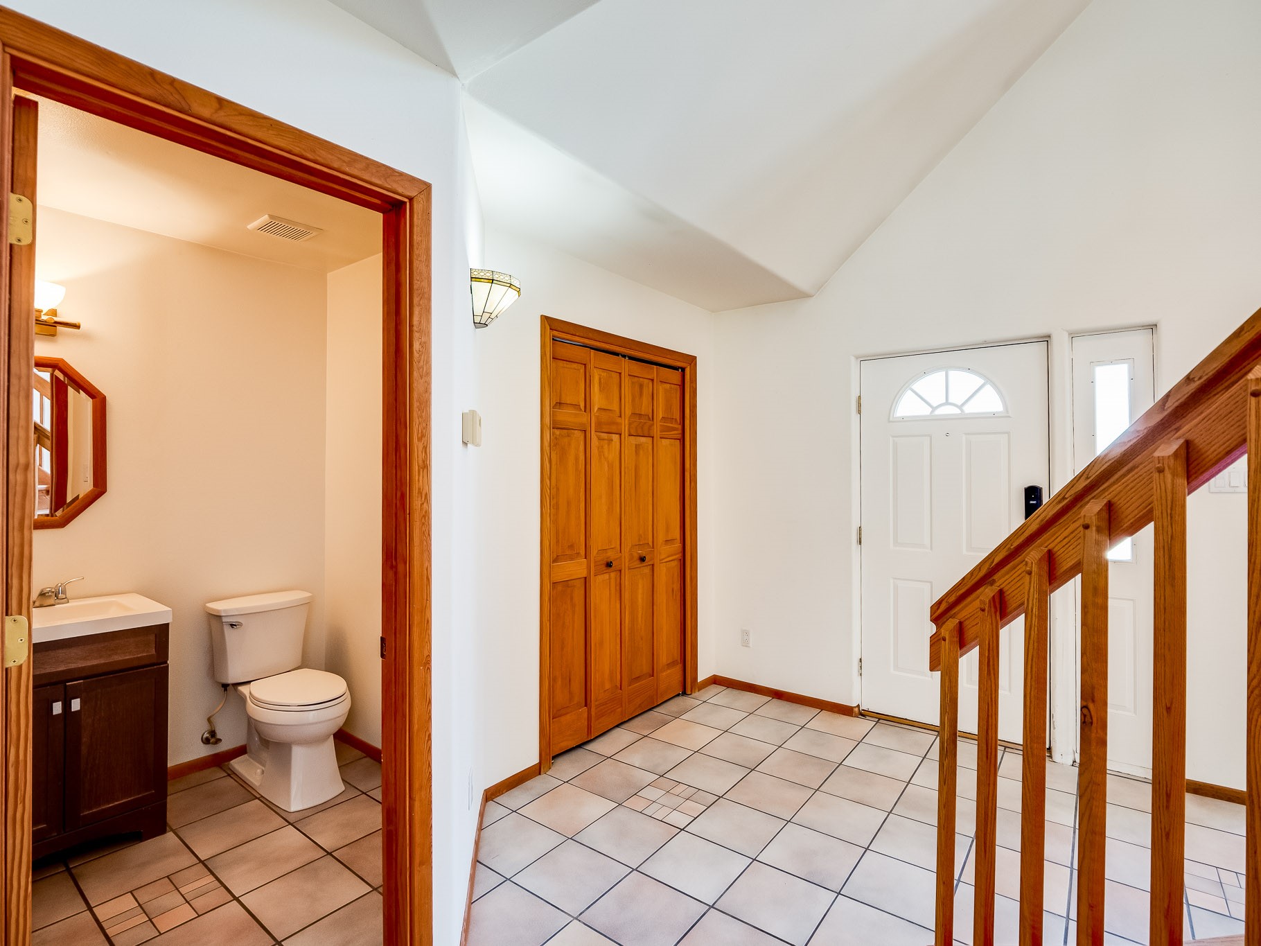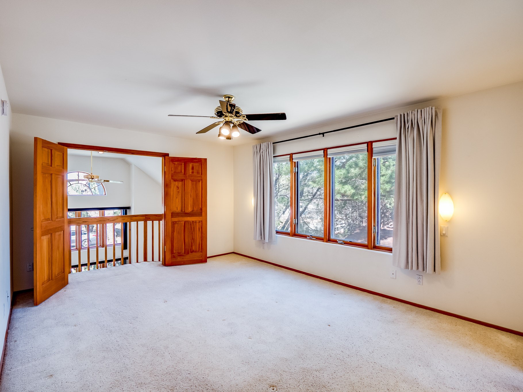 Welcome to this inviting two-story residence in White Rock offering wonderful curb appeal, mature shade trees, and a low-maintenance front yard that welcomes you the moment you arrive. Step through the front door into the foyer, where a striking centered staircase sets the tone for the rest of the home. To your left, an open living and dining space creates an ideal setting for both everyday living and entertaining. The living room features vaulted ceilings, floor-to-ceiling windows that flood the room with natural light, and warm wood flooring that adds to the sense of openness. Sharing the space is the dining area, highlighted by a dropped ceiling that helps create a more intimate, defined atmosphere for gatherings. Tucked just off the main living area is the bright, cheerful kitchen. Here you'll find abundant wood cabinetry, tile flooring, a central island with bar-top seating, stainless steel appliances, and a charming bay window with built-in seating. A comfortable family room provides an additional place to relax, with wood flooring, a wood-burning fireplace framed by built-in shelving, and windows overlooking the backyard. This room has access to the patio and yard, making indoor-outdoor living easy. A convenient powder room and a dedicated laundry room with access to the attached two-car garage complete the main level. Upstairs is fully carpeted with two nicely sized guest bedrooms and a guest bath with a tiled walk-in shower. The spacious primary suite is a true retreat, offering mountain views and an observation overlook to the living room. Large walk-in closet with built-in organization and an en-suite bathroom with a single-sink vanity, deep jetted tub, and separate walk-in shower. Lovely backyard with grass, mature trees, and planter areas with room to expand your garden. A generous flagstone patio sets the stage for outdoor dining, barbecues, or simply relaxing with your favorite drink at the end of the day. View this fantastic home today!