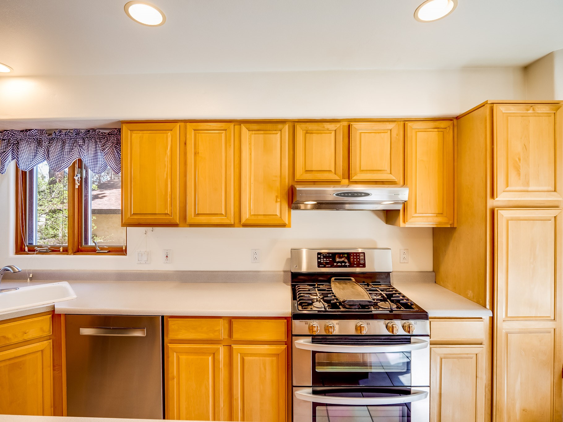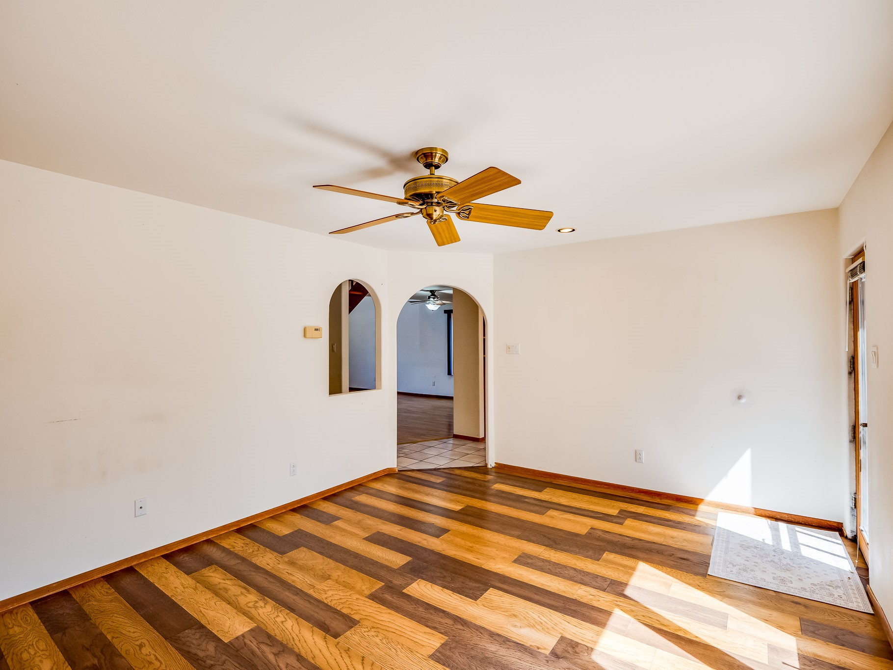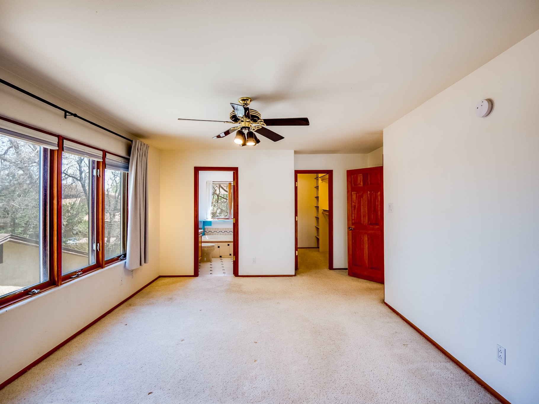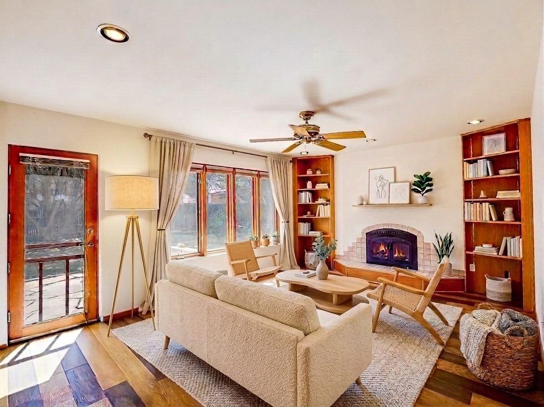 Welcome to this inviting two-story residence in White Rock offering wonderful curb appeal, mature shade trees, and a low-maintenance front yard that welcomes you the moment you arrive. Step through the front door into the foyer, where a striking centered staircase sets the tone for the rest of the home. To your left, an open living and dining space creates an ideal setting for both everyday living and entertaining. The living room features vaulted ceilings, floor-to-ceiling windows that flood the room with natural light, and warm wood flooring that adds to the sense of openness. Sharing the space is the dining area, highlighted by a dropped ceiling that helps create a more intimate, defined atmosphere for gatherings. Tucked just off the main living area is the bright, cheerful kitchen. Here you'll find abundant wood cabinetry, tile flooring, a central island with bar-top seating, stainless steel appliances, and a charming bay window with built-in seating. A comfortable family room provides an additional place to relax, with wood flooring, a wood-burning fireplace framed by built-in shelving, and windows overlooking the backyard. This room has access to the patio and yard, making indoor-outdoor living easy. A convenient powder room and a dedicated laundry room with access to the attached two-car garage complete the main level. Upstairs is fully carpeted with two nicely sized guest bedrooms and a guest bath with a tiled walk-in shower. The spacious primary suite is a true retreat, offering mountain views and an observation overlook to the living room. Large walk-in closet with built-in organization and an en-suite bathroom with a single-sink vanity, deep jetted tub, and separate walk-in shower. Lovely backyard with grass, mature trees, and planter areas with room to expand your garden. A generous flagstone patio sets the stage for outdoor dining, barbecues, or simply relaxing with your favorite drink at the end of the day. View this fantastic home today!
