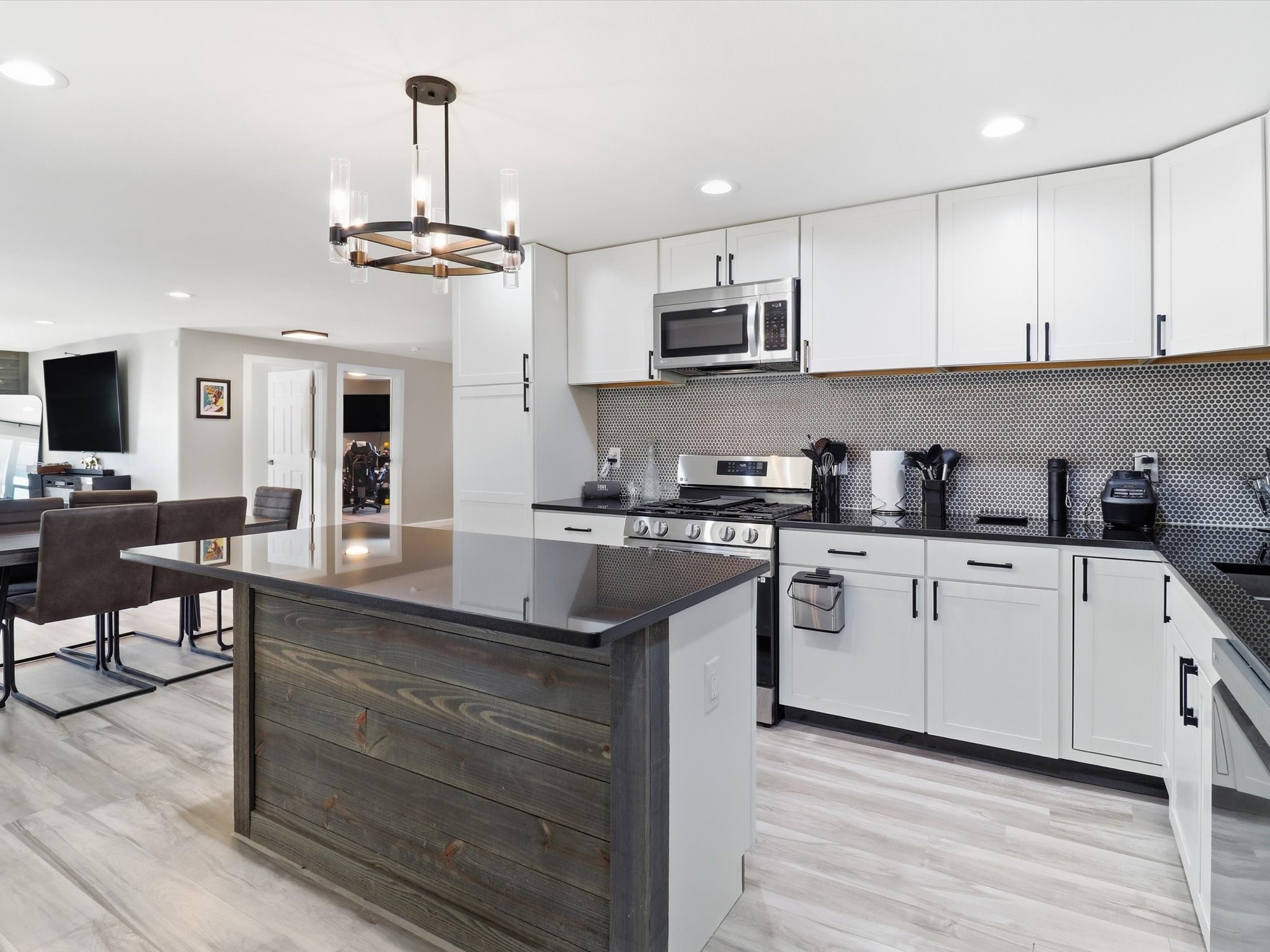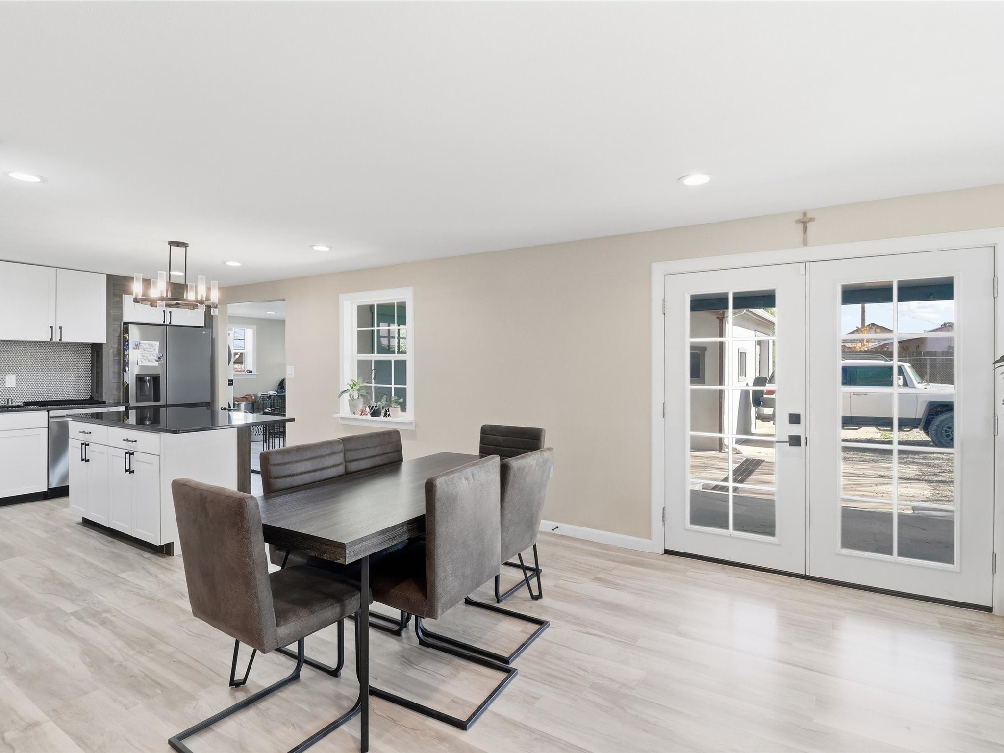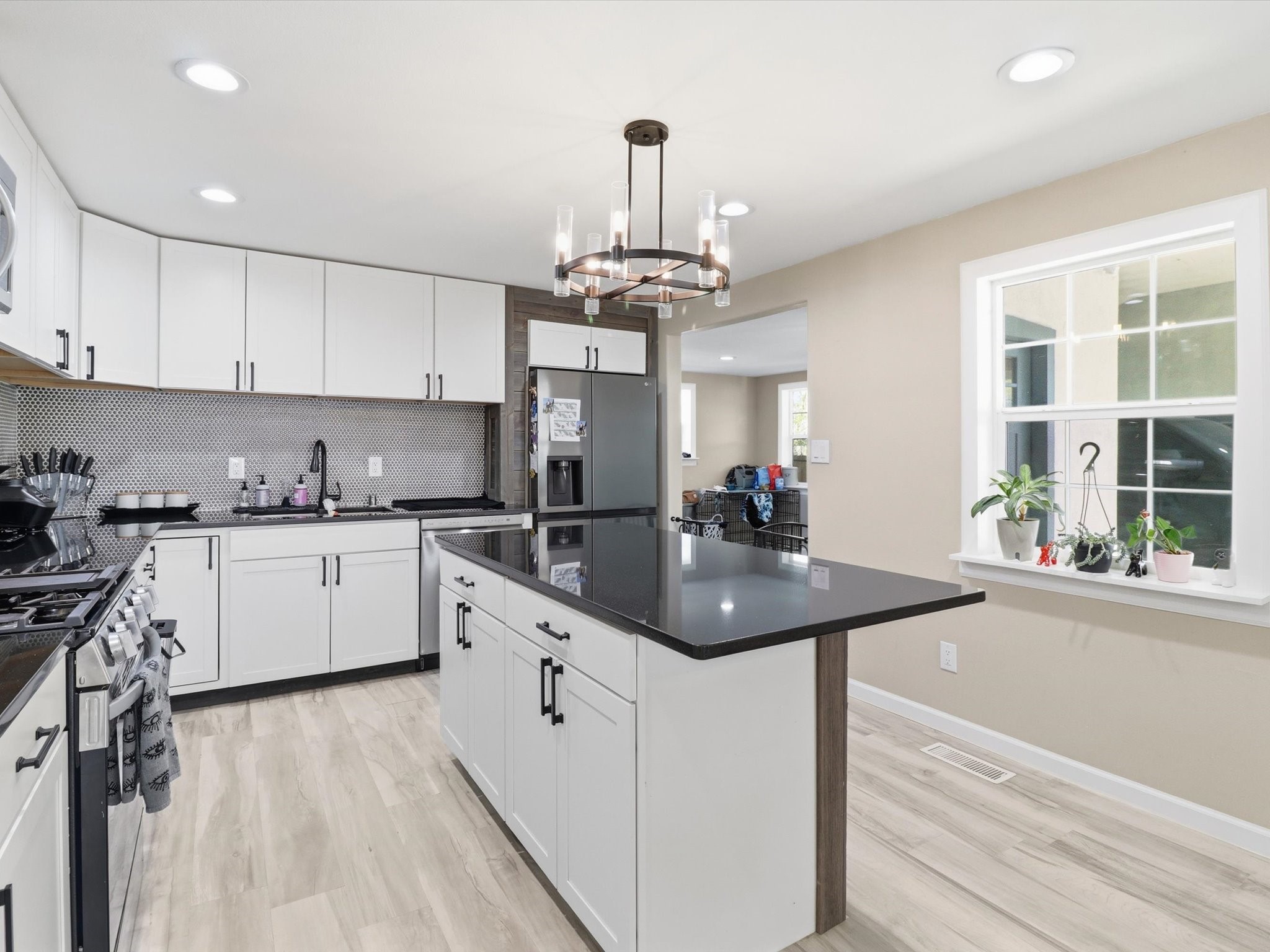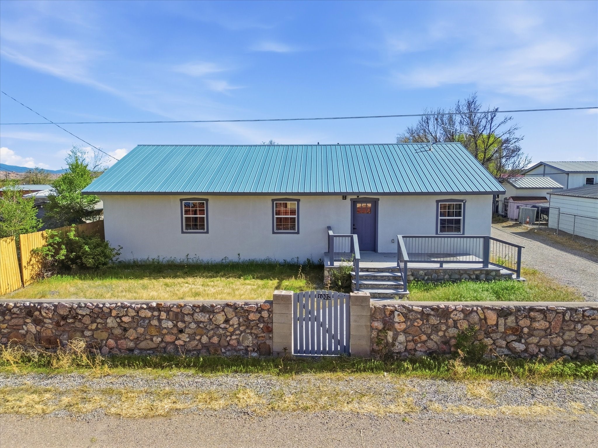 This 3-bedroom, 2-bath home sits on a .22-acre lot and has been updated from top to bottom. Pull up and you'll immediately notice the custom front gate and the classic stucco exterior with a metal roof that's clean, sharp, and low maintenance.Step inside to the kitchen with white shaker cabinets, dark countertops, a custom wood island, tile backsplash, and stainless steel LG appliances. The pendant chandelier ties it all together.The master bedroom is generous in size, filled with natural light from multiple windows. The master bath features a double vanity with white countertops, matte black fixtures, a wood accent wall, freestanding soaker tub, and a walk-in shower.Fresh finishes throughout. Detached garage provides space for vehicles, storage, or workshop use.Seller offering $5,000 credit to buyer at closing. Housing built before 1978 may contain lead-based paint. Buyer should verify all MLS data. Information deemed reliable but not guaranteed.