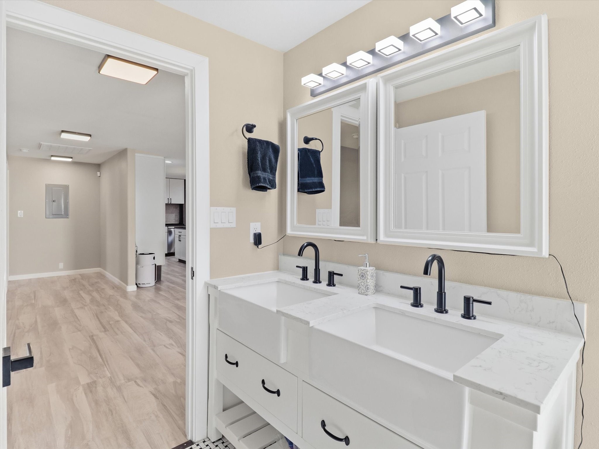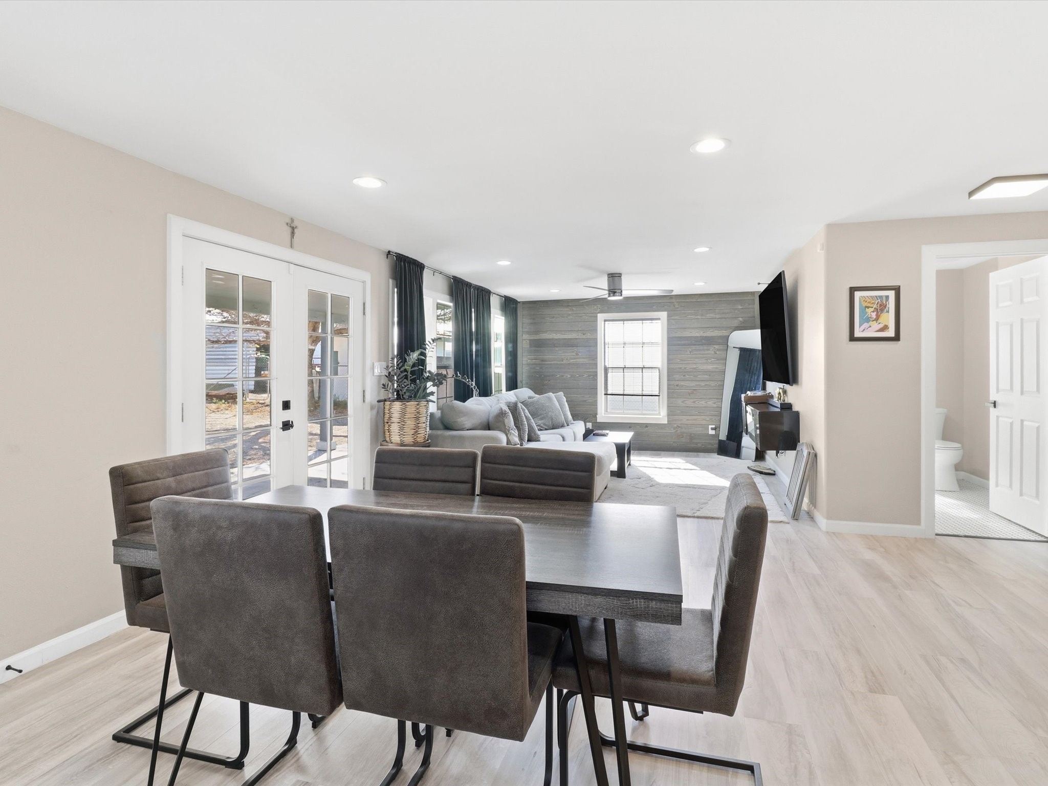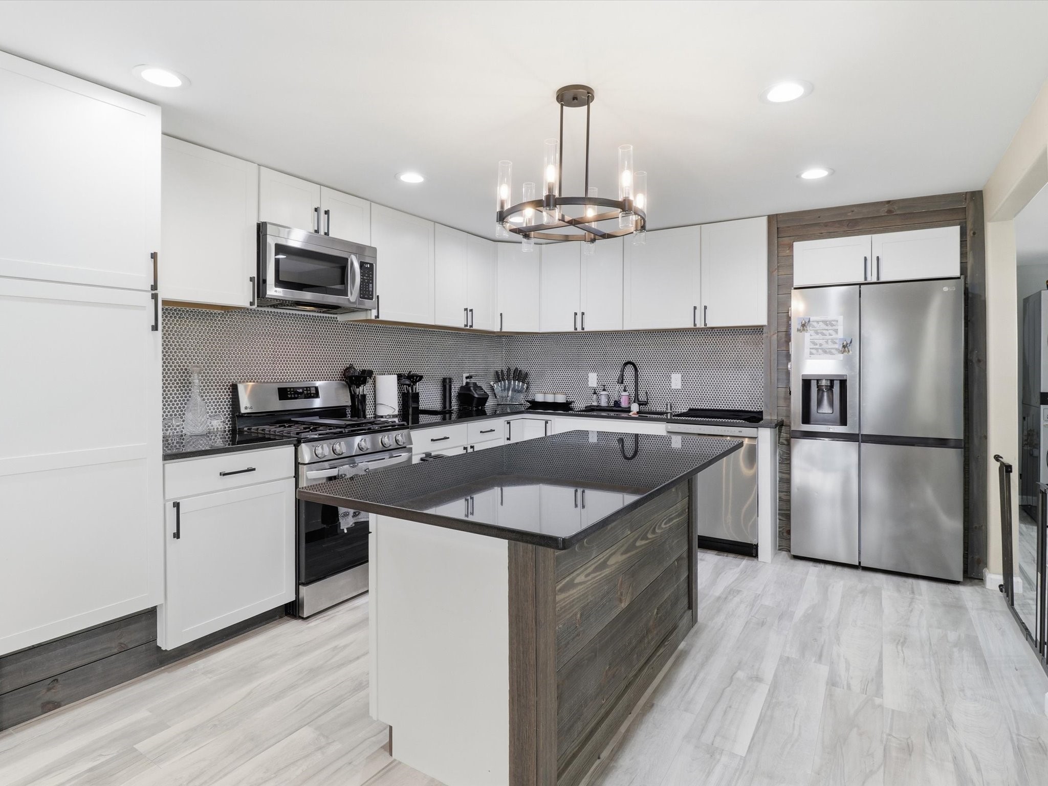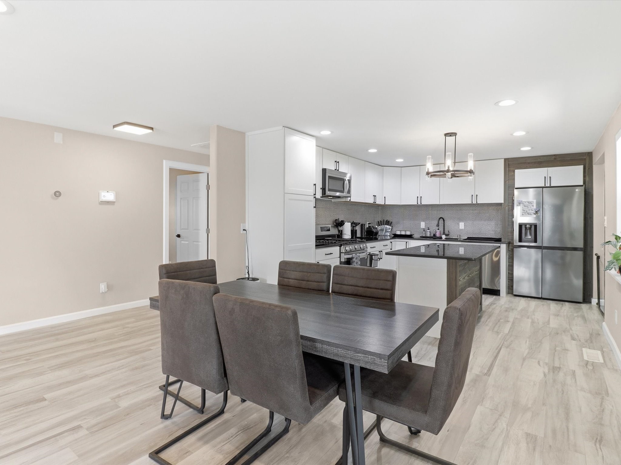 This 3-bedroom, 2-bath home sits on a .22-acre lot and has been updated from top to bottom. Pull up and you'll immediately notice the custom front gate and the classic stucco exterior with a metal roof that's clean, sharp, and low maintenance.Step inside to the kitchen with white shaker cabinets, dark countertops, a custom wood island, tile backsplash, and stainless steel LG appliances. The pendant chandelier ties it all together.The master bedroom is generous in size, filled with natural light from multiple windows. The master bath features a double vanity with white countertops, matte black fixtures, a wood accent wall, freestanding soaker tub, and a walk-in shower.Fresh finishes throughout. Detached garage provides space for vehicles, storage, or workshop use.Seller offering $5,000 credit to buyer at closing. Housing built before 1978 may contain lead-based paint. Buyer should verify all MLS data. Information deemed reliable but not guaranteed.