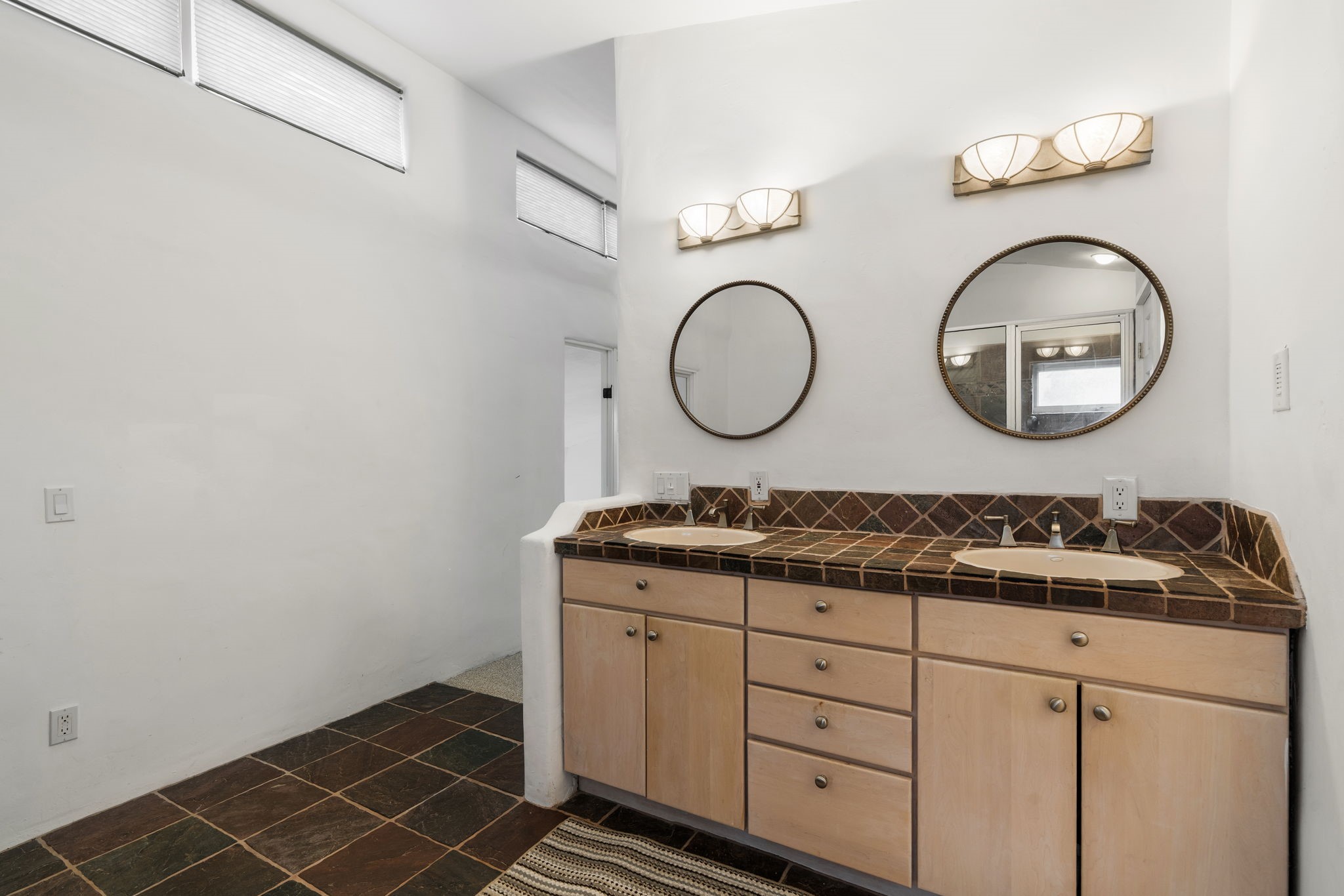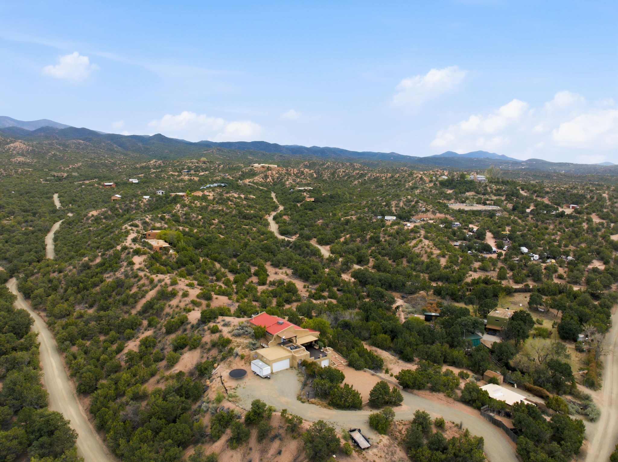 Discover the sanctuary of this picturesque home located in the hills of Tesuque. Offering breathtaking views of the Sangre de Cristo and Jemez mountain ranges, along with the lush Pojoaque Valley. This passive solar estate features, high ceilings and large windows that flood the interior with natural light, while the 3 kiva fireplaces enhance the tranquil ambiance. Set on 2.5 acres, the property includes 3 bedrooms, 3 bathrooms and 2, two-car garages, offering ample space for four vehicles and additional storage. Only 17 minutes to the plaza and 34 minutes to Los Alamos. This home is centrally located for convenience.
