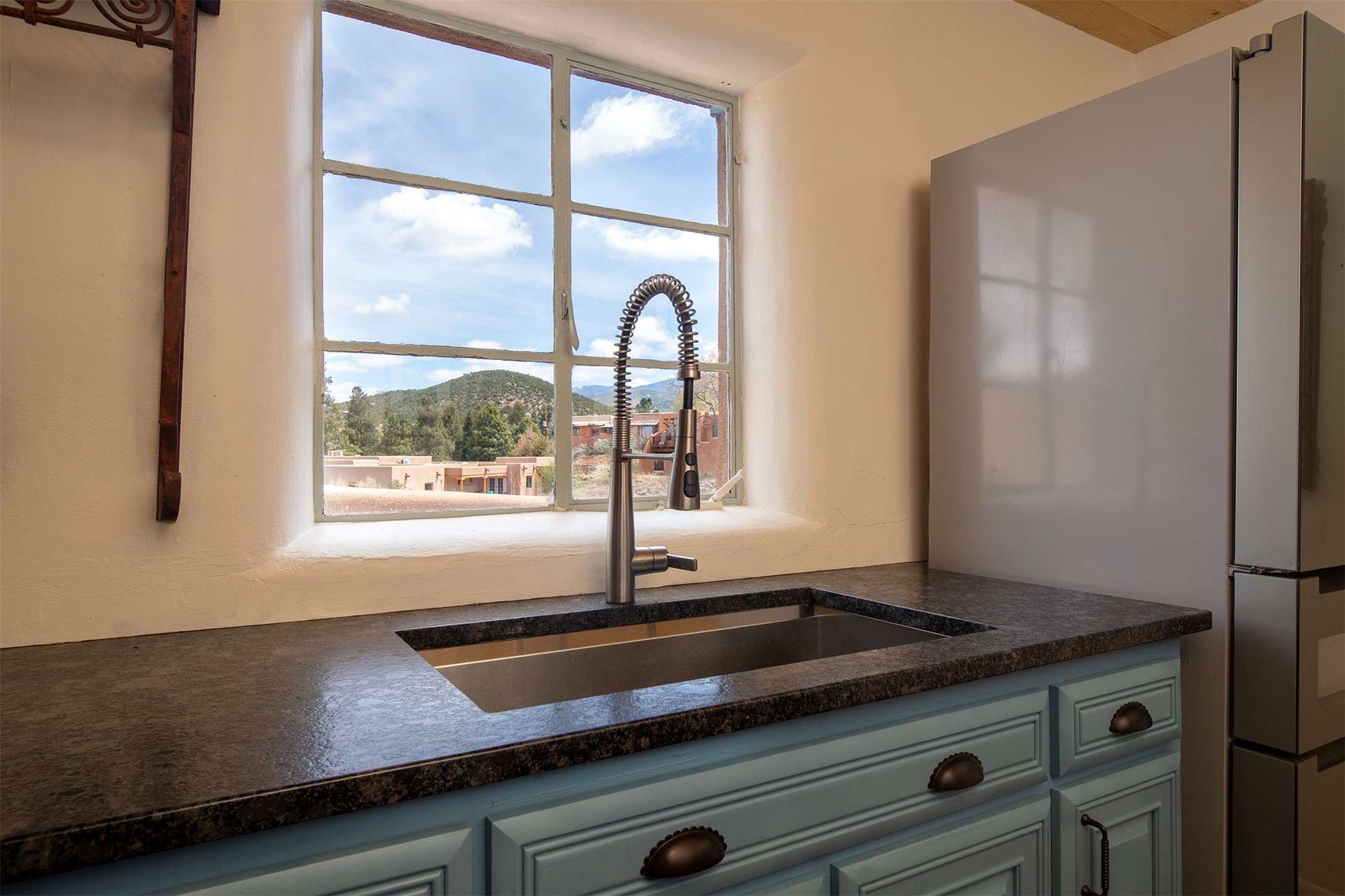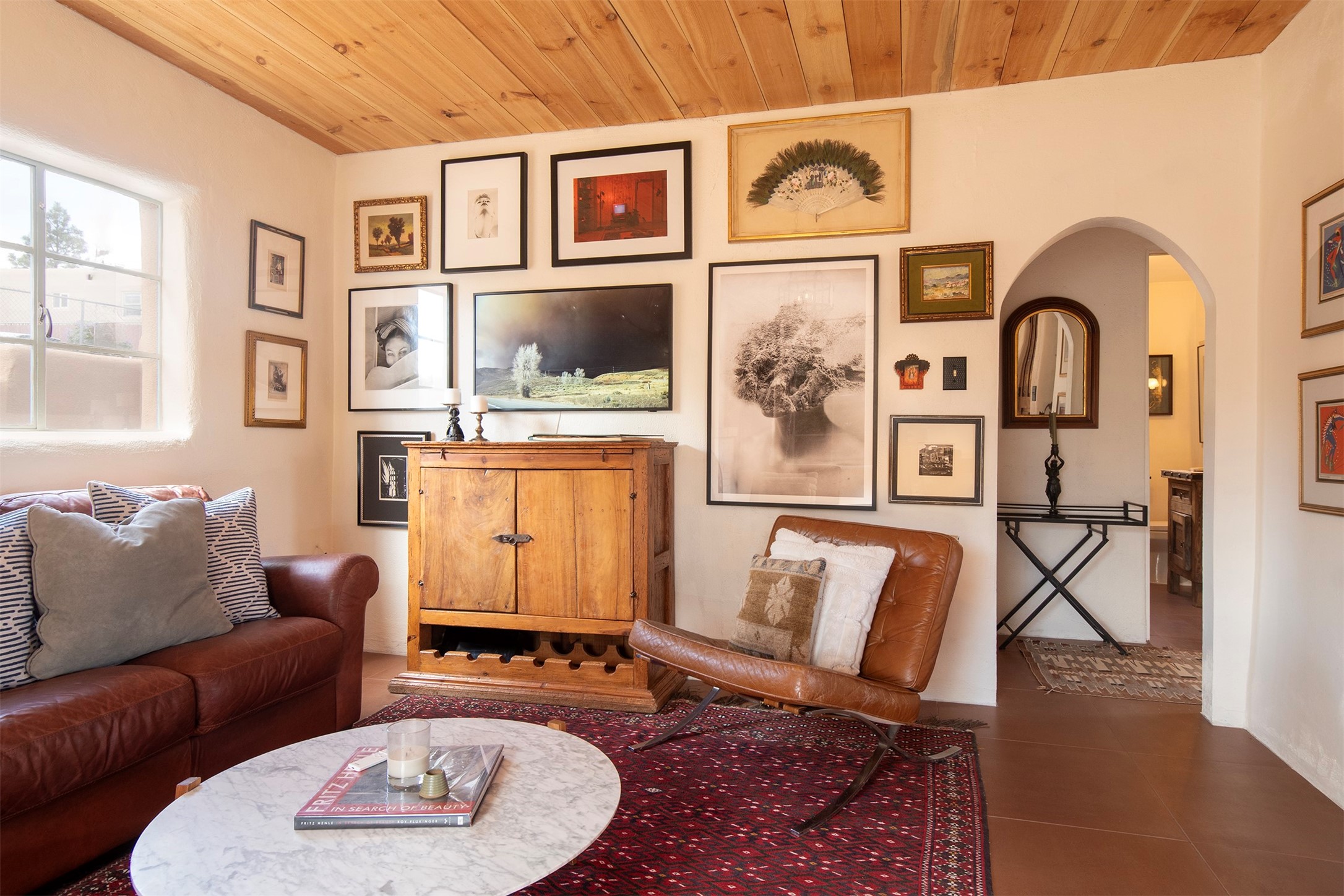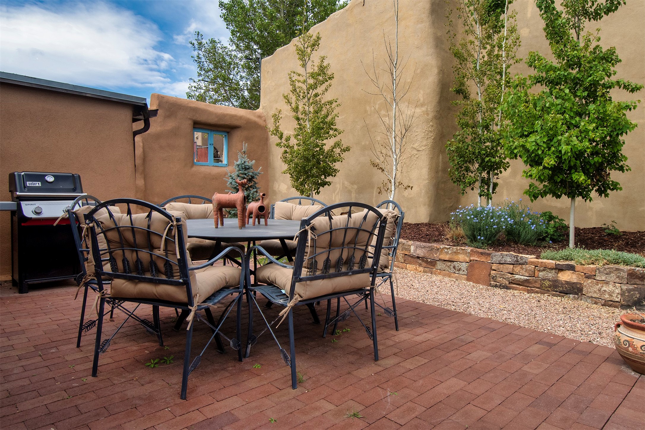 SOPHISTICATED DESIGNER QUALITY PIED--TERRE REMODEL IN A PREMIUM CANYON ROAD VALLEY LOCATION - Just steps from the iconic Canyon Road, Cristo Rey Church, Patrick Smith Park, & Santa Fe river bend, this exquisitely reimagined pied--terre offers a rare opportunity to own a refined retreat in one of Santa Fe's most coveted and culturally rich enclaves. Thoughtfully renovated with an elevated eye for design and quality, this one-bedroom residence blends timeless Santa Fe character with modern luxury. The interiors showcase curated finishes and meticulous upgrades throughout, creating a sophisticated yet effortless living experience ideal for both full-time enjoyment and lock-and-leave convenience. The cook's kitchen is appointed with premium Viking and Bosch appliances, complemented by custom cabinetry, upgraded countertops, and refined detailing. The bath has been fully remodeled with elevated plumbing, traditional talavera tile., and designer fixtures, offering a feeling of spa-inspired serenity. Extensive improvements include new tile and flooring, upgraded lighting, custom doors, enhanced insulation, and reimagined wall systems--all contributing to a seamless and modern aesthetic. Infrastructure upgrades such as a new electrical panel, gas line, water heater, heating panels, and sewer line improvements provide peace of mind and long-term value. Outdoor spaces have been thoughtfully landscaped both front and back, while recent stucco work and a professionally sealed roof (with transferable warranty) ensure lasting quality. Every detail--down to architectural enhancements and system upgrades--has been carefully considered. Set in an unbeatable location moments from world-class galleries, fine dining, and Santa Fe's natural beauty, this exceptional residence captures the essence of elevated Southwest living--intimate, artful, and effortlessly luxurious. This property also offers more opportunity for additional sqft growth capture. Inquire and book your viewing today!