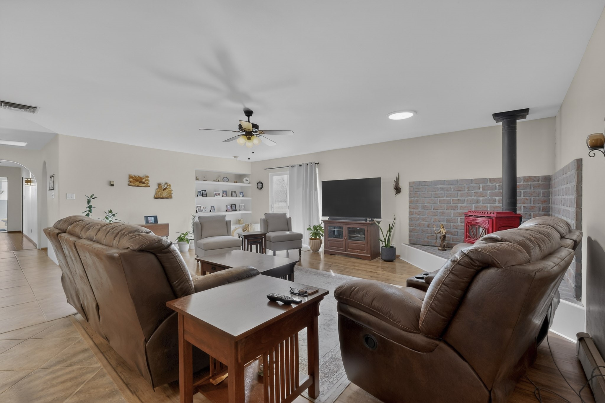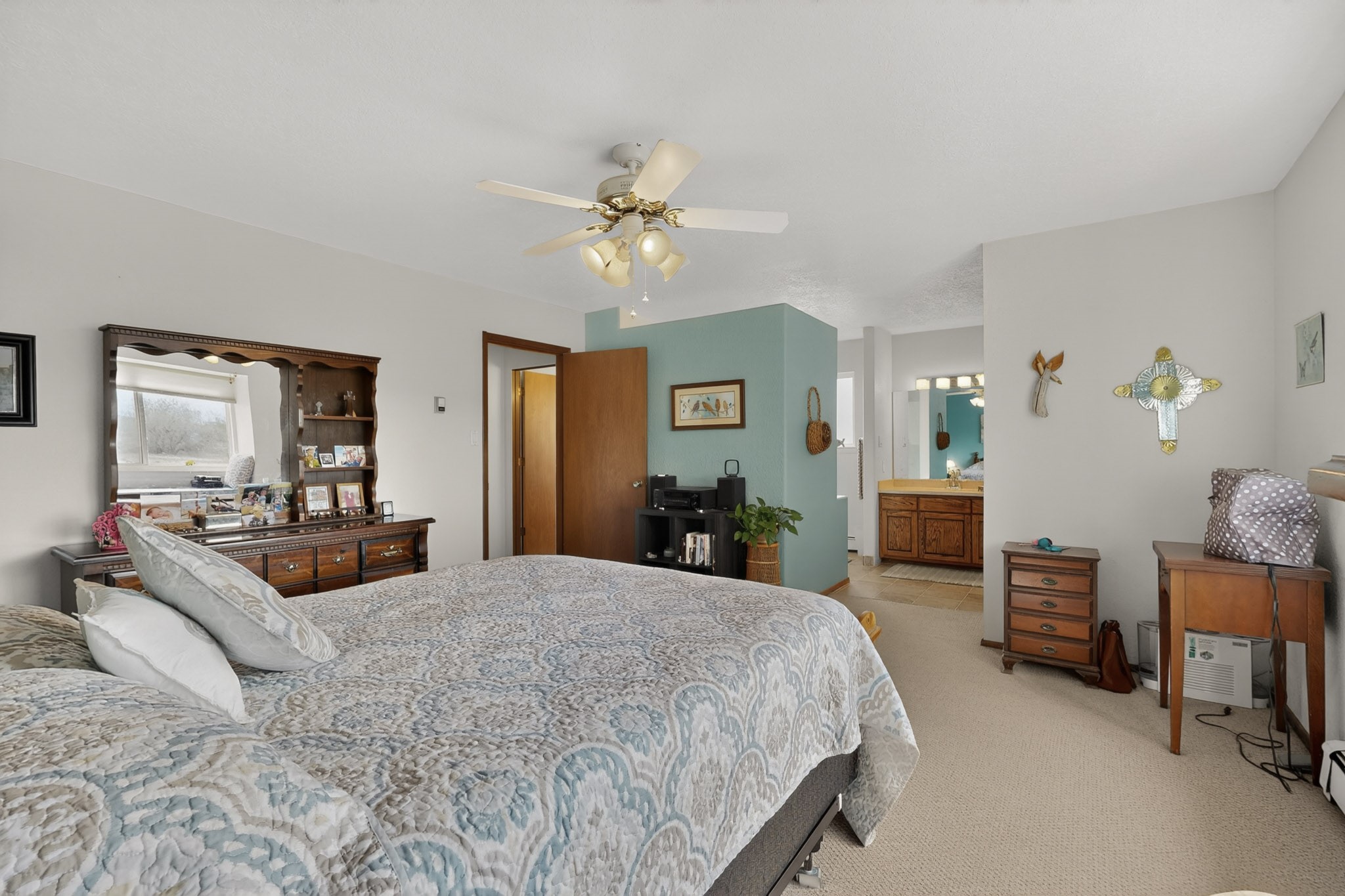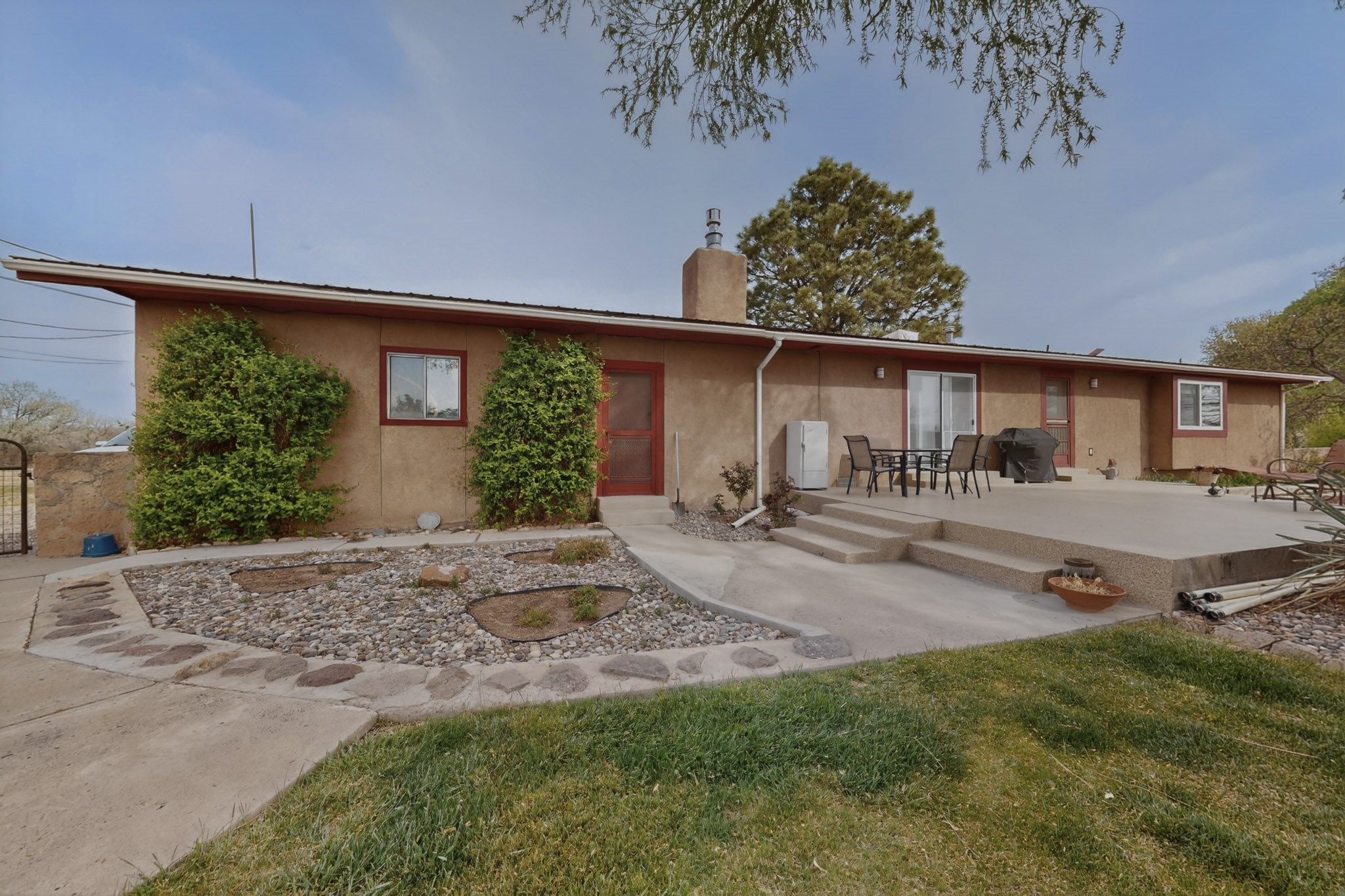 Don't miss this incredible opportunity to own a spacious move in ready home, featuring pre-1907 water rights, conveyed with the property! (.96 acre w/2.868 diversion) Situated on 2 parcels for a total of 2.3 acres, this charming residence offers updated gorgeous wood laminate flooring in the main living areas and beautifully updated baths. The resurfaced kitchen cabinets add a fresh touch, while the fully landscaped back courtyard provides an inviting space to relax or entertain. Enjoy large bedrooms and a generous backyard patio with durable epoxy coating, perfect for outdoor gatherings. The oversized 2-car garage offers ample storage. Beautiful views, and walking distance to the Bosque! This property blends comfort, functionality, and timeless value - Just 15 quick minutes to the interstate! Great location if working in Santa Fe OR ABQ!