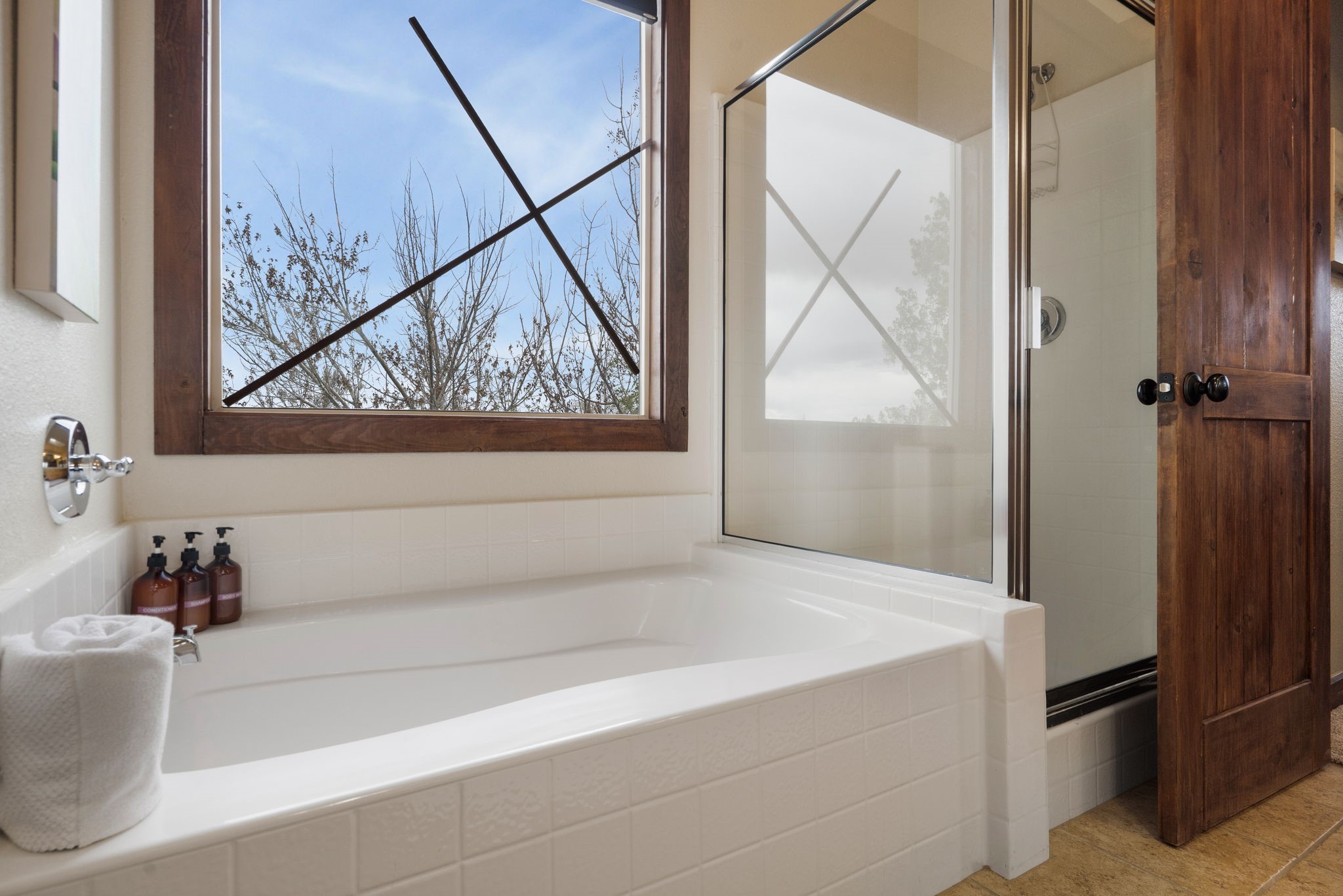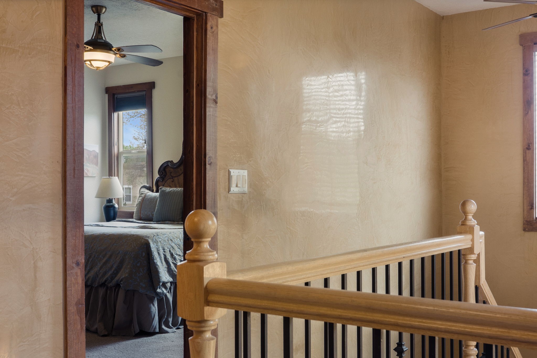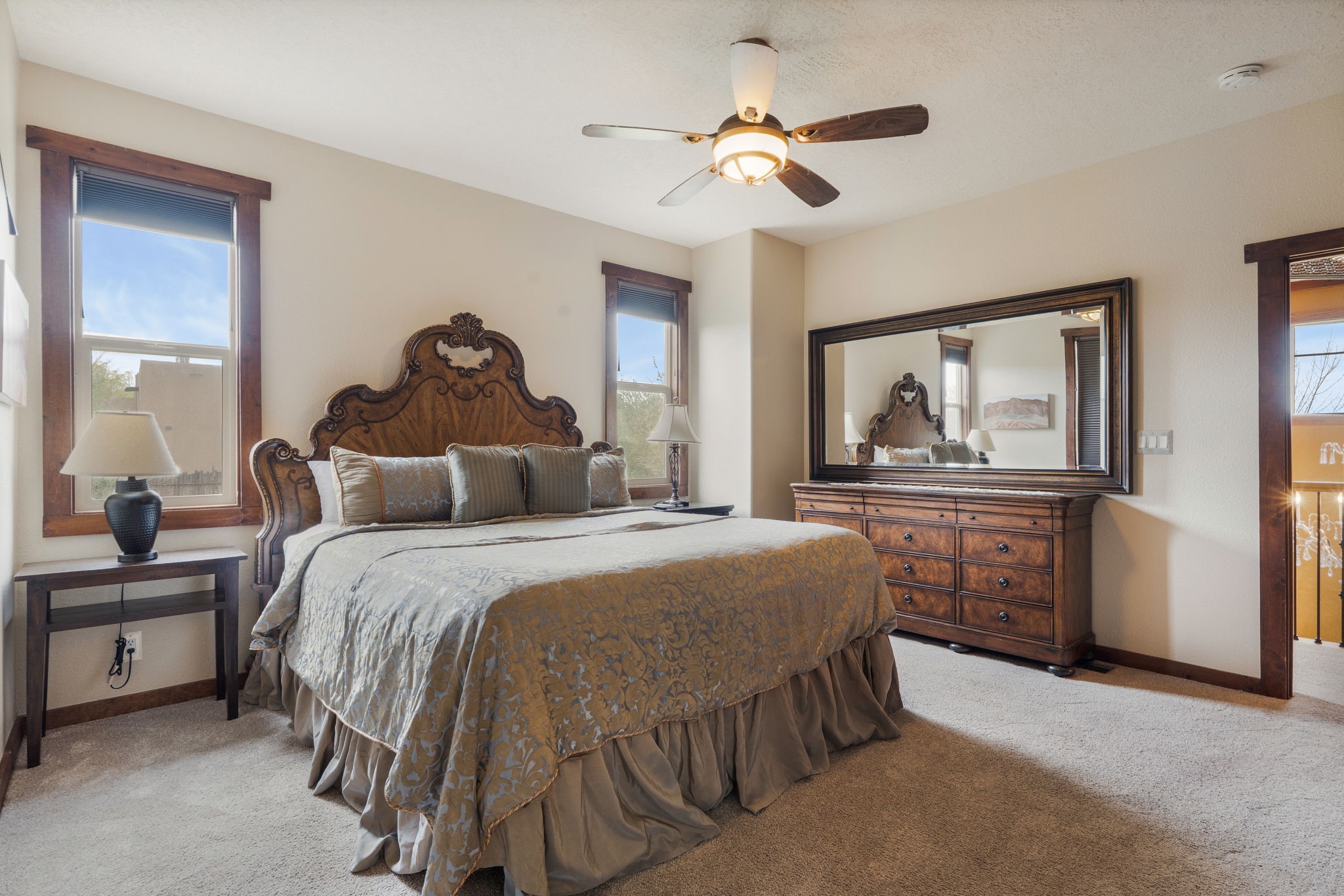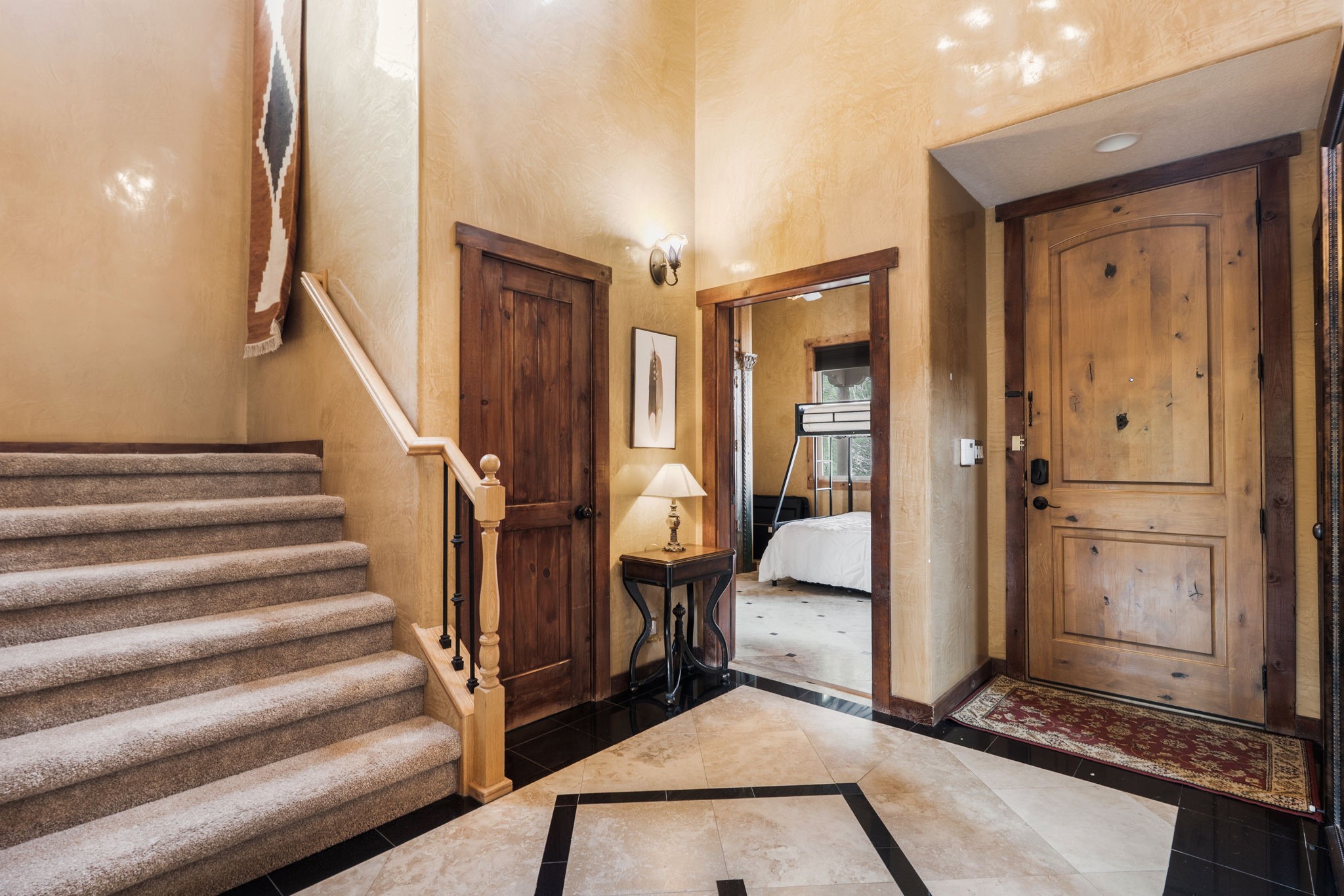 You deserve the finer things in life, and this property is one of them!! Don't miss this gorgeous home on an extremely rare in-town lot that is almost an acre. No expense has been spared in order to create this Santa Fe dream home. Upon entering, you are greeted by a grand foyer with a large crystal chandelier. Colorful prisms of light dance off the warm venetian plaster walls. In the open concept living area, there is a cozy wood-burning fireplace, ornate carved doors throughout, and the custom kitchen boasts rare "Fantasy Brown" honed marble countertops, a lively Mexican hand-painted diamond backsplash, and high-end appliances. A kitchen window graces the sink, so that you can look out over the field next to the house as you prepare dinner. Upstairs you will find three well-appointed bedrooms, a primary suite with luxurious bath and closet, and a large laundry room. There is a deck which offers a view of the city streets. The walled backyard is nothing short of a romantic secret garden, with an outdoor fireplace, box hedges and aspens, and a fountain. The garage is even heated and has windows, offering a flex space for hobbies, a game room, or hanging out. Being at the end of the cul-de-sac ensures maximum privacy. Schedule a showing today and make your dream home a reality!