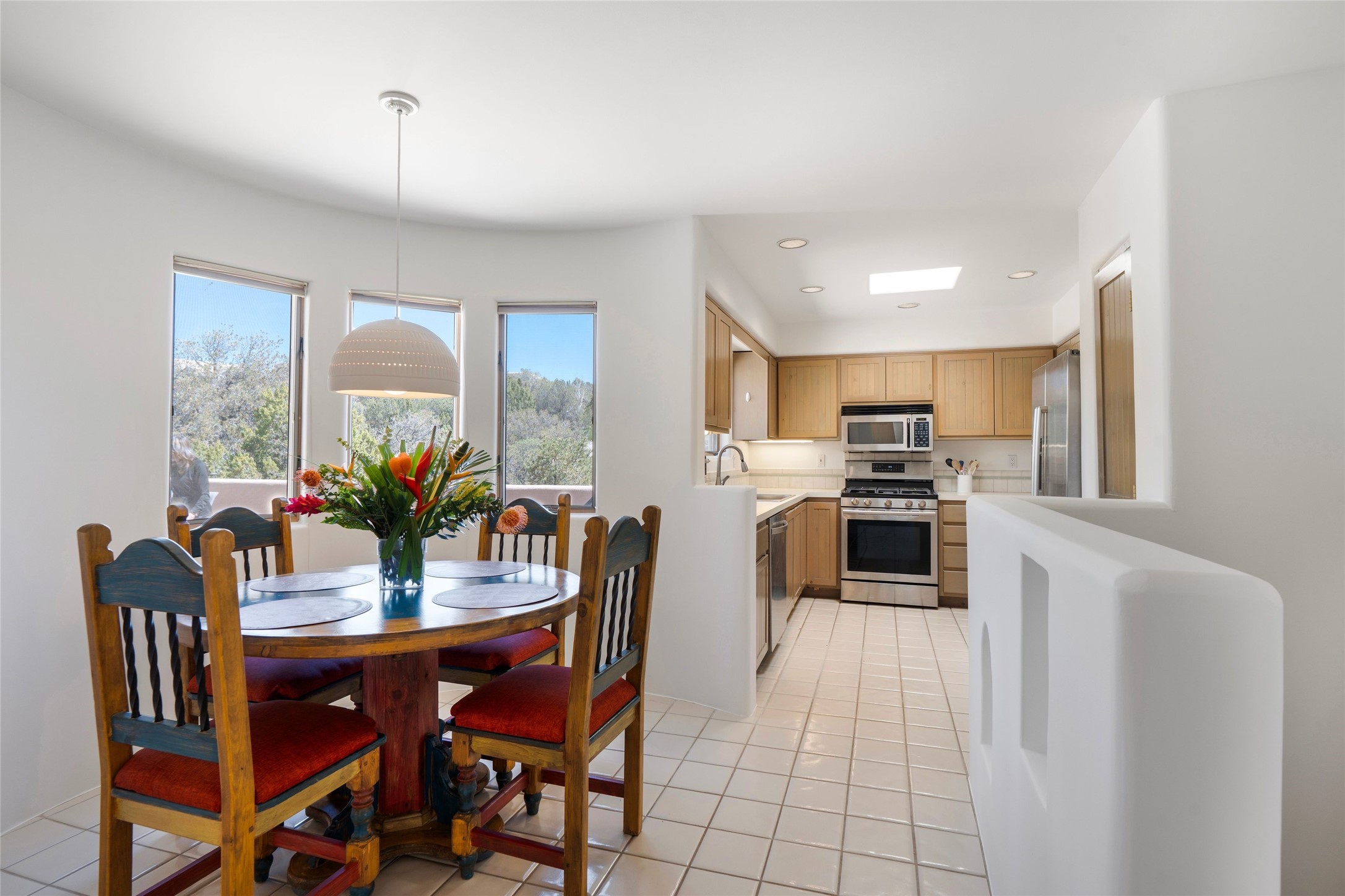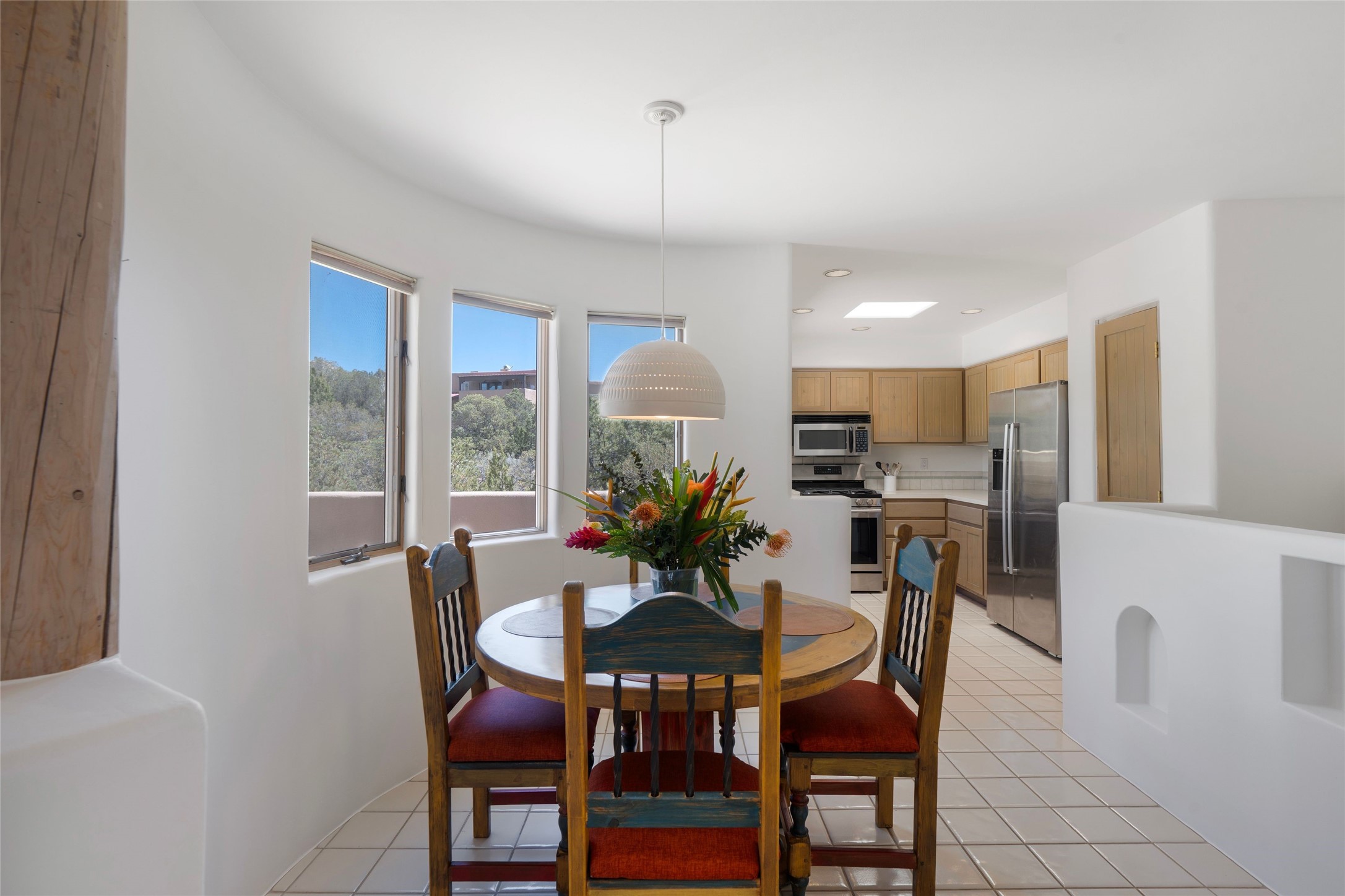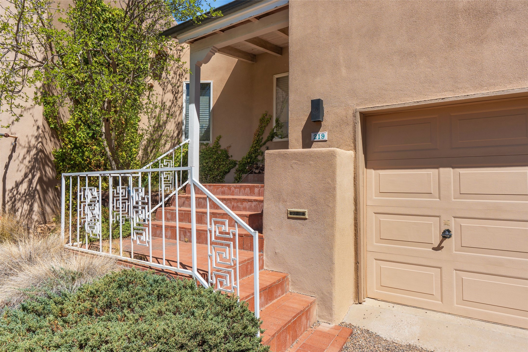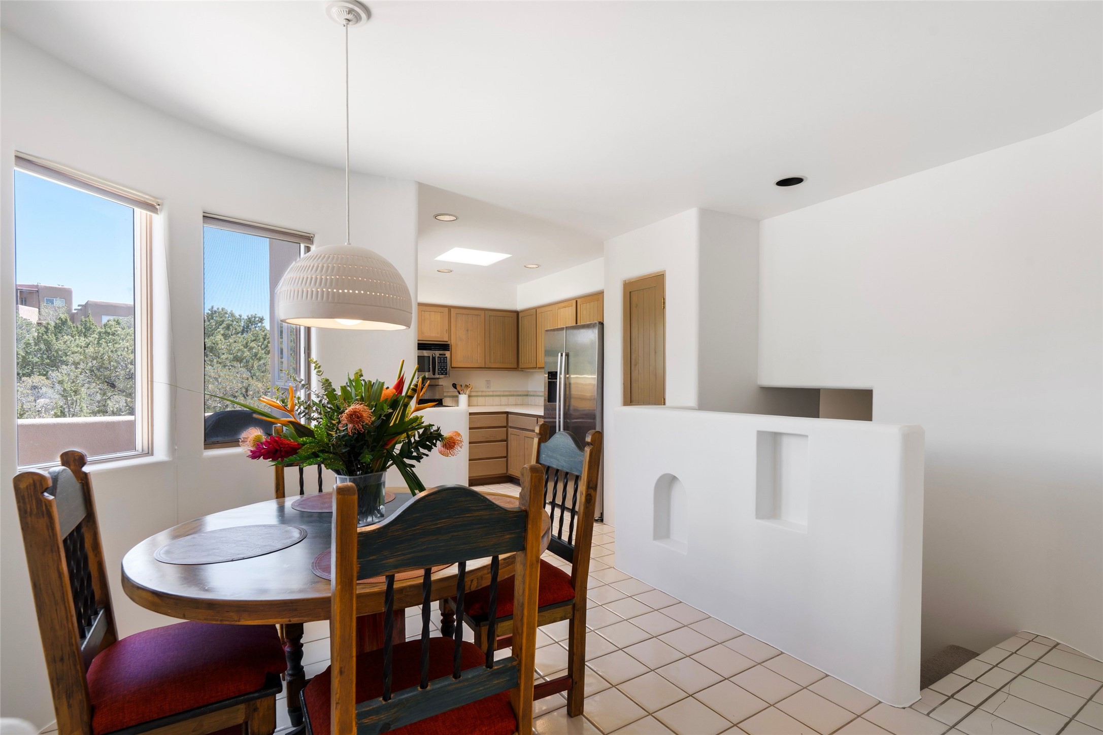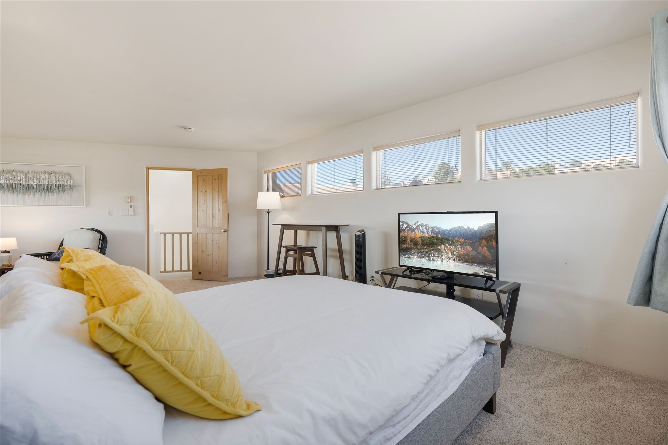 Just moments from the historic Santa Fe Plaza and a short stroll to the new Fort Marcy pickleball courts, this warm and light-filled residence blends classic Santa Fe character with modern comfort. High ceilings with exposed beams, abundant natural light, and two traditional kiva wood-burning fireplaces create an atmosphere that feels both timeless and welcoming. The home features 2 bedrooms, 2 baths, and an additional den--perfect as a home office, studio, or easily converted into a third bedroom. The spacious upper-level primary suite is a true retreat, complete with its own private deck overlooking Sun and Moon Mountain. Outdoor living is exceptional here, with two generous decks offering peaceful views of the surrounding hills and mountains. Whether you're enjoying morning coffee or sunset skies, the setting is pure Santa Fe serenity. A rare 2-car garage, newly added air conditioning, and an on-demand hot water heater round out the home's practical upgrades, making it as comfortable as it is charming. The furnishings are also available separately from the real property; making this a turnkey property. This is a special opportunity to live in one of Santa Fe's most desirable walkable locations--close to culture, recreation, and the natural beauty that defines the City Different.