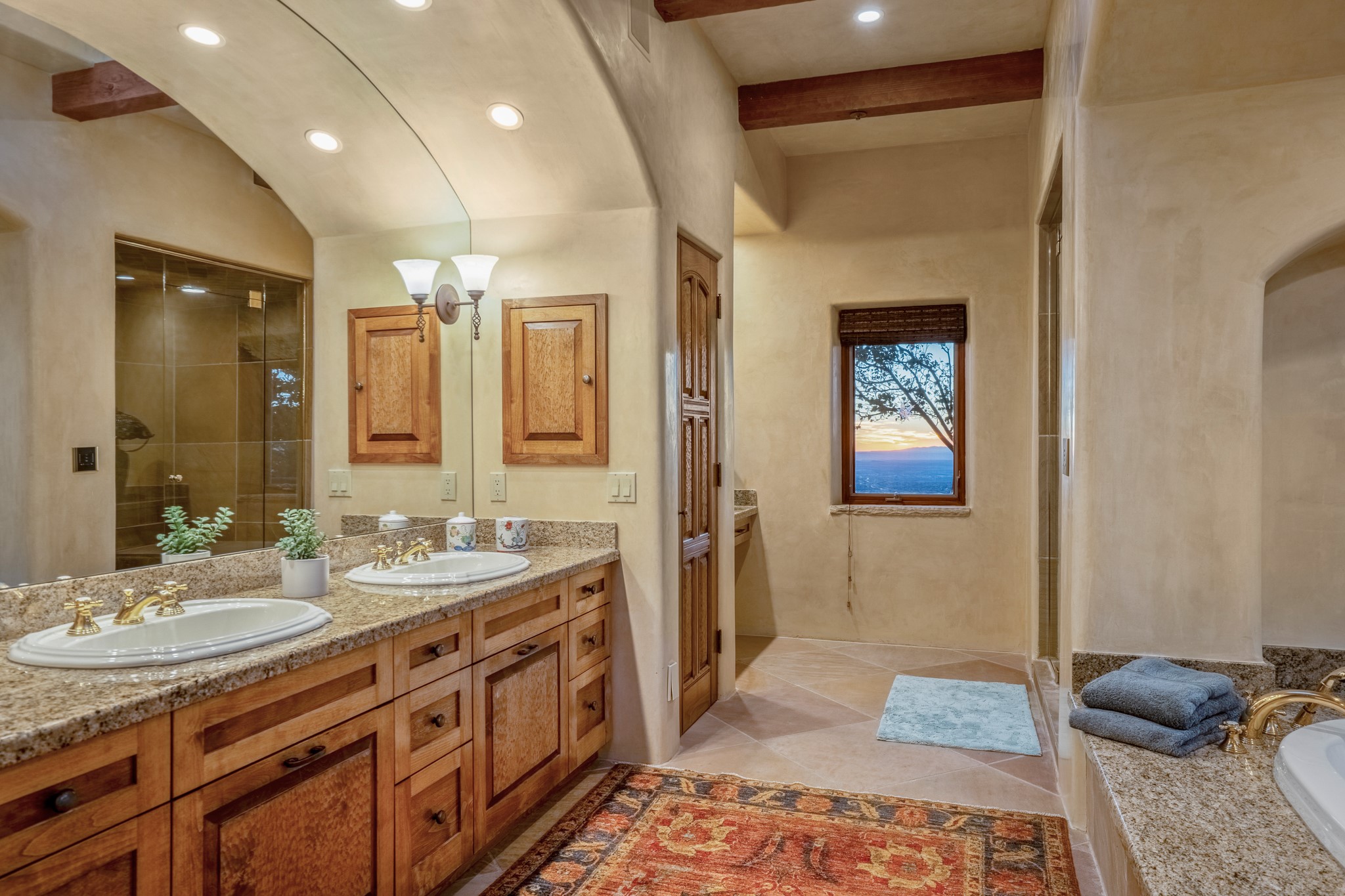 Perched on a ridgetop with rare magnificent views of mountains, sunsets and city lights is an artistic masterpiece. From the amazing vistas at every angle to the solid grounding of earth, this villa is embraced by nature and steeped in peace and privacy while also providing all you need for grand entertaining. Opening to the 3300 sf veranda and sharing in the incredible views are the gourmet kitchen, living/dining room, office/media room and the primary bedroom suite. Rounding out this truly unique and special home is a library and two additional bedrooms with ensuite baths.