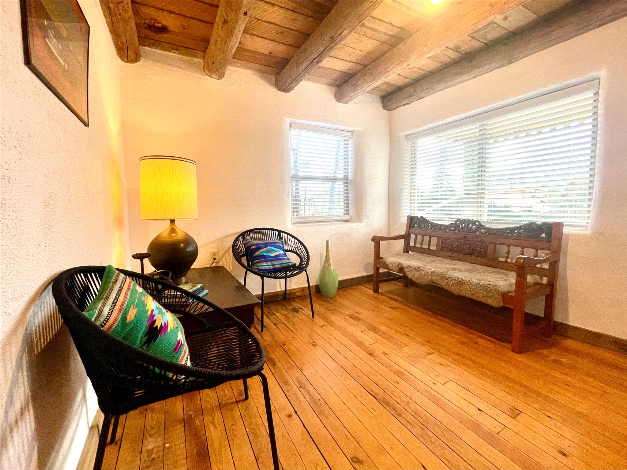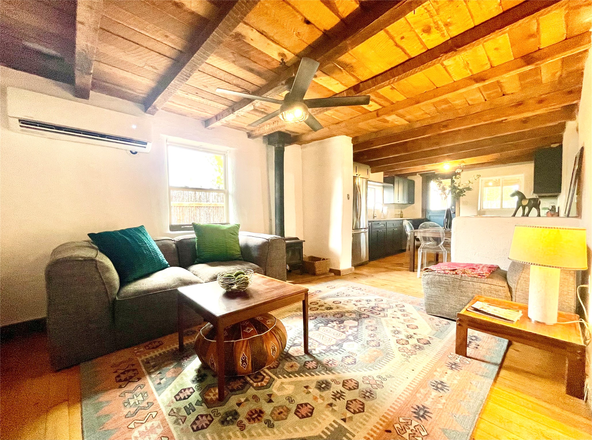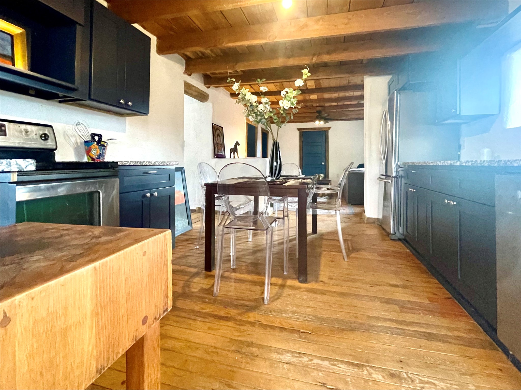A charming compound: two homes, a commercial building, and lots of parking space in the village of Ribera provides the perfect live/work opportunity. Live in one home and rent out the other while you operate an art gallery or retail space where the Ribera Farmer's Market has been located. Both homes have that Southwestern Style with vigas, and both have been recently updated with granite counters, new electrical, new mini-splits, and so much more. The first home is an adobe with 3 bedrooms, living room, eat in kitchen, laundry room, a full bathroom, with two covered portal porches, and is fully fenced. It shares electric meter with the commercial building. It is vacant and ready to move in and has rented for $1,500 per month in the past. The second home has 30 inch rock walls, 2 bedrooms, 1 bathroom, a covered portal porch, and is fully fenced. It is currently rented for $1,100 per month, and it has its own electric meter. The Sala commercial building is a large adobe and rock building with high ceilings and gorgeous vigas. There is plenty of parking all around, with views of the mesa and close to I-25 for a 20 minute drive to Las Vegas NM or 40 minutes to Santa Fe. Villanueva State Park is just down the road with camping and hiking. This beautiful New Mexico style compound has income and space to live and work in a beautiful environment!