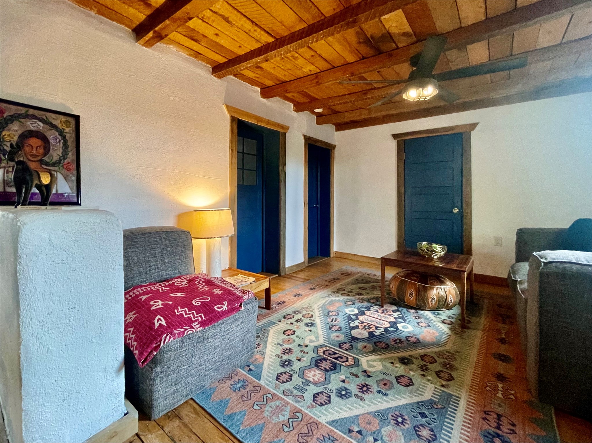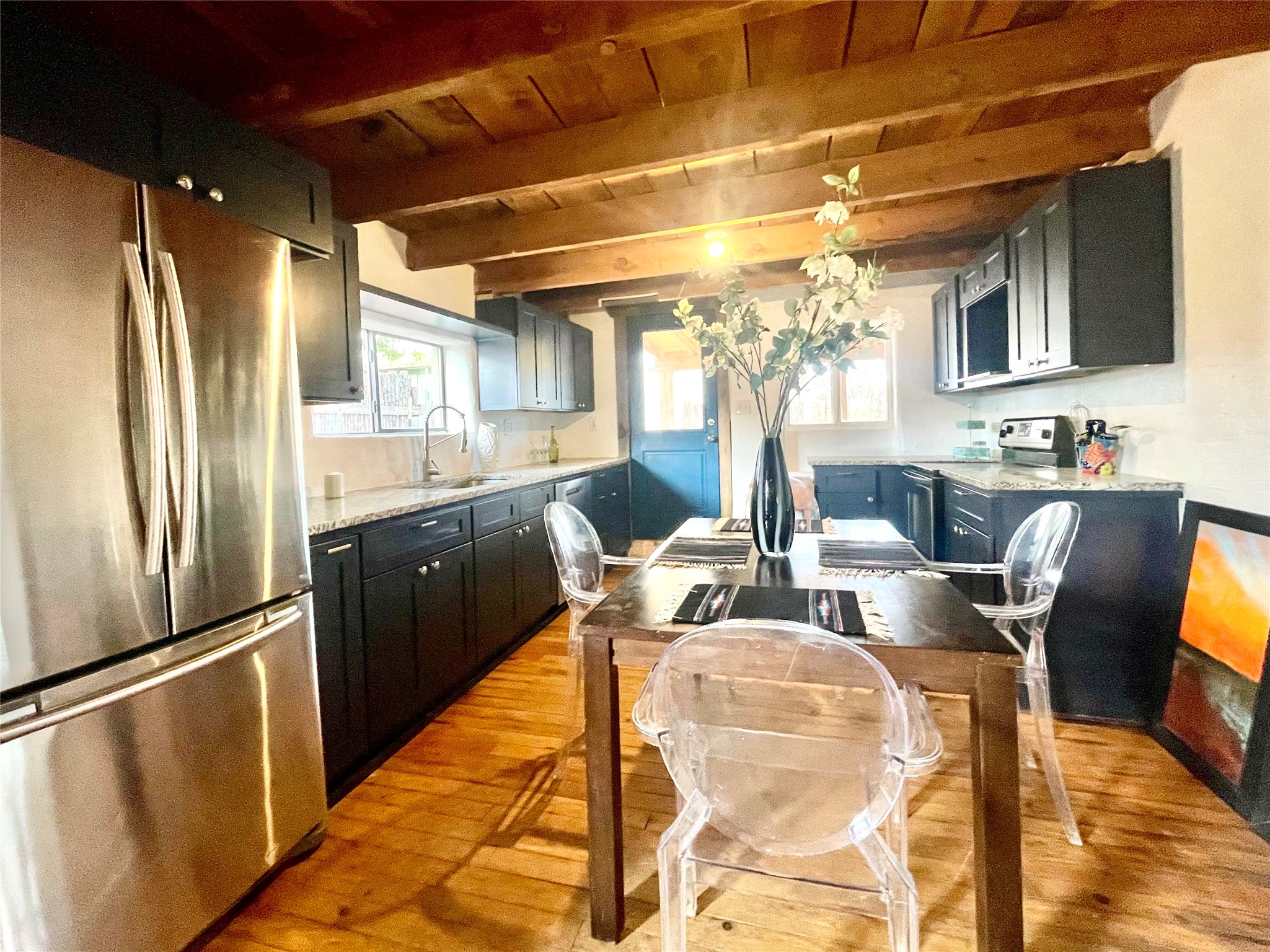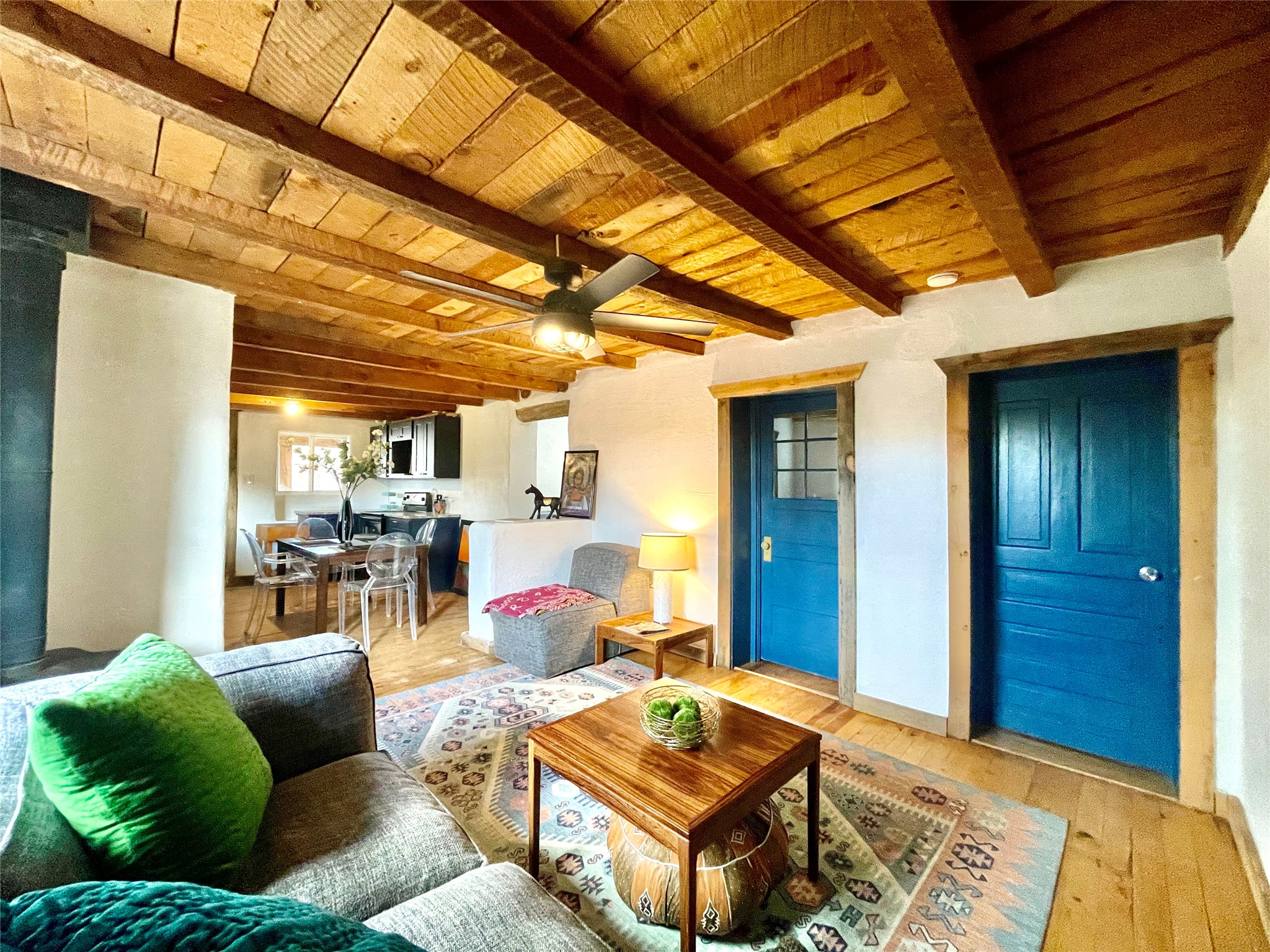 A charming compound: two homes, a commercial building, and lots of parking space in the village of Ribera provides the perfect live/work opportunity. Live in one home and rent out the other while you operate an art gallery or retail space where the Ribera Farmer's Market has been located. Both homes have that Southwestern Style with vigas, and both have been recently updated with granite counters, new electrical, new mini-splits, and so much more. The first home is an adobe with 3 bedrooms, living room, eat in kitchen, laundry room, a full bathroom, with two covered portal porches, and is fully fenced. It shares electric meter with the commercial building. It is vacant and ready to move in and has rented for $1,500 per month in the past. The second home has 30 inch rock walls, 2 bedrooms, 1 bathroom, a covered portal porch, and is fully fenced. It is currently rented for $1,100 per month, and it has its own electric meter. The Sala commercial building is a large adobe and rock building with high ceilings and gorgeous vigas. There is plenty of parking all around, with views of the mesa and close to I-25 for a 20 minute drive to Las Vegas NM or 40 minutes to Santa Fe. Villanueva State Park is just down the road with camping and hiking. This beautiful New Mexico style compound has income and space to live and work in a beautiful environment!