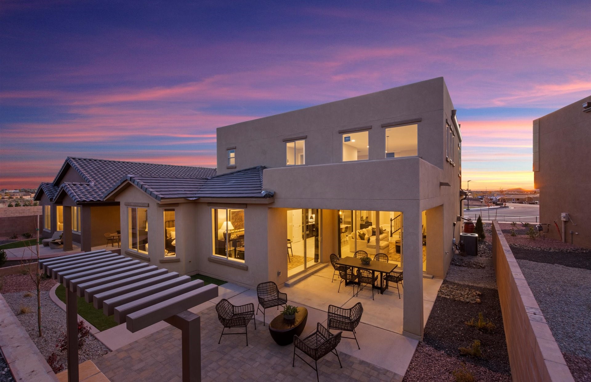 The Pulte Colibri Yucca Model Home is for sale. Located in the popular Colibri Community near shopping & easy access to Hwy 599 & I25. This beautifully finished model offers extra living space with a rear home extension, perfect for hosting or relaxing. Enjoy cozy evenings by the built in living room fireplace, and indoor outdoor living through the wide sliding glass door. The kitchen shines with a chef-style layout, built in stainless gas oven, and generous stone countertops--ideal for everyday meals or entertaining. The owner's bath feels like a retreat, highlighted by a freestanding soaking tub and elegant glass shower. Upgraded back landscaping included. Beautiful community parks, landscaped areas and a walking trail.