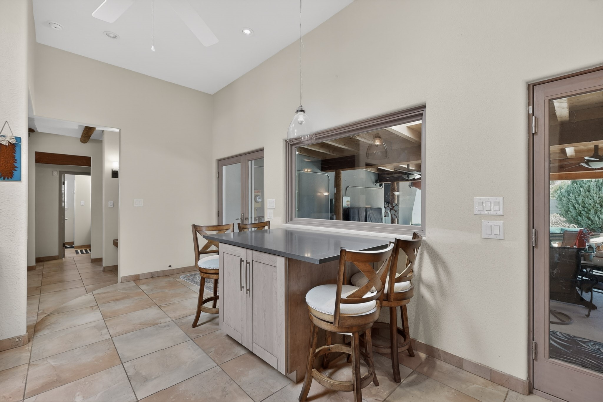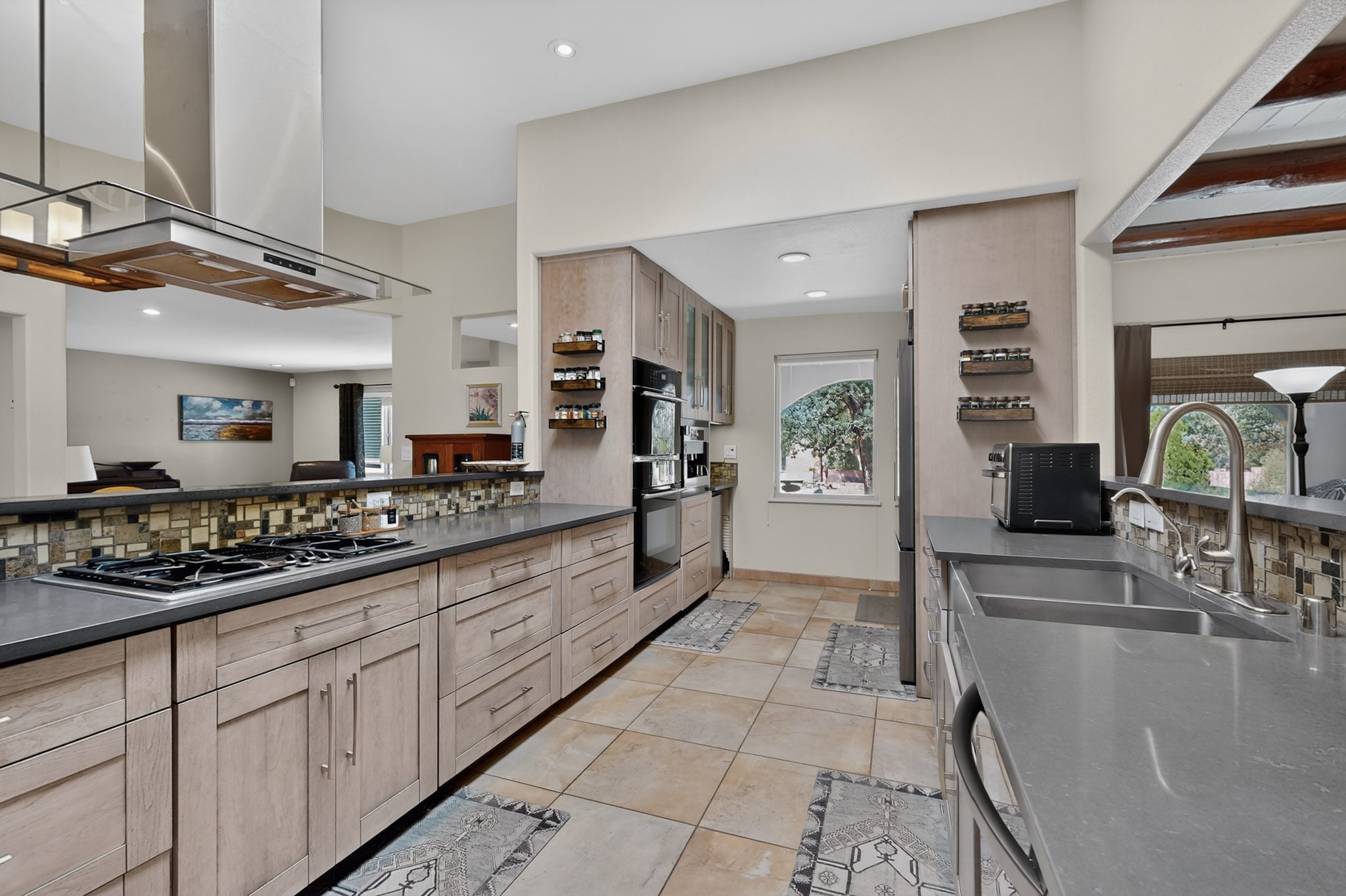 Welcome to Via Caballero, a highly sought-after neighborhood, known for quiet living and oversized lots in a centralized location. This home has been renovated with a new Solar system, new flooring, new windows, new stucco and roof, new skylights, a beautiful new kitchen with a built-in Miele coffee station and lots of storage, along with updated bathrooms - all within the last 5 years. The sellers have installed a new dishwasher, refrigerator, washer and dryer. To add to the amenities, you have a 884 square foot RV garage with 3 bays that is heated for any work or play that you want. There is good separation between the primary bedroom and the other bedrooms and lots of living space with a living room and a family room. The kitchen, dining room and breakfast nook have an open concept and adjoin the family room. The backyard is completely enclosed with a stucco wall and has an outdoor kitchen with a built-in range and storage. A new hot tub and outdoor fountain for your enjoyment are in the privacy of the covered patio in your backyard. The house is completely powered from the new solar panels that have been paid for. This property has so much to offer - all in a great location with lots of space to make it your own at a great price!