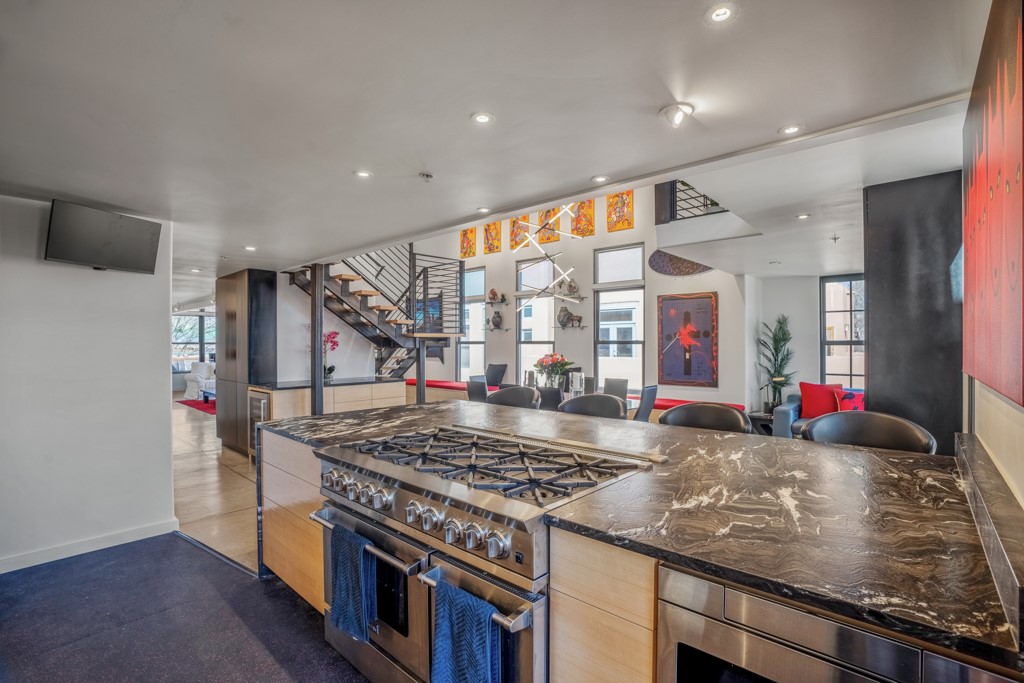Looking for something different in the City Different? This stunning 2180 sq ft. 2 bed/2bath Downtown Contemporary Loft located at Marquez Place loft was stripped down to the studs and rebuilt with an eye for design and a color palette that makes it a one of a kind. The aesthetic details throughout and the home technology added, makes it the perfect "lock and leave" or a hip permanent residence for someone who wants that big city feel in the heart of Santa Fe. This home is located within walking distance to everything downtown Santa Fe. List of improvements and features are attached in the listing info.